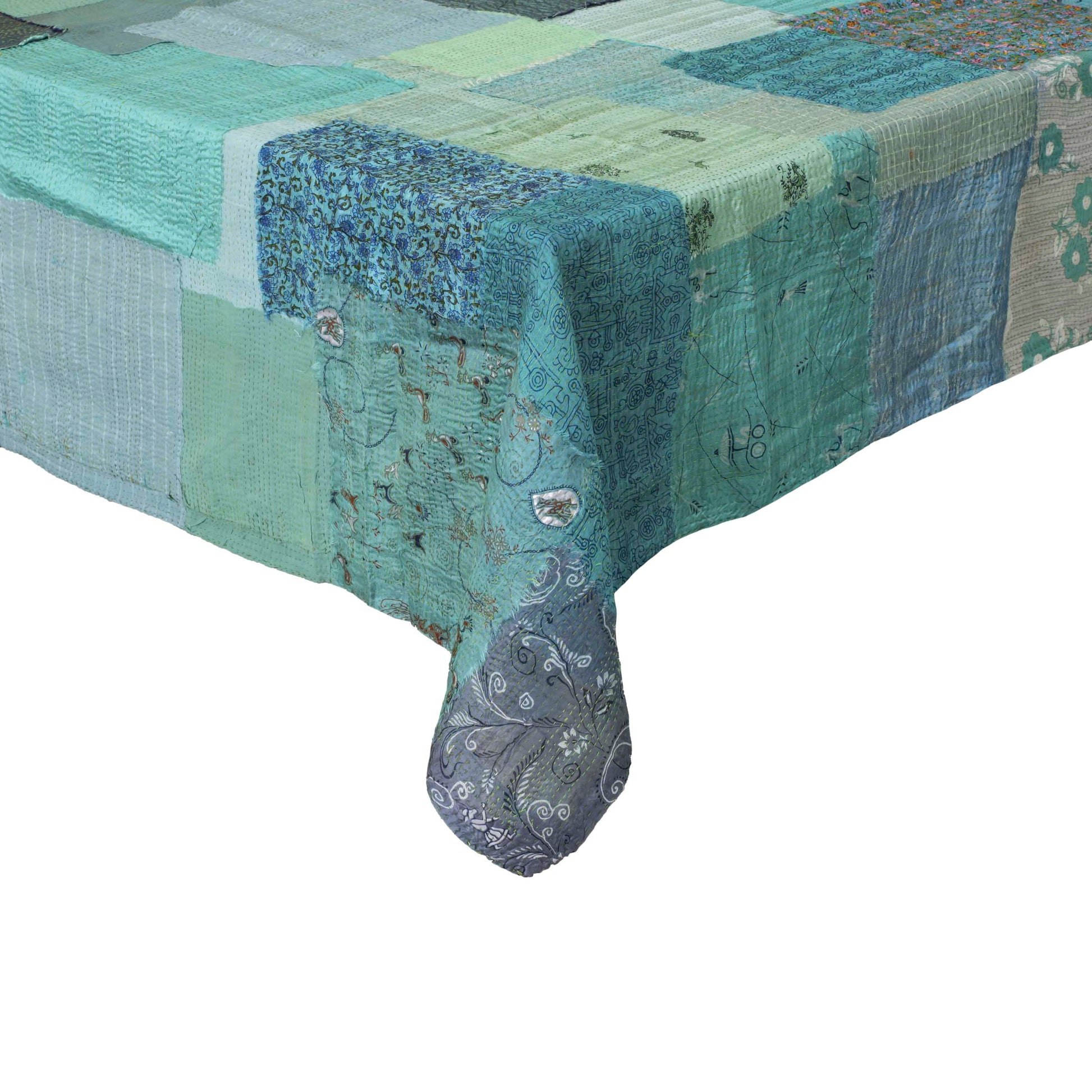 Printed Fray Vintage Cotton Kantha Table Cover -Sage-