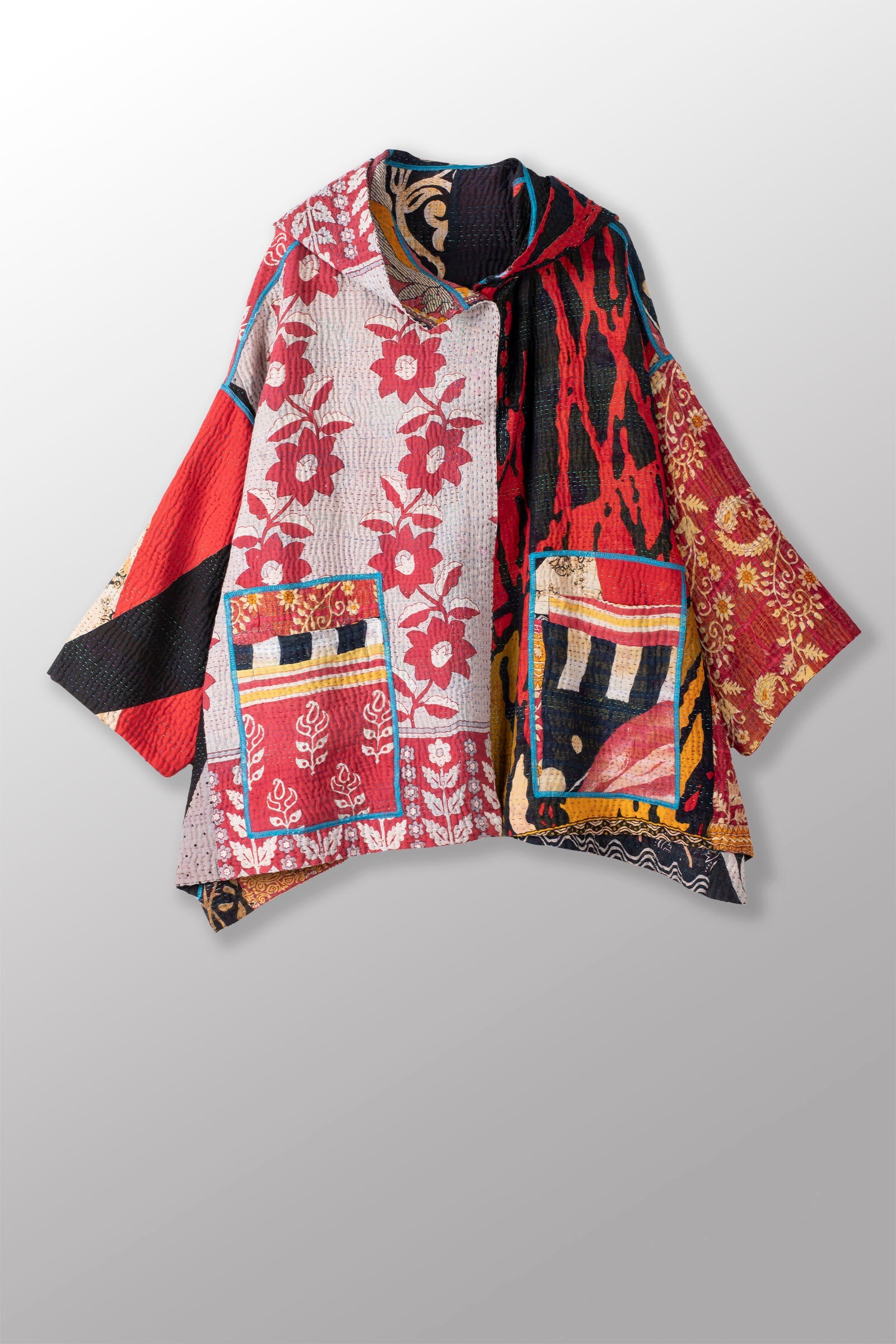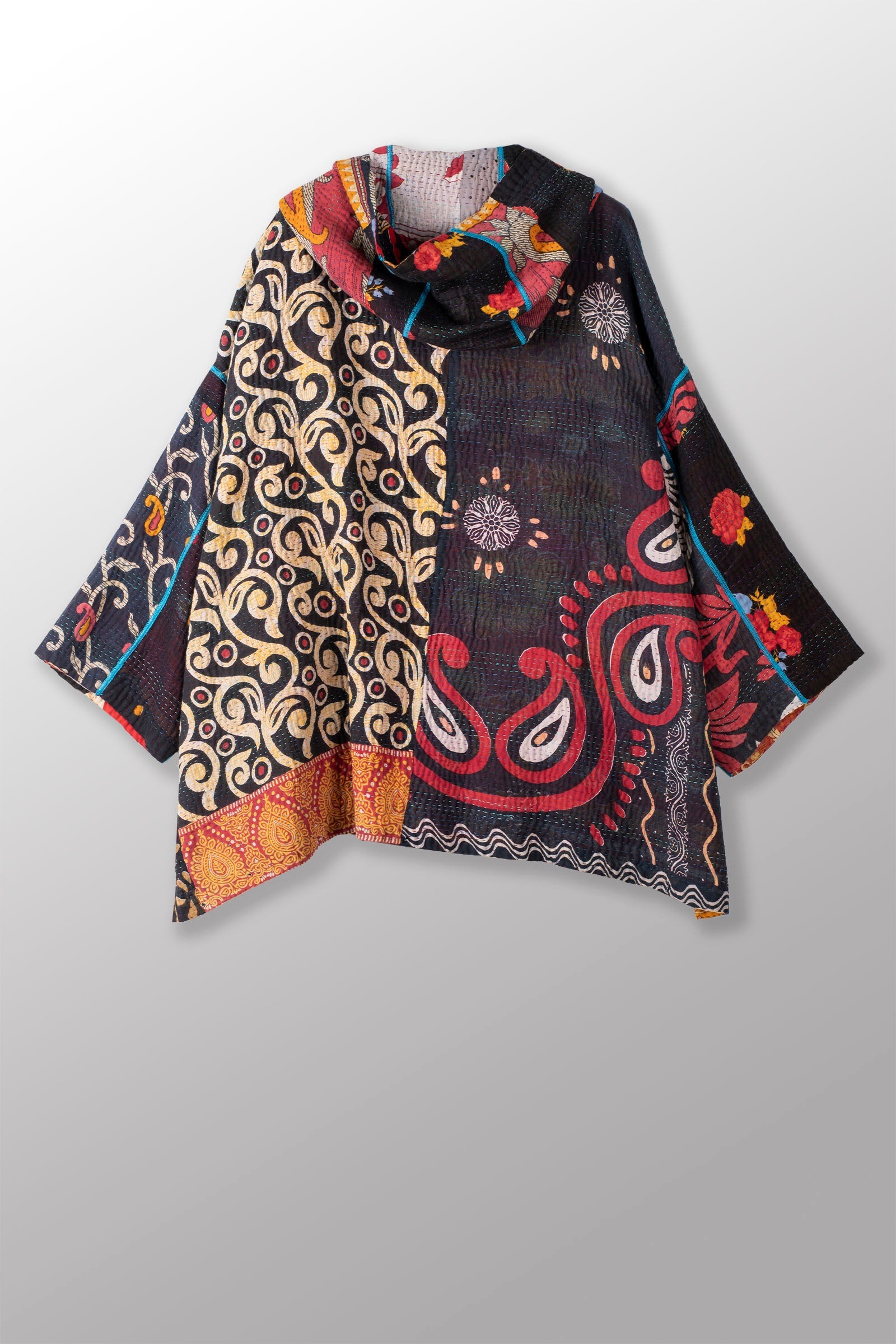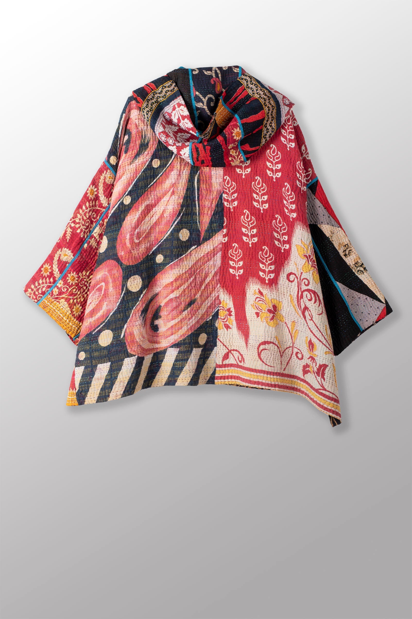 PUZZLE KANTHA HOODIE PONCHO - pz4064-red -