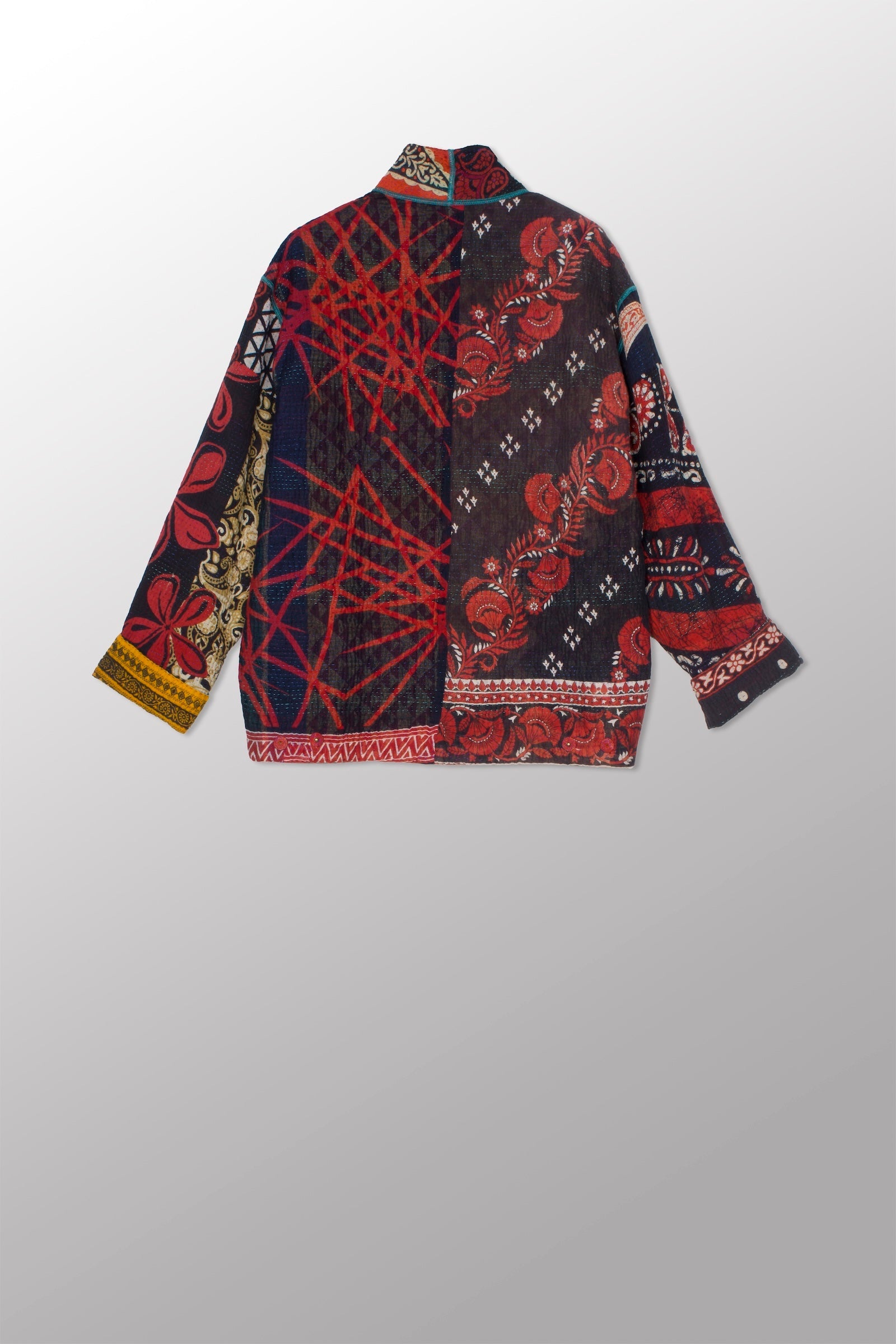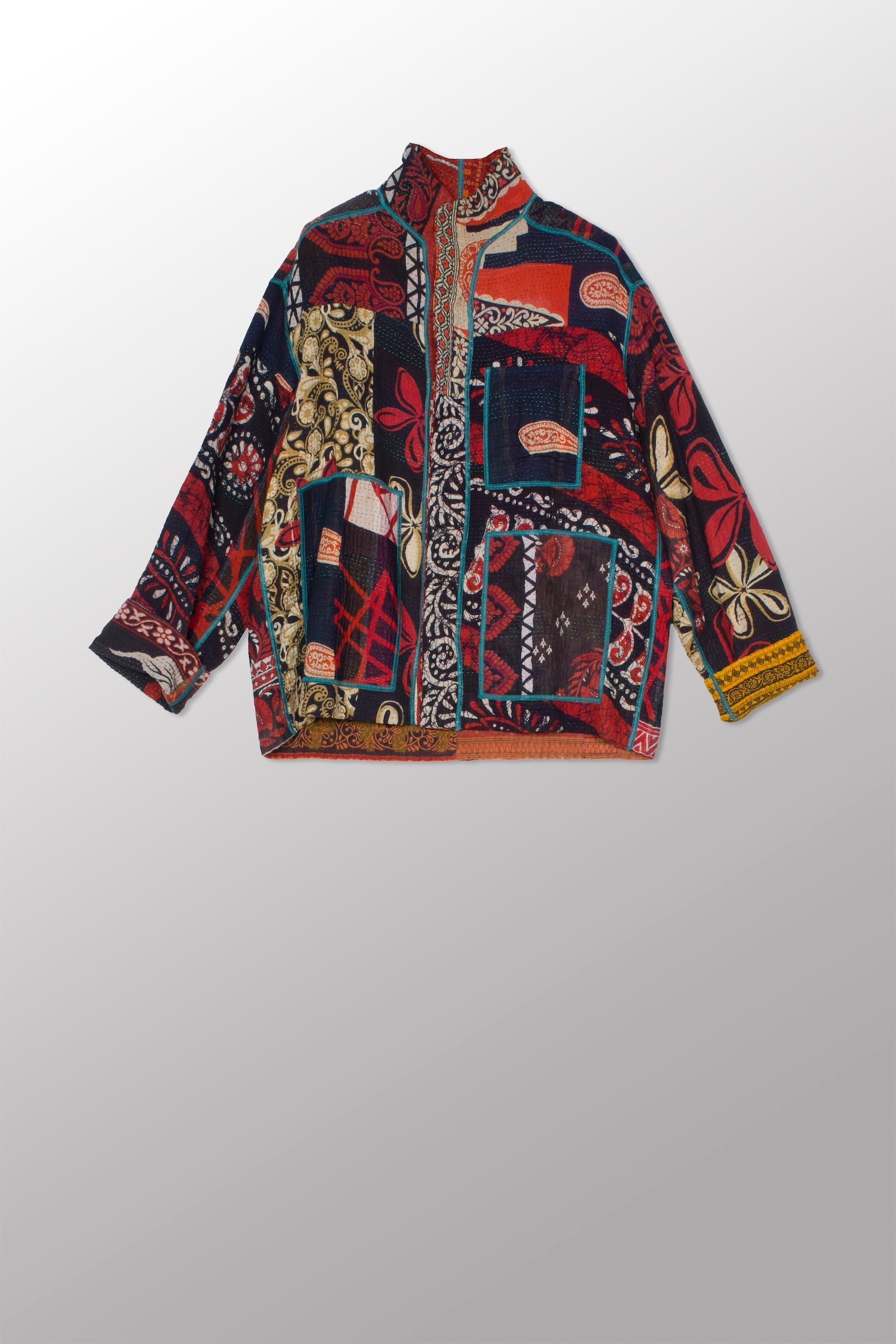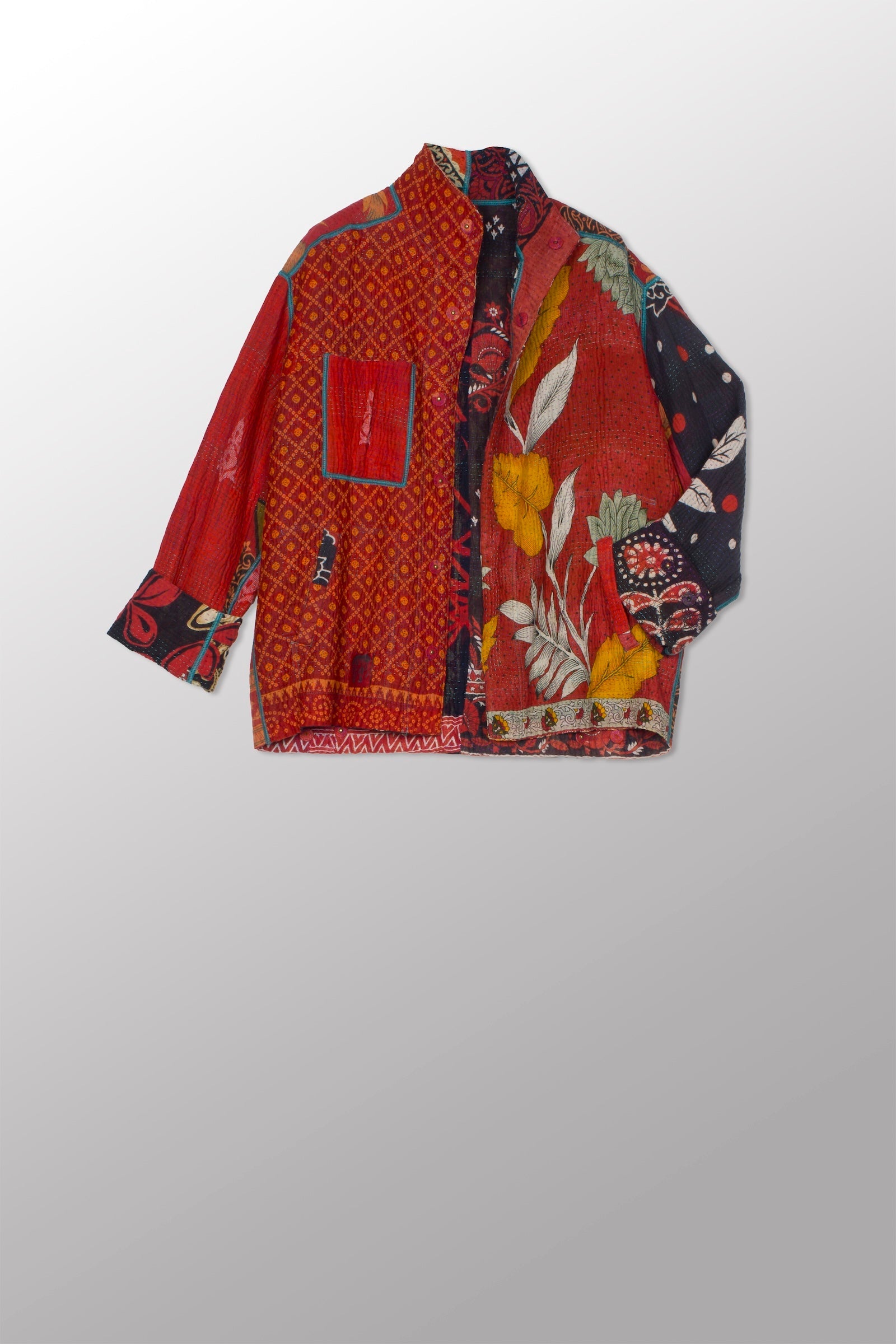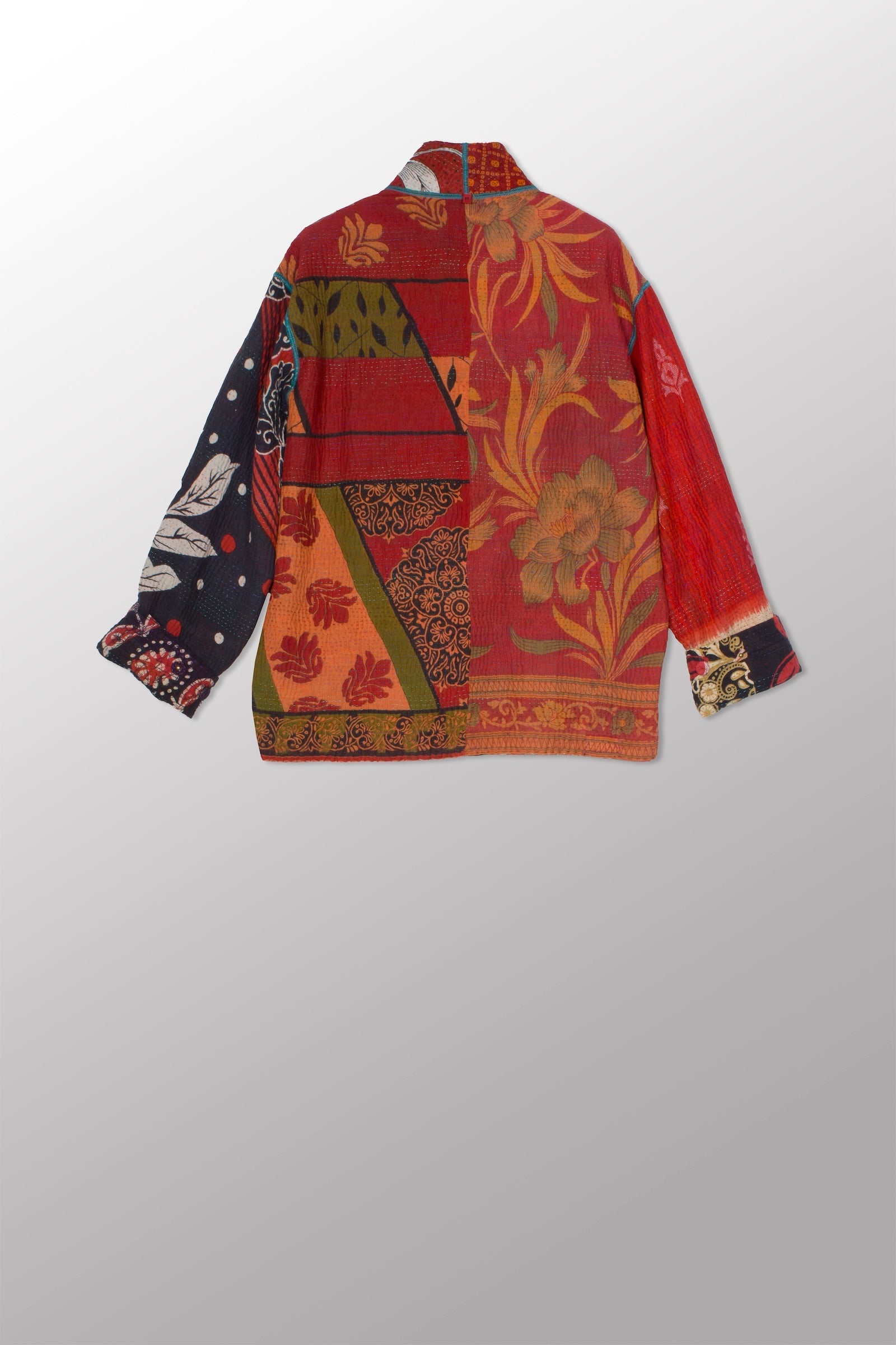 4 Layer Vintage Saris with Hand Stitches on Entire Garment - Reversible