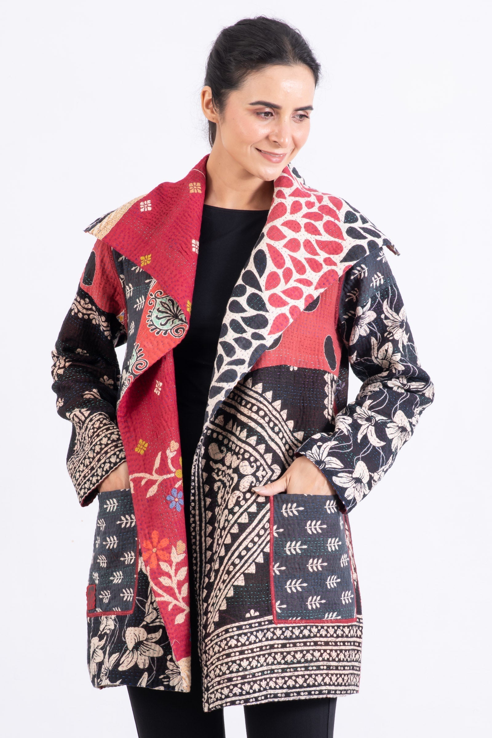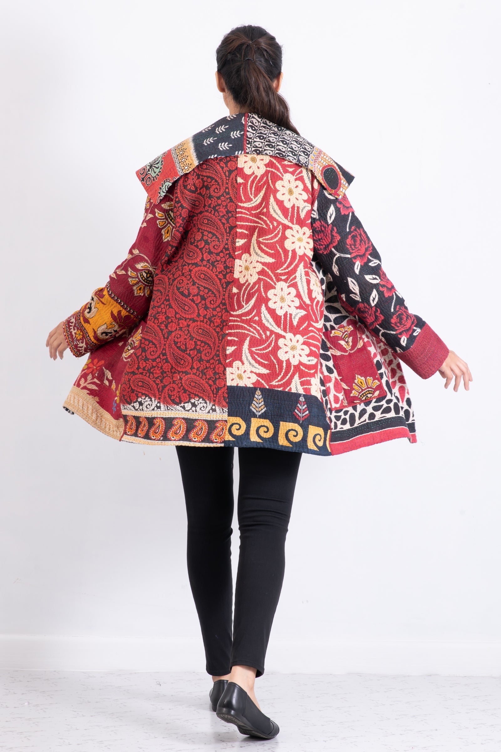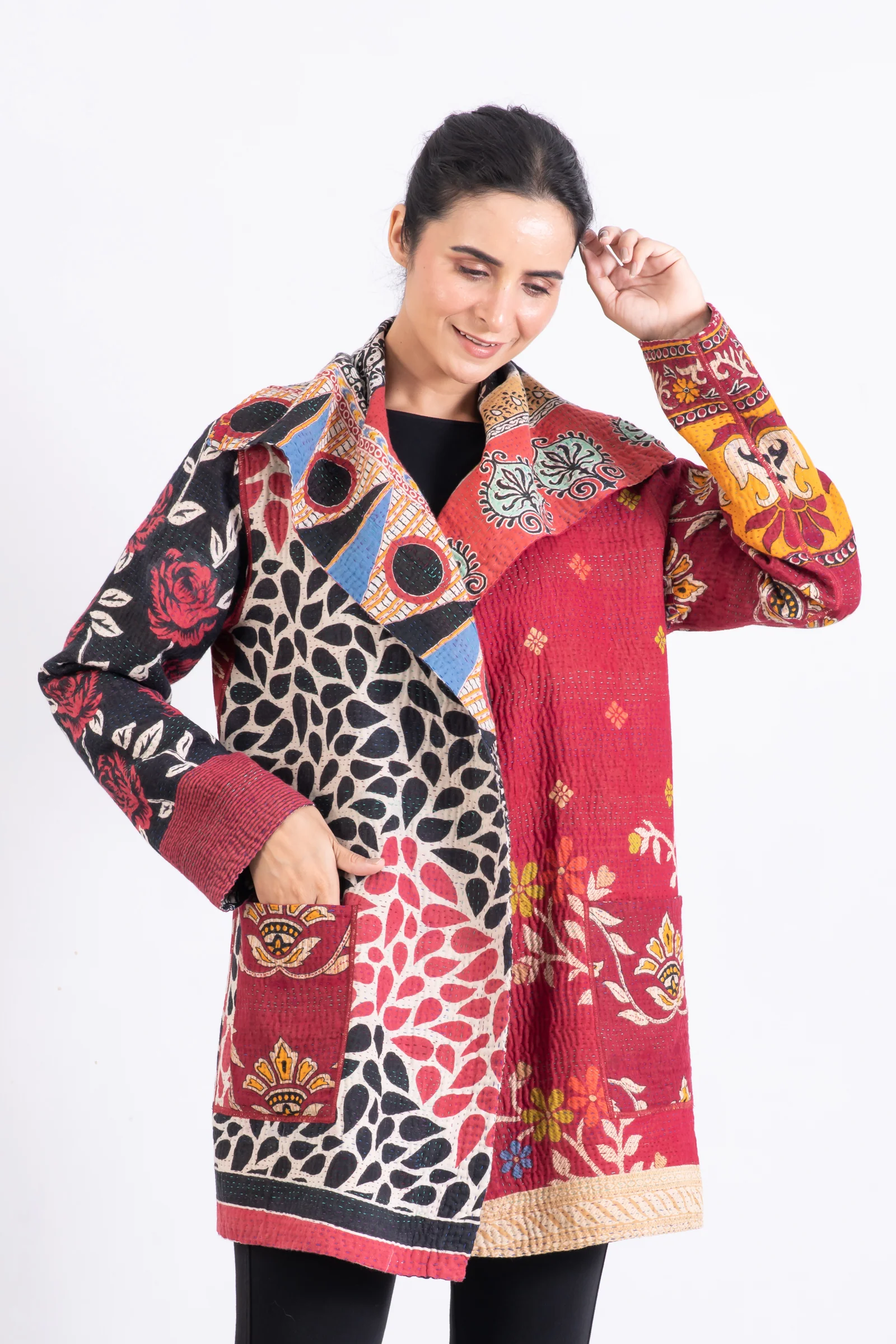 4 Layer Vintage Saris with Hand Stitches on Entire Garment - Reversible