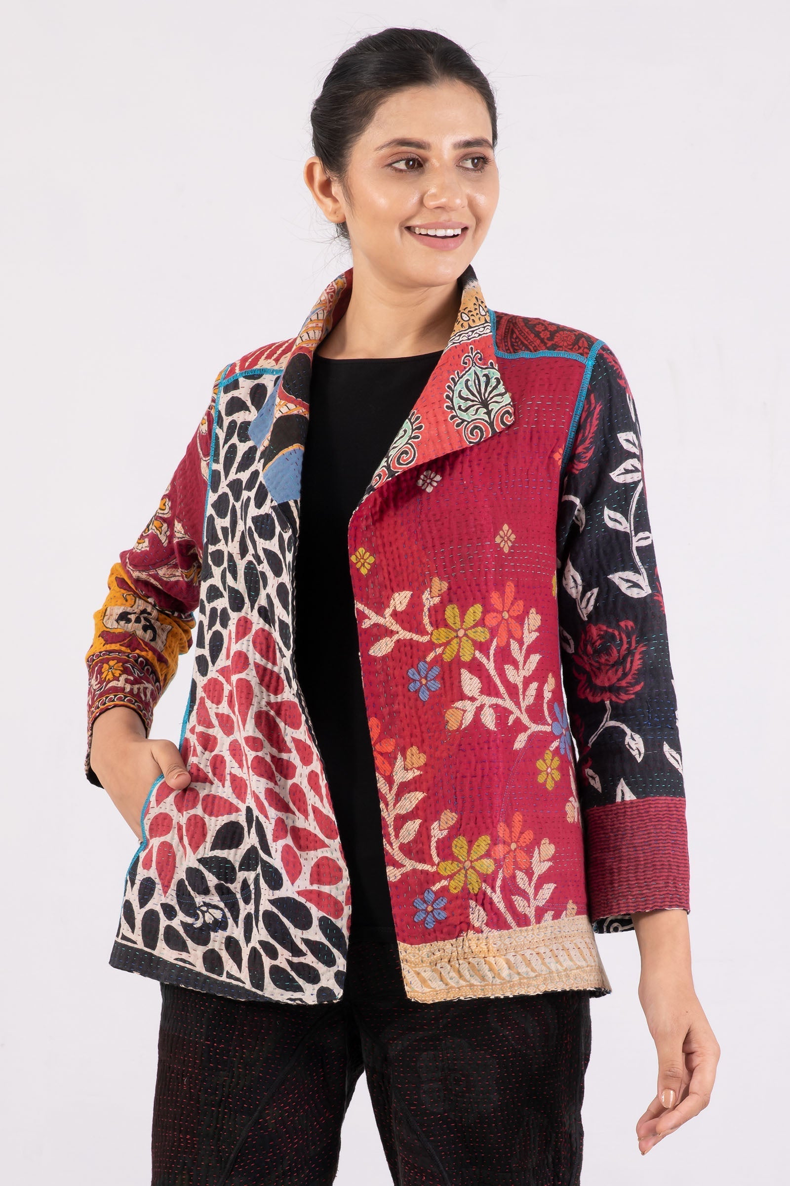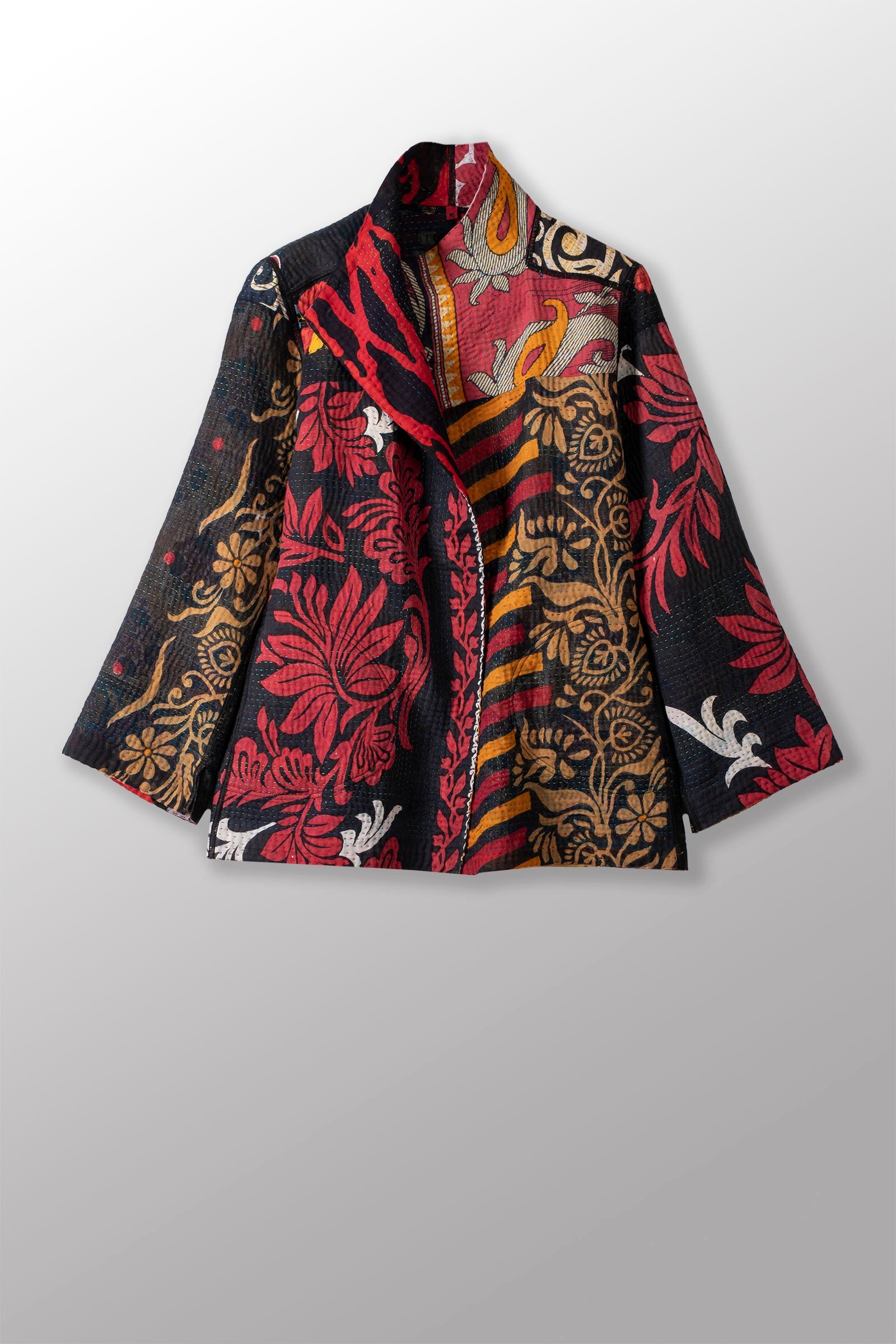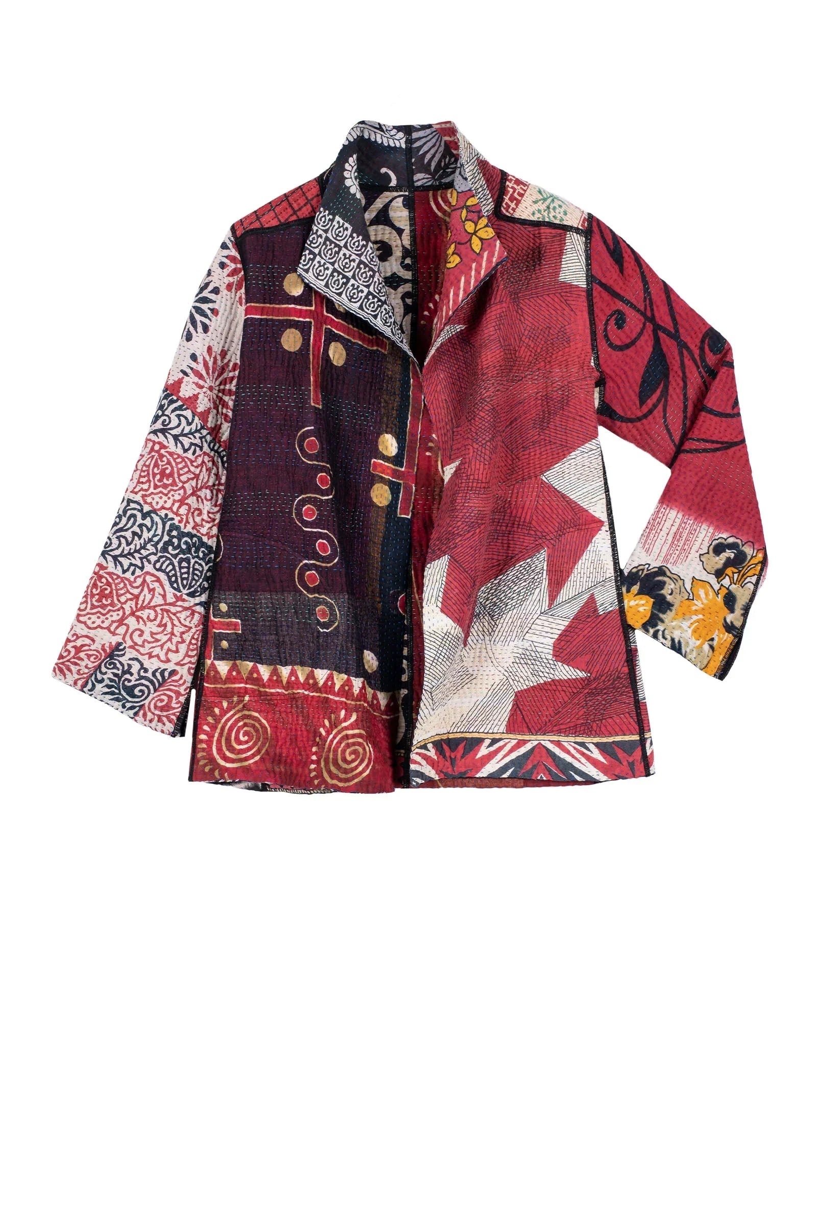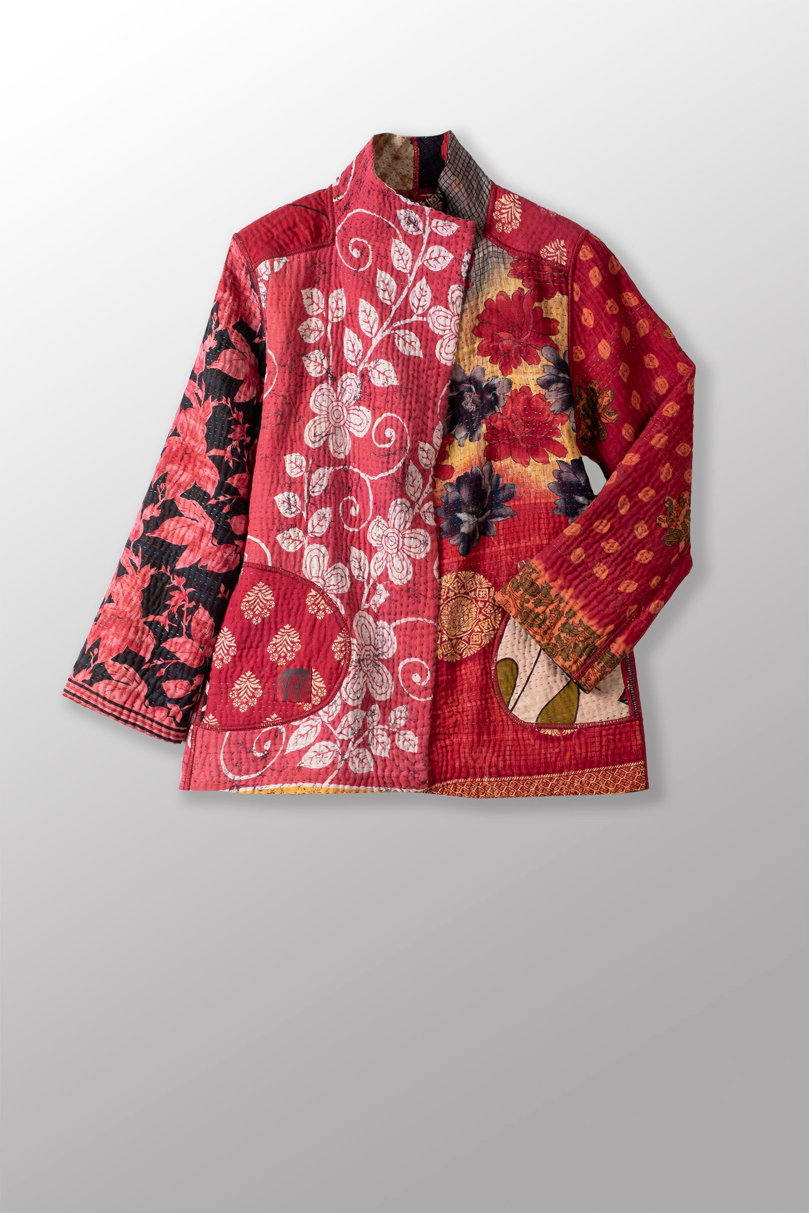 4 Layer Vintage Saris with Hand Stitches on Entire Garment - Reversible