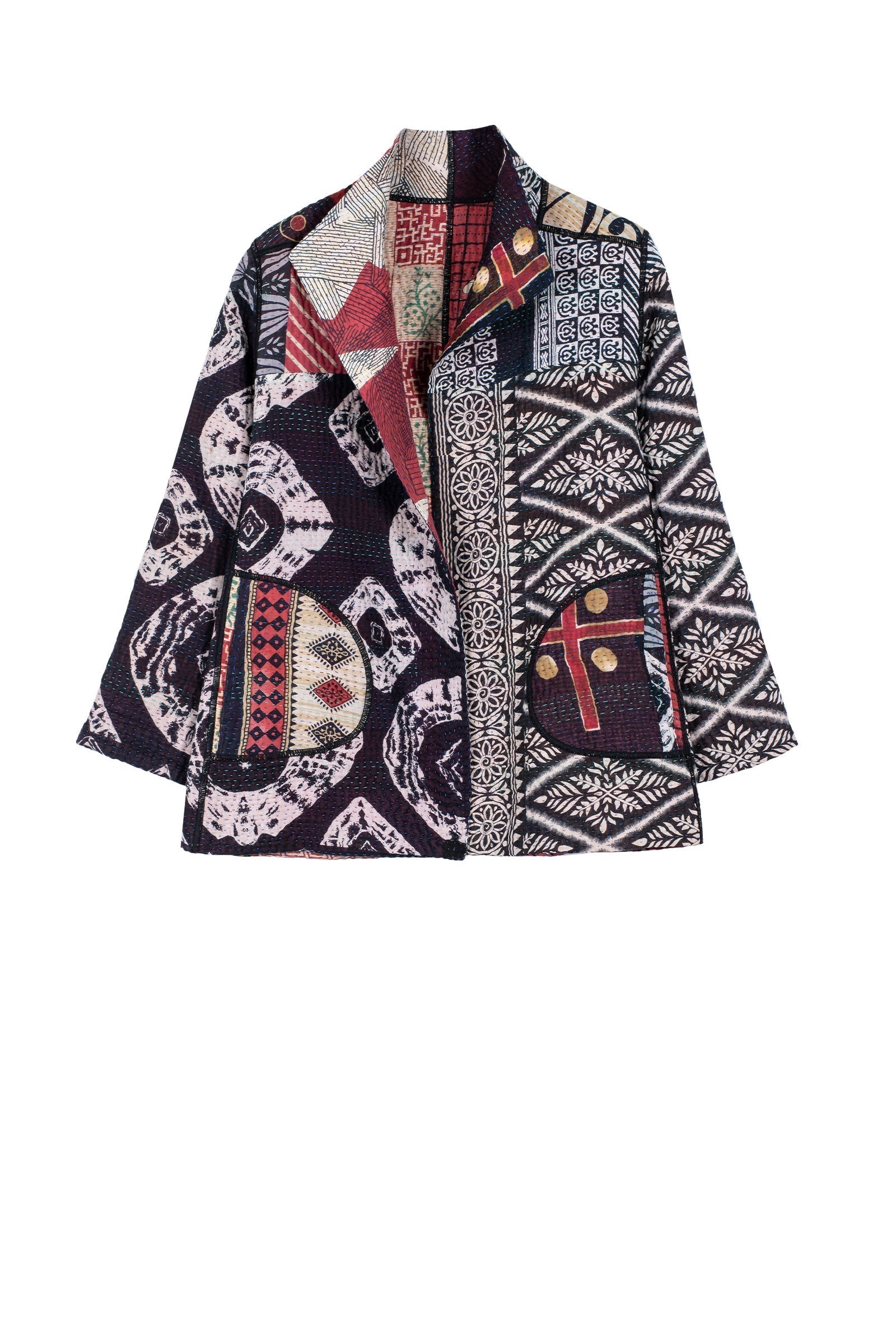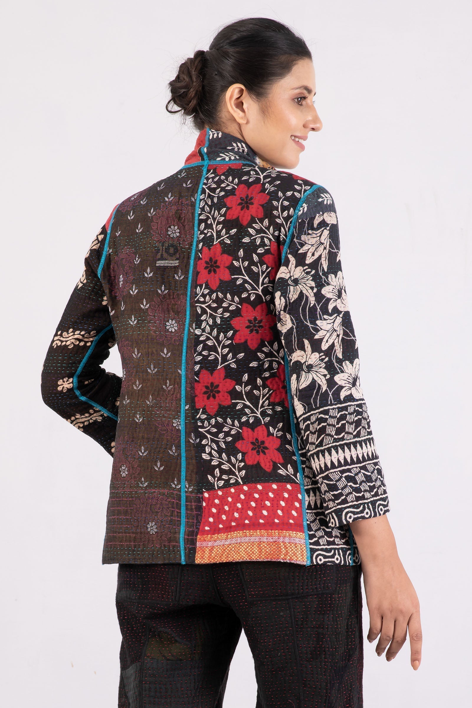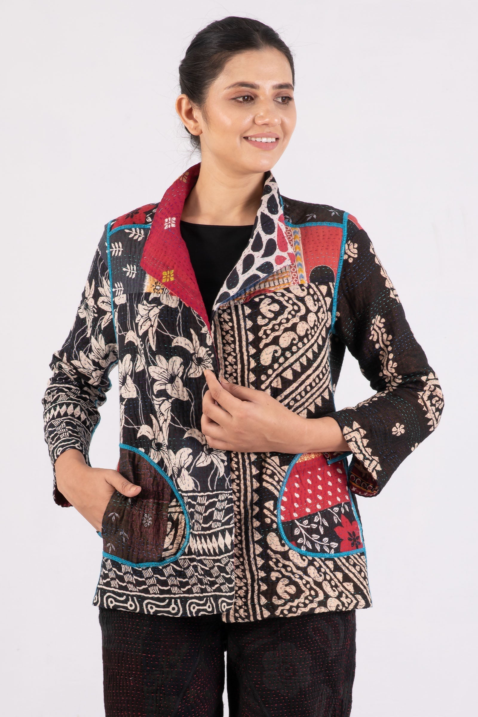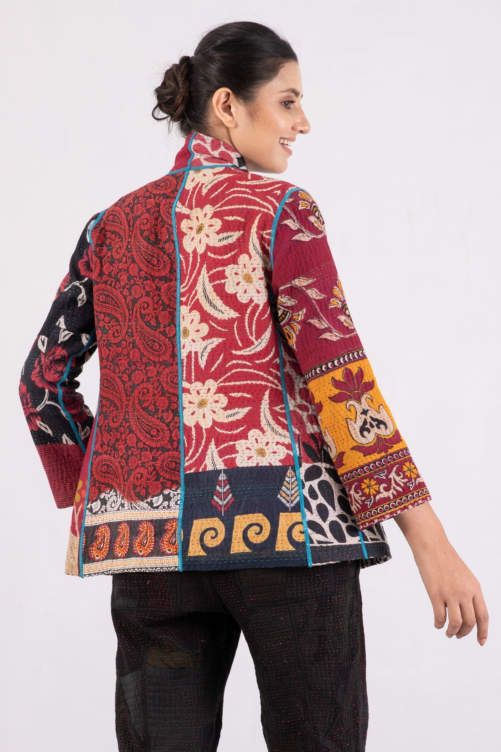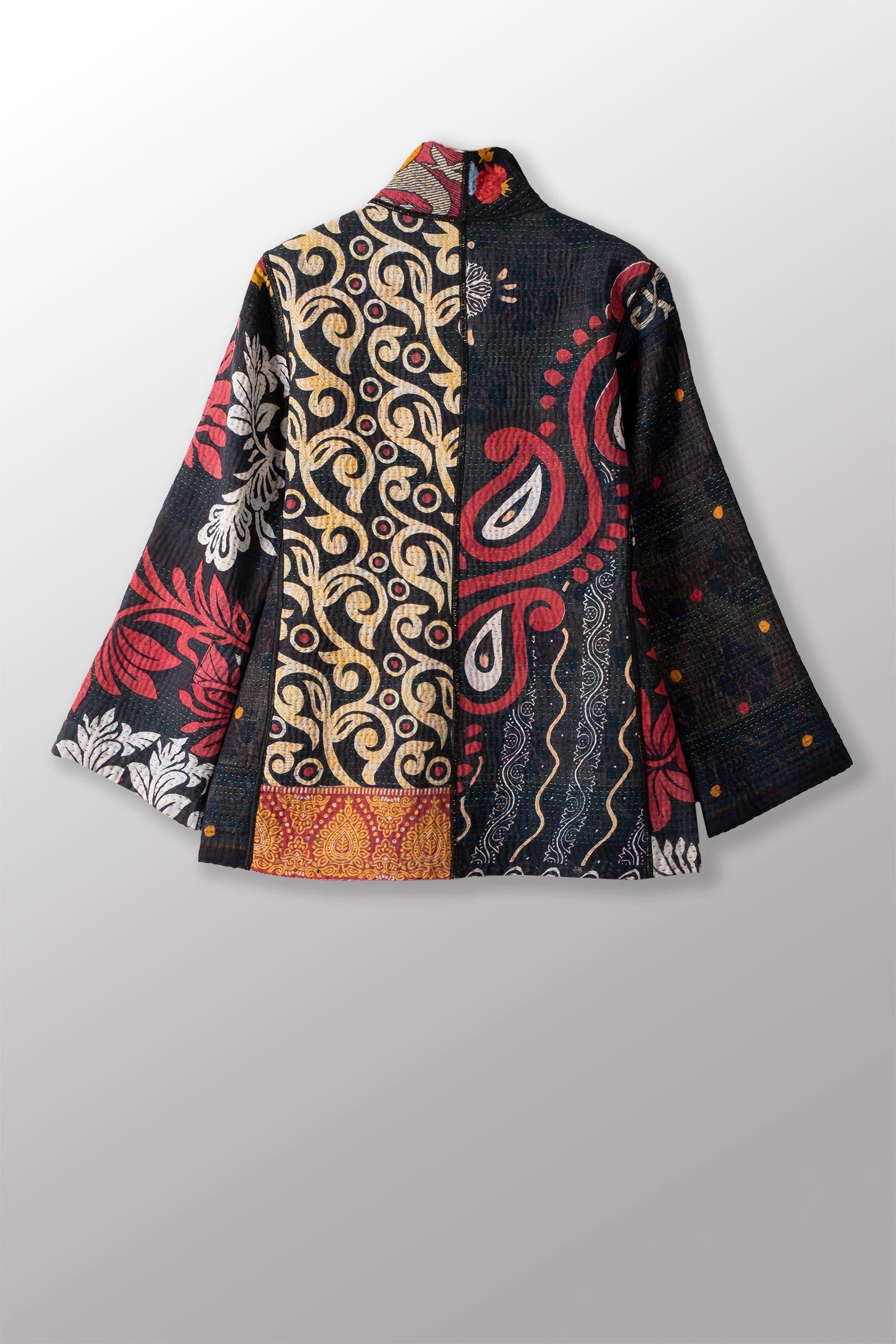4 Layer Vintage Saris with Hand Stitches on Entire Garment - Reversible
