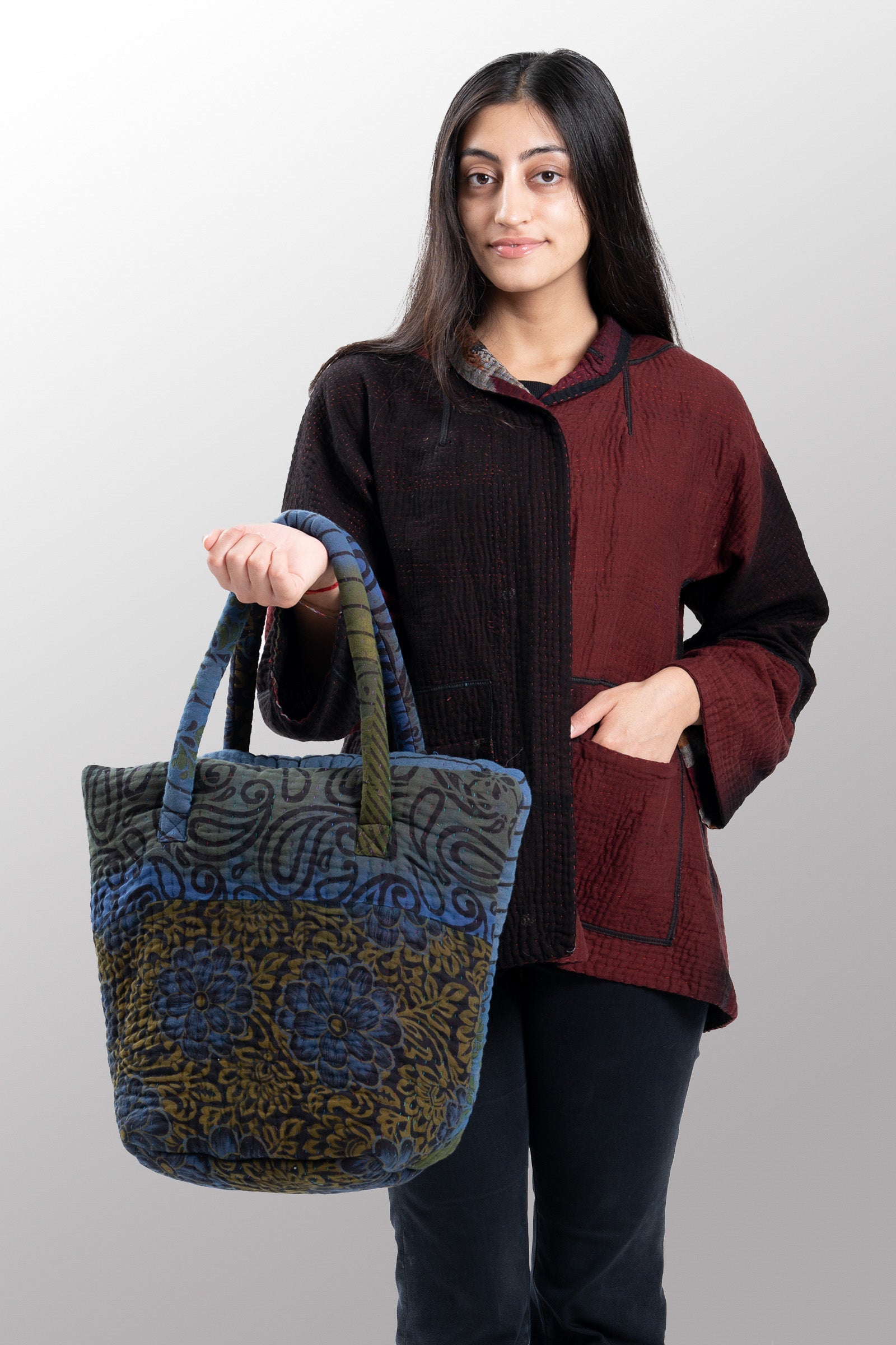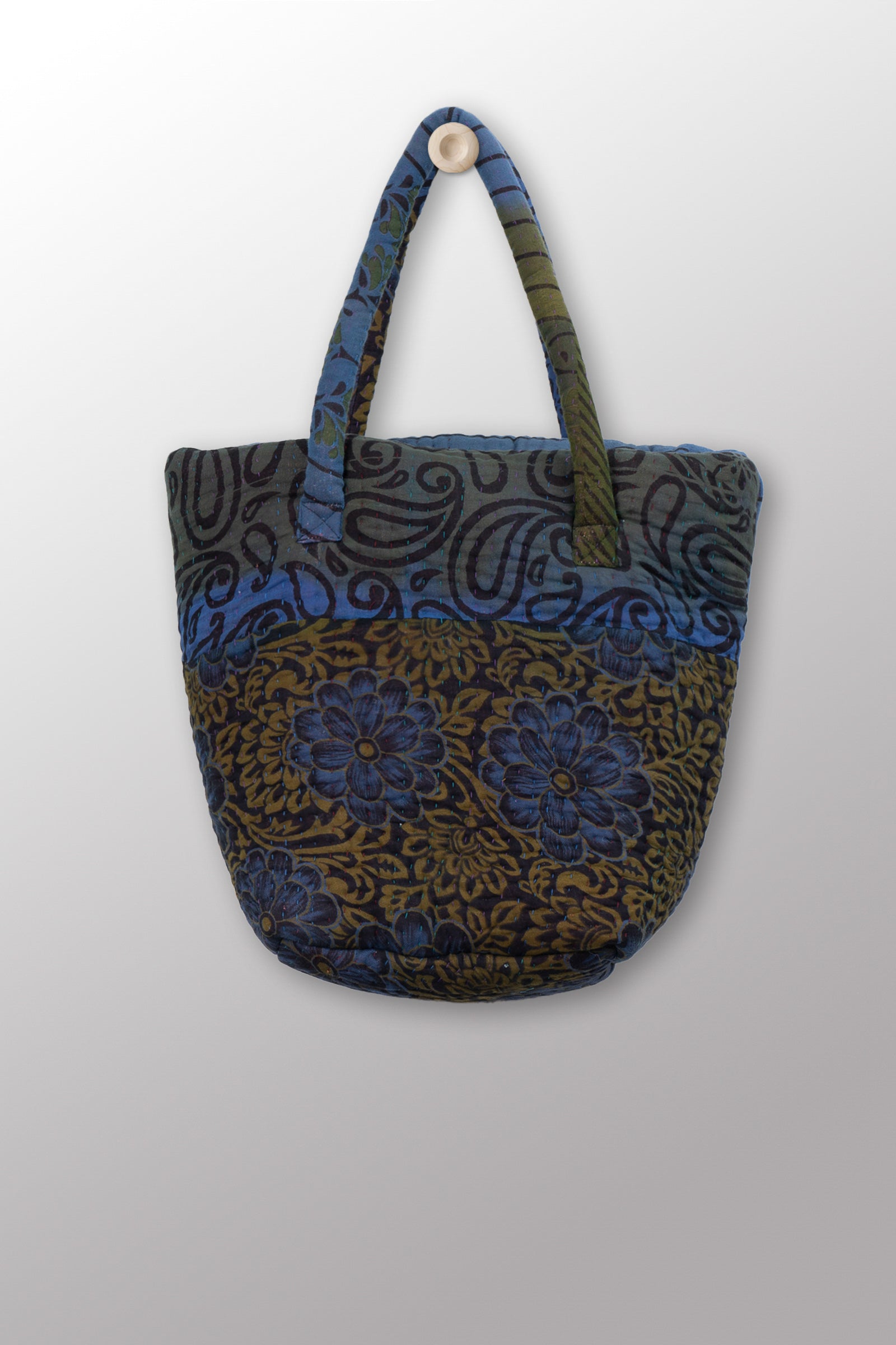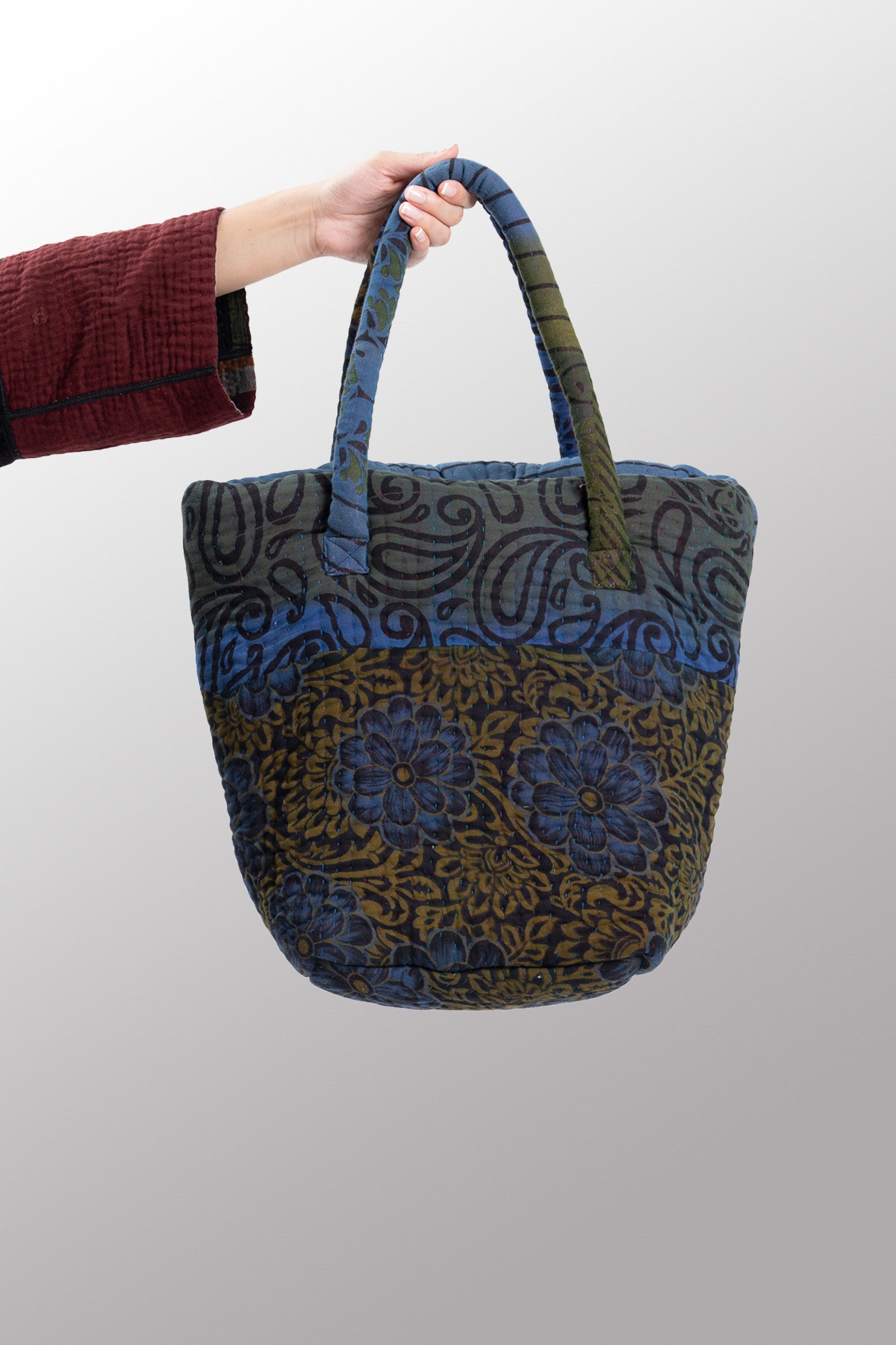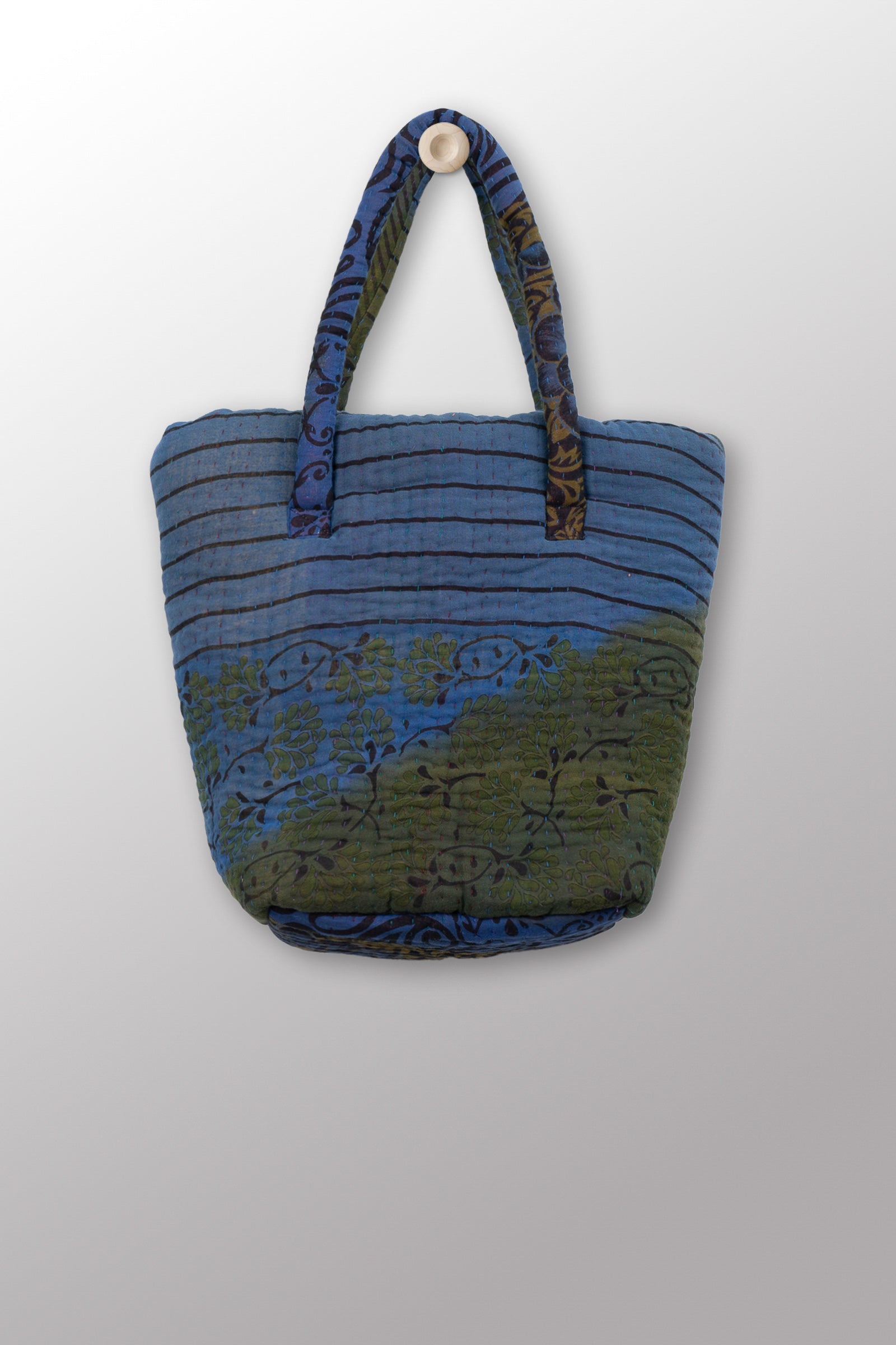 Quilted Over Dye Cotton Kantha Bucket Tote - mm-oq5867-cblu008a -