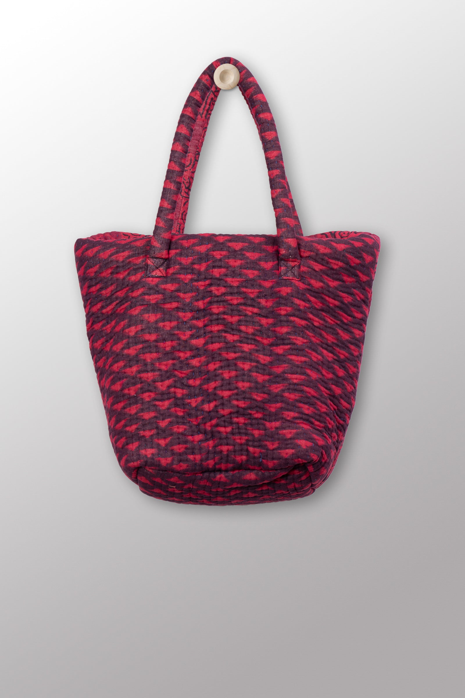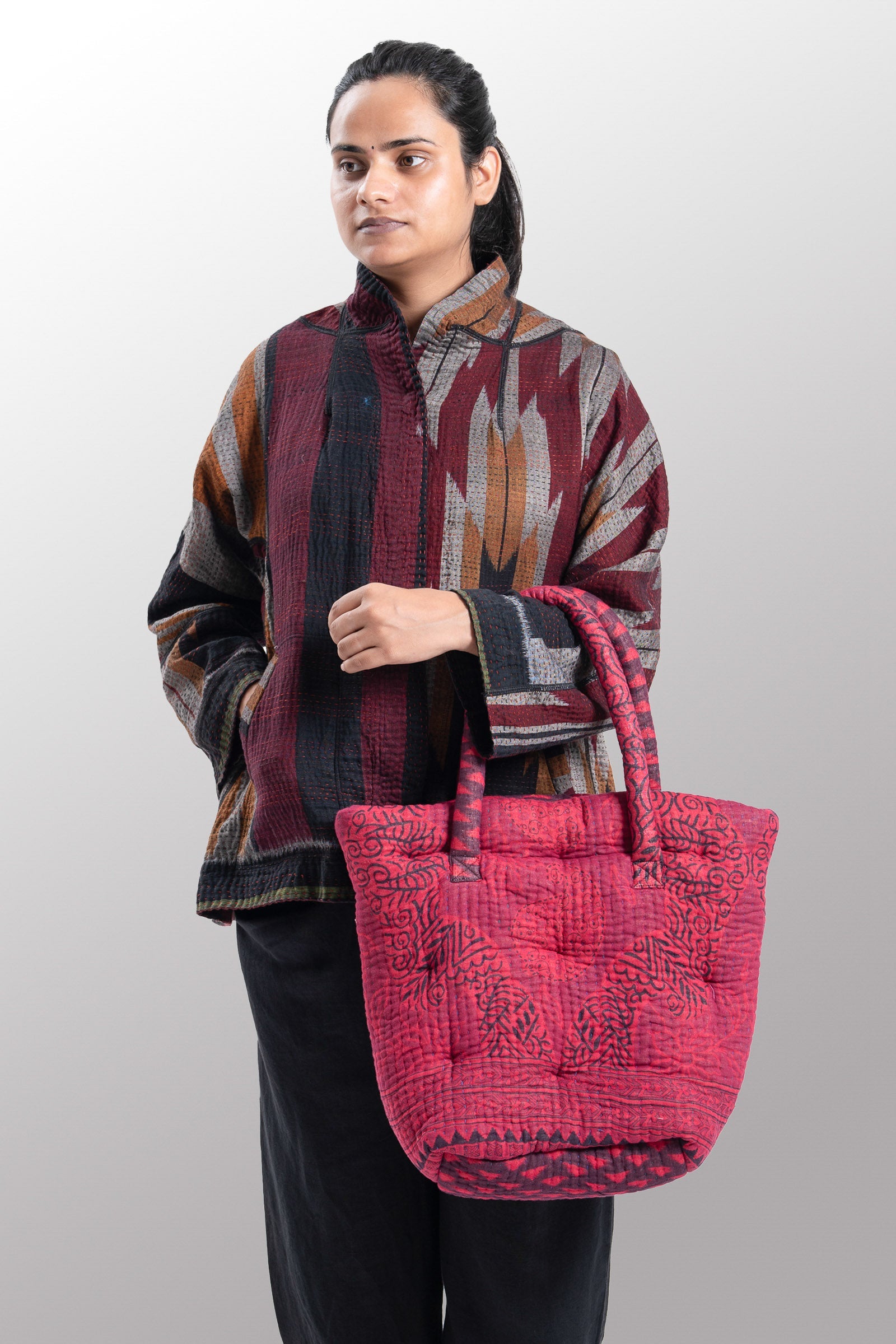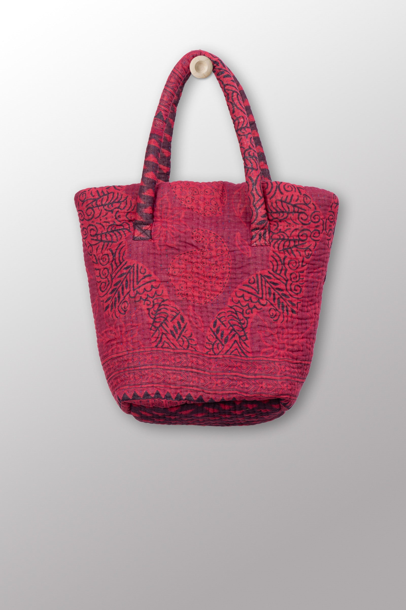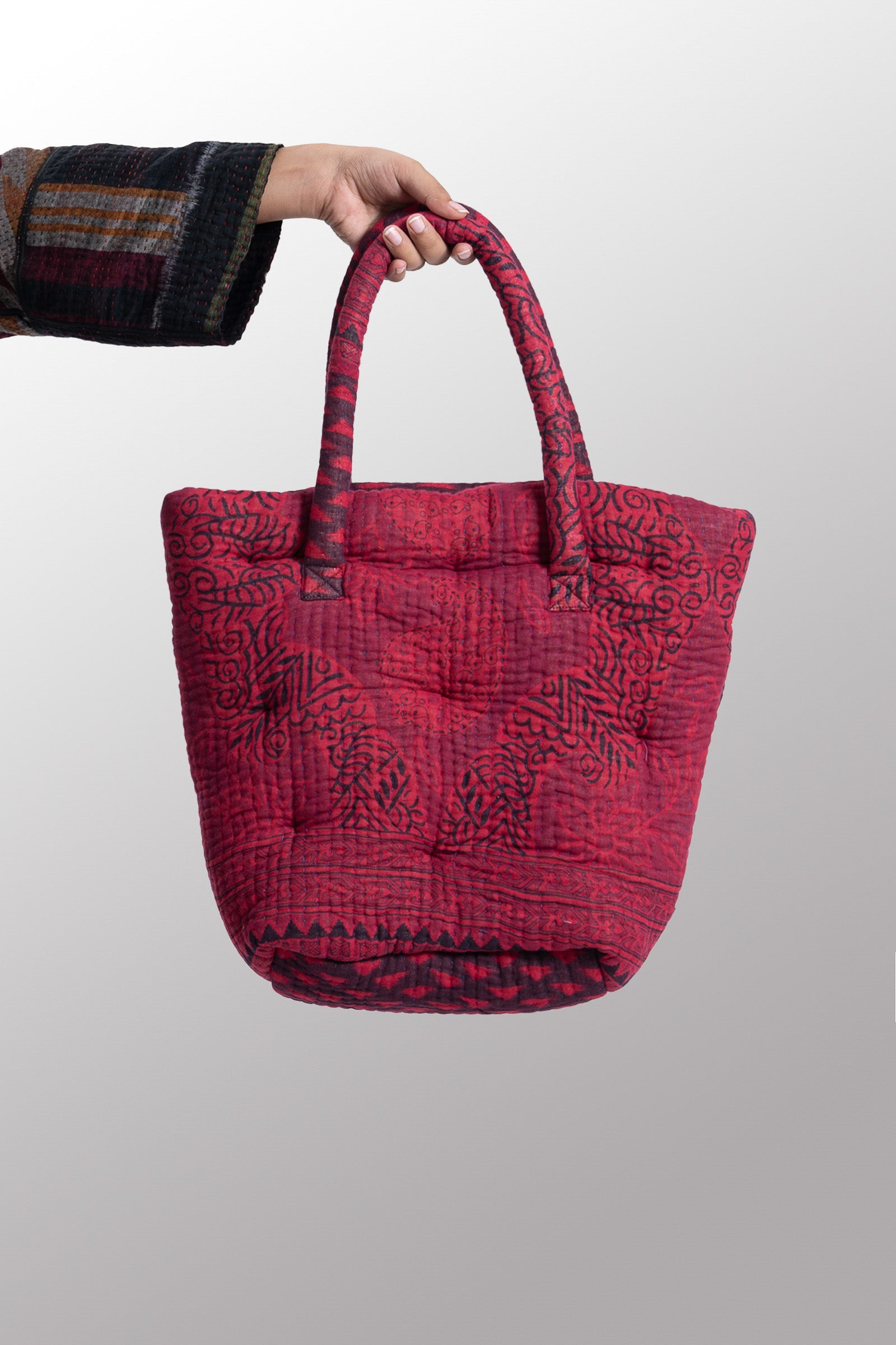Quilted Over Dye Cotton Kantha Bucket Tote - mm-oq5867-cred009a -