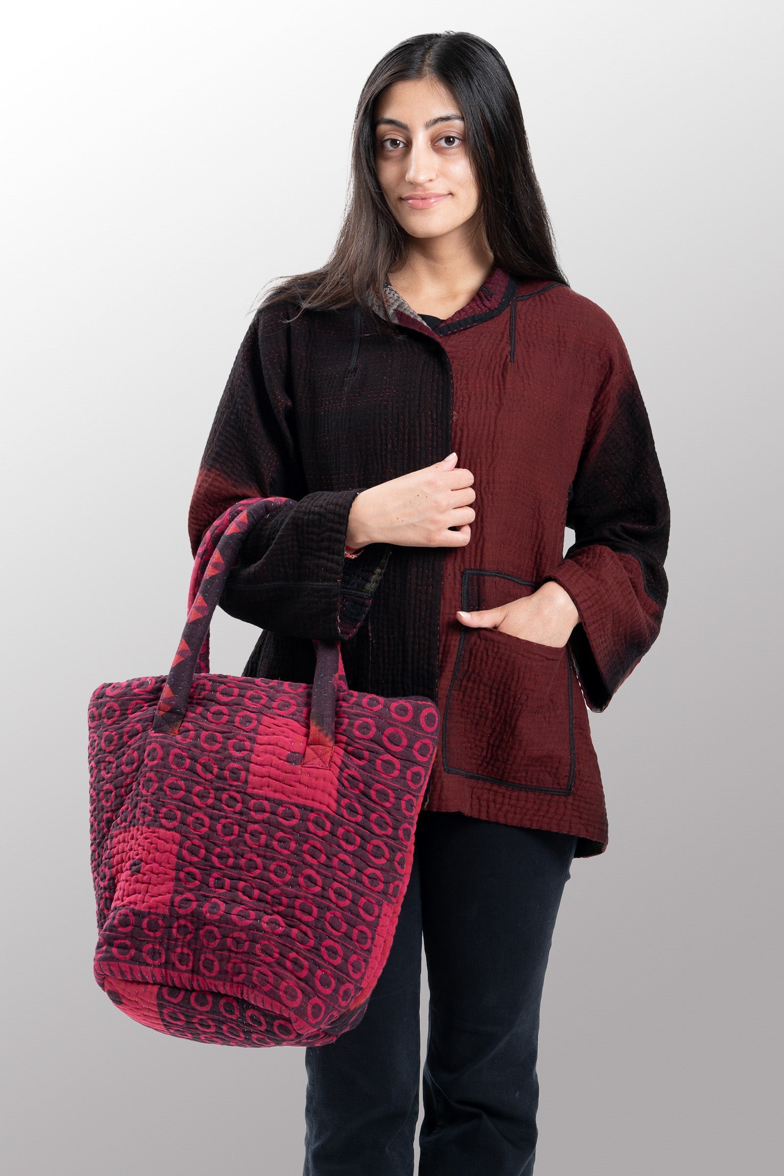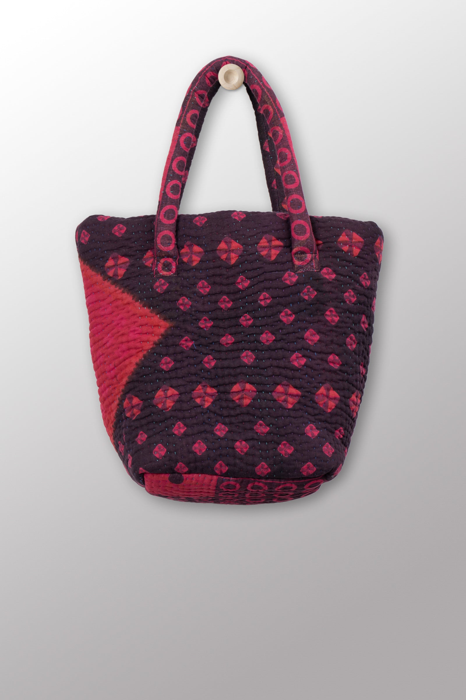 Quilted Over Dye Cotton Kantha Bucket Tote - mm-oq5867-cred010a -
