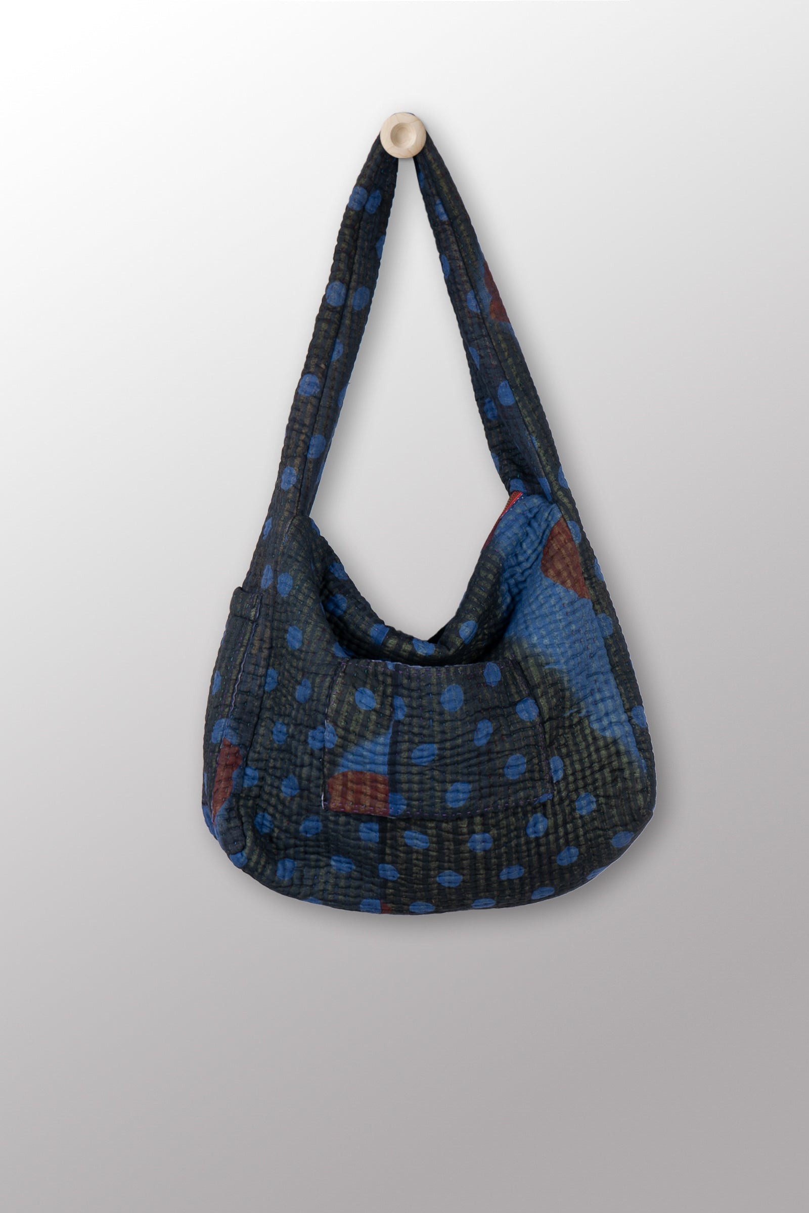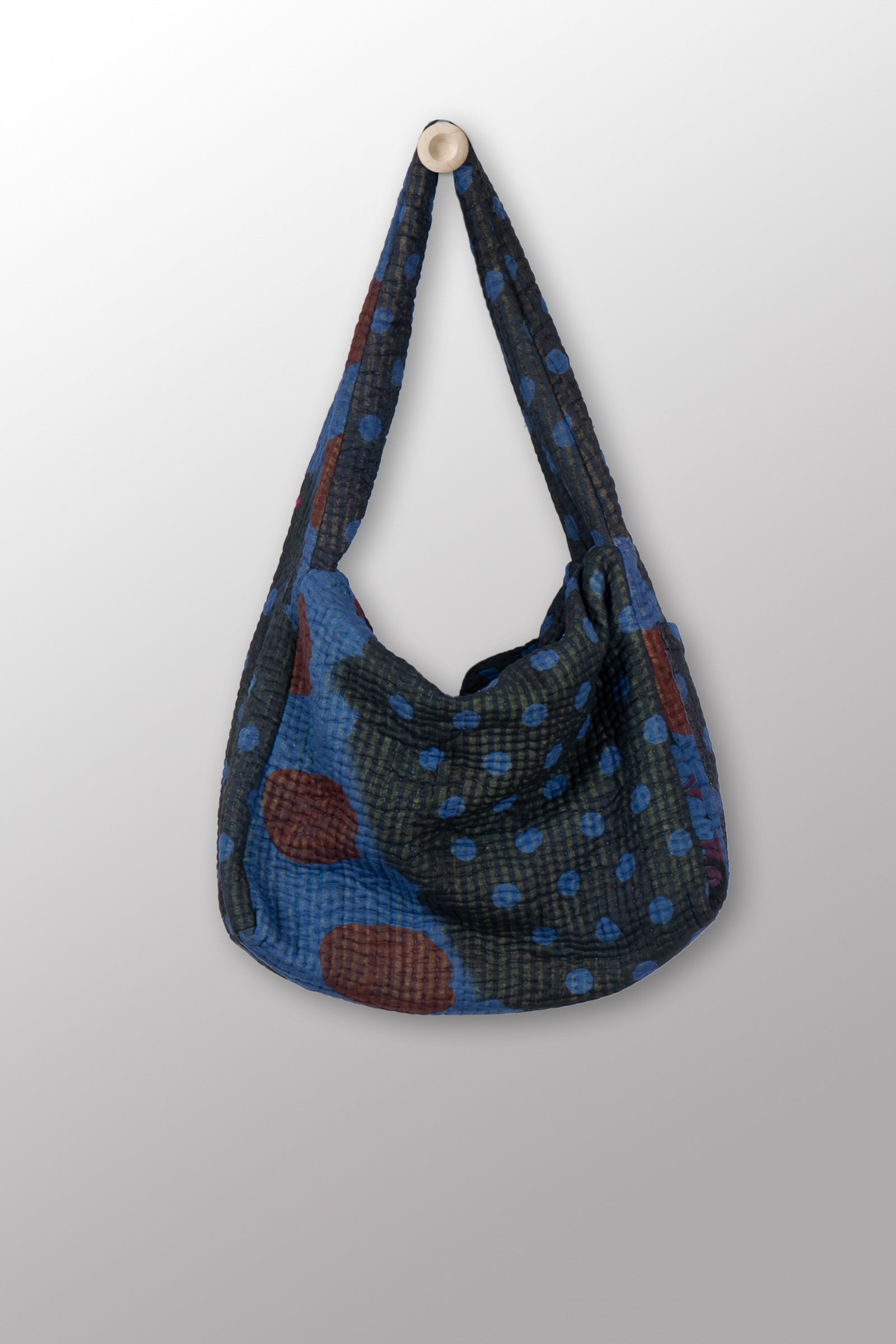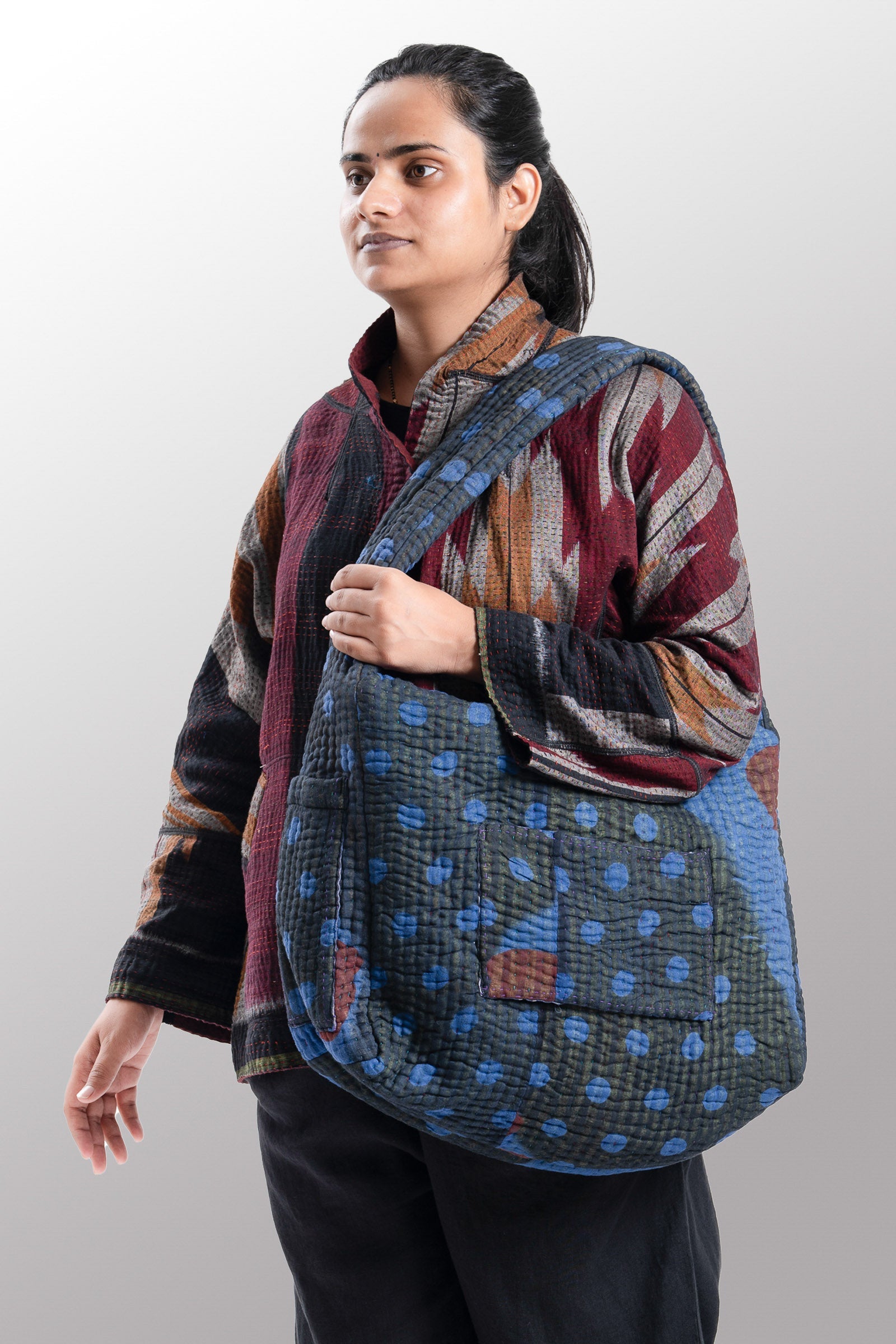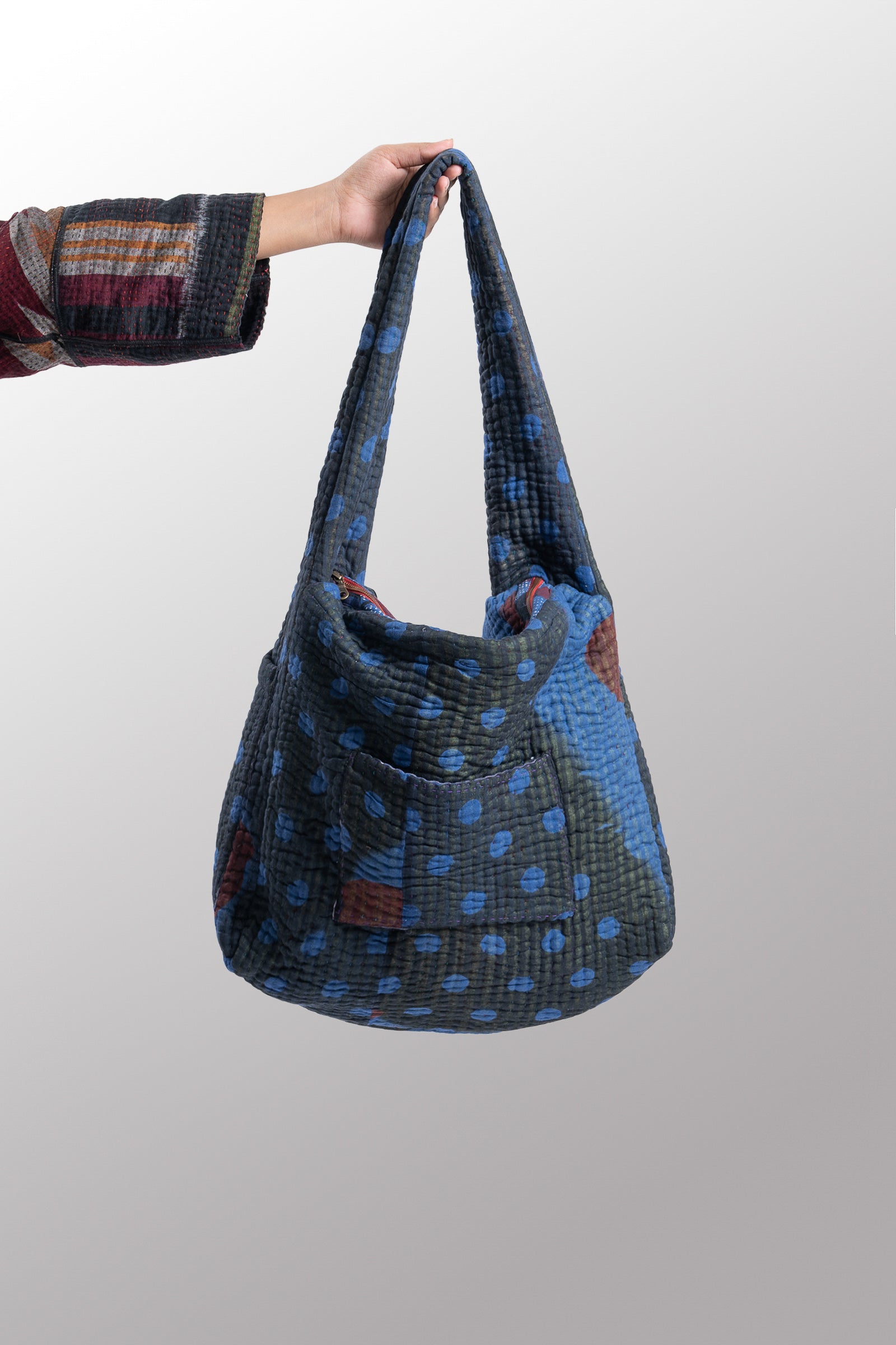 Quilted Over Dye Cotton Kantha Oversized Hobo Bag - mm-oq5870-cblu003a -
