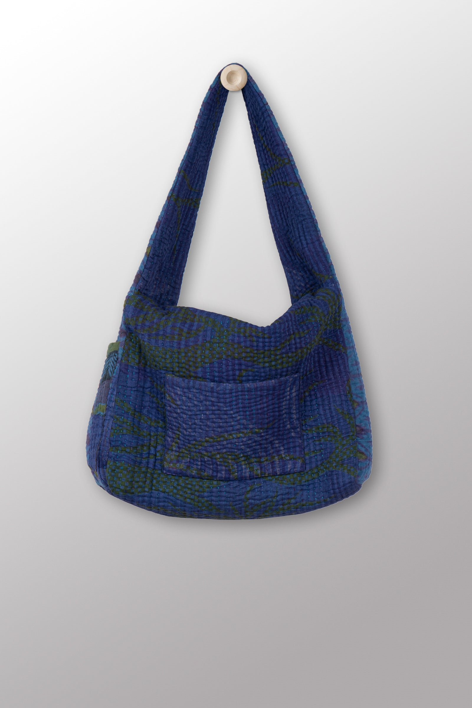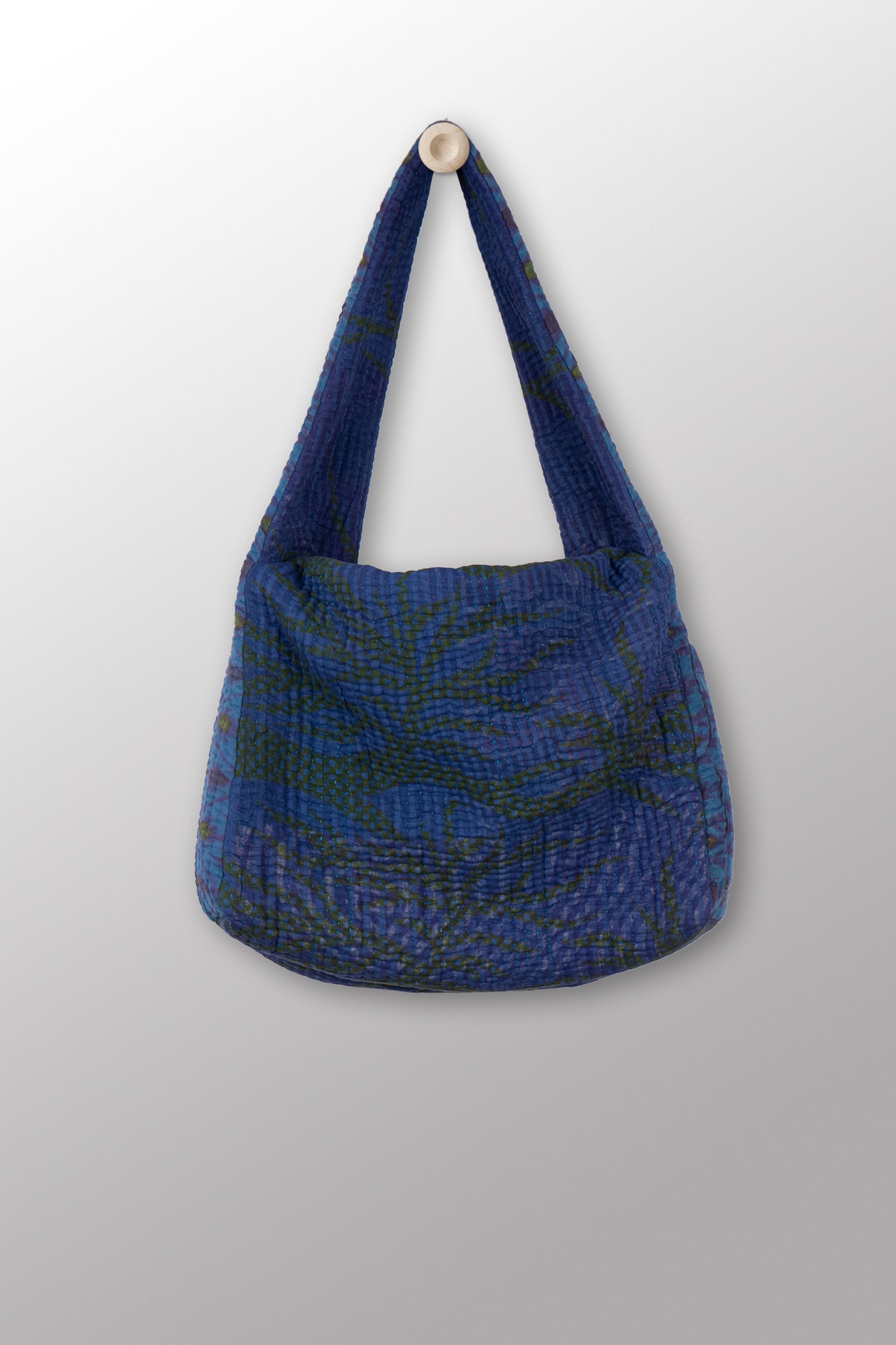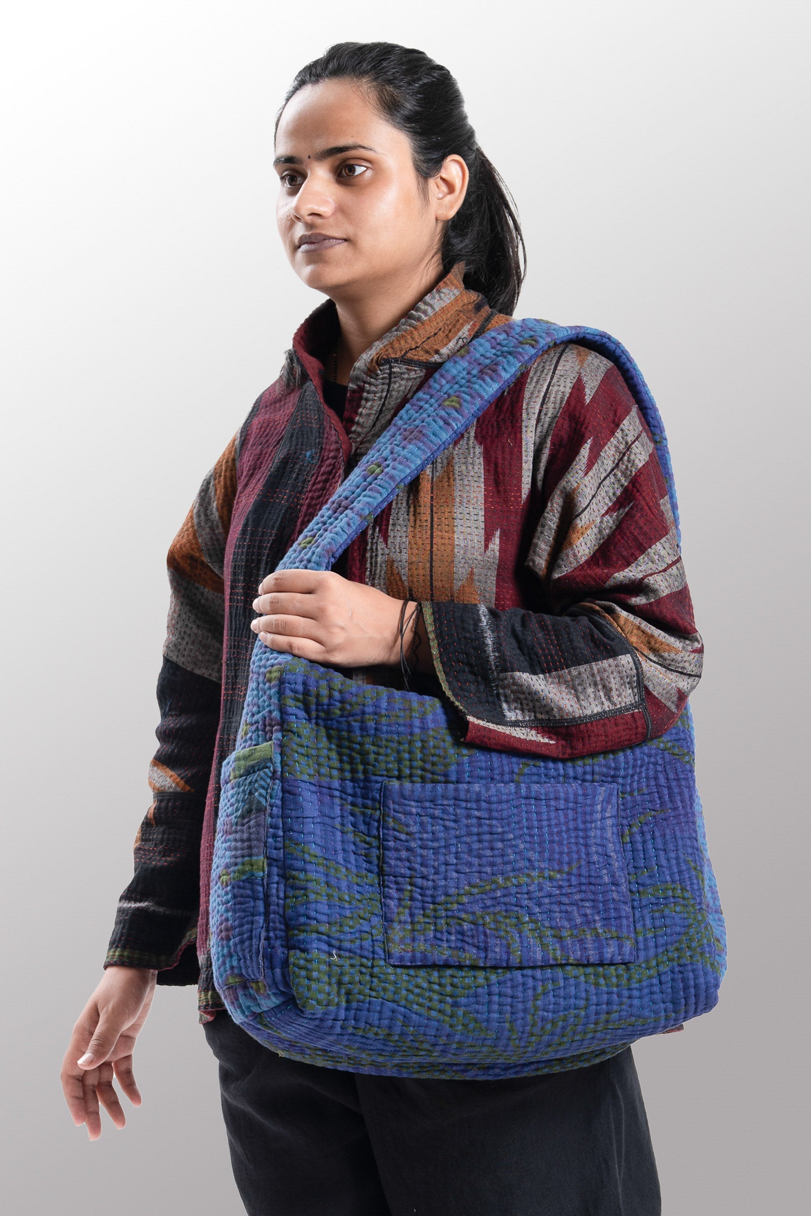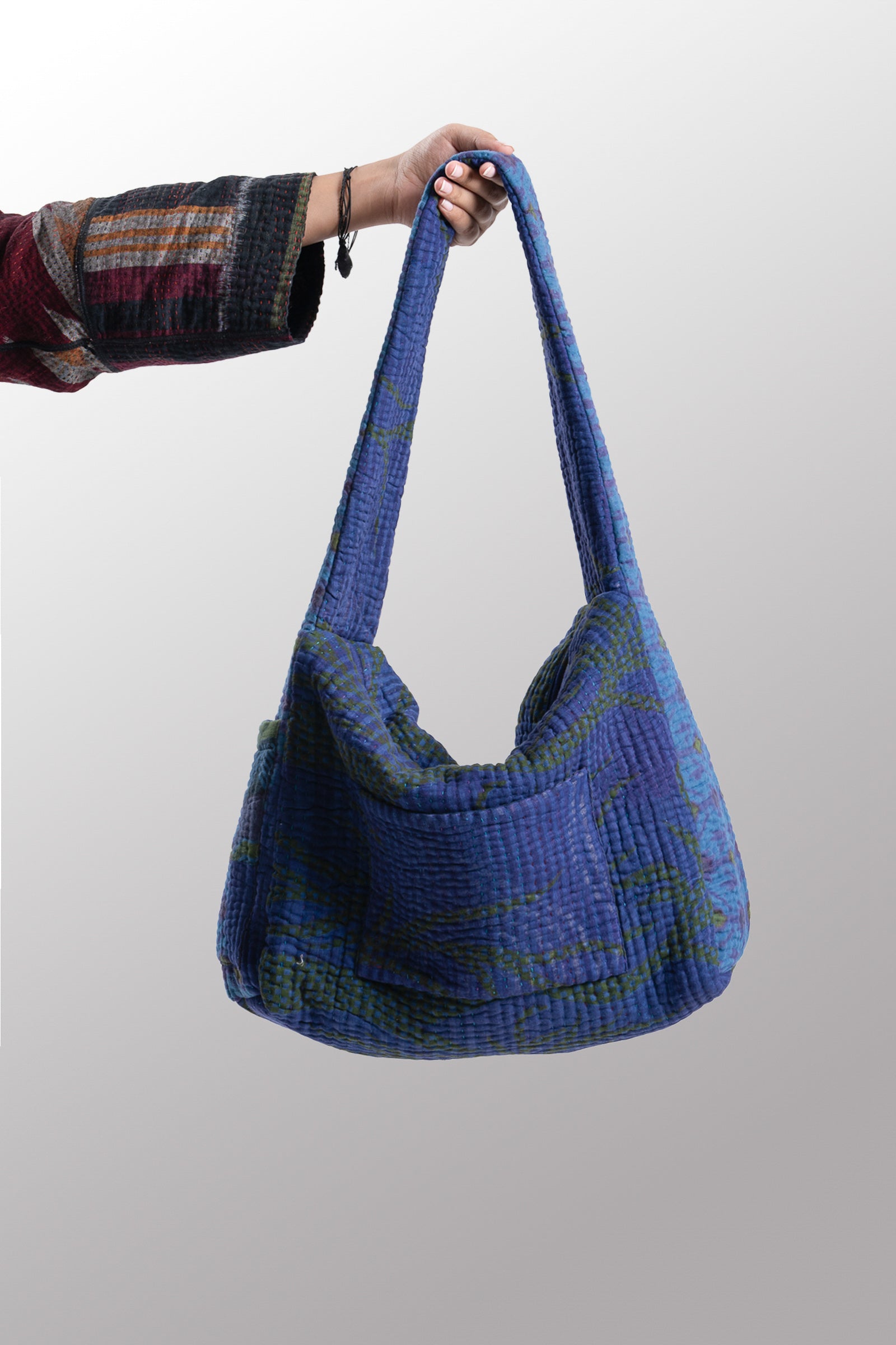 Quilted Over Dye Cotton Kantha Oversized Hobo Bag - mm-oq5870-cblu005a -