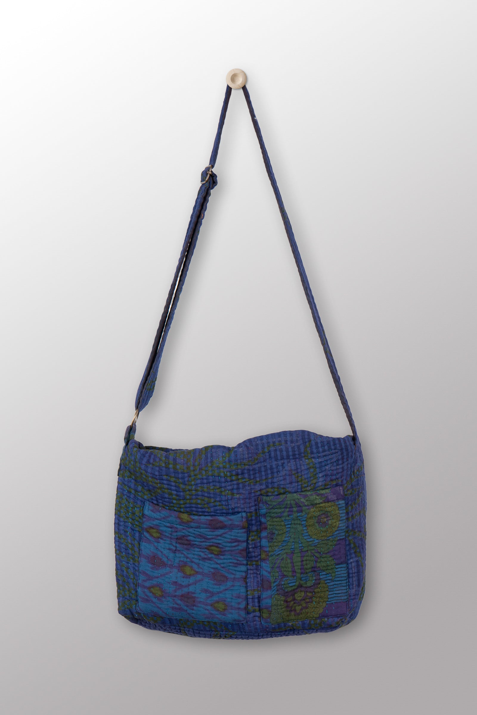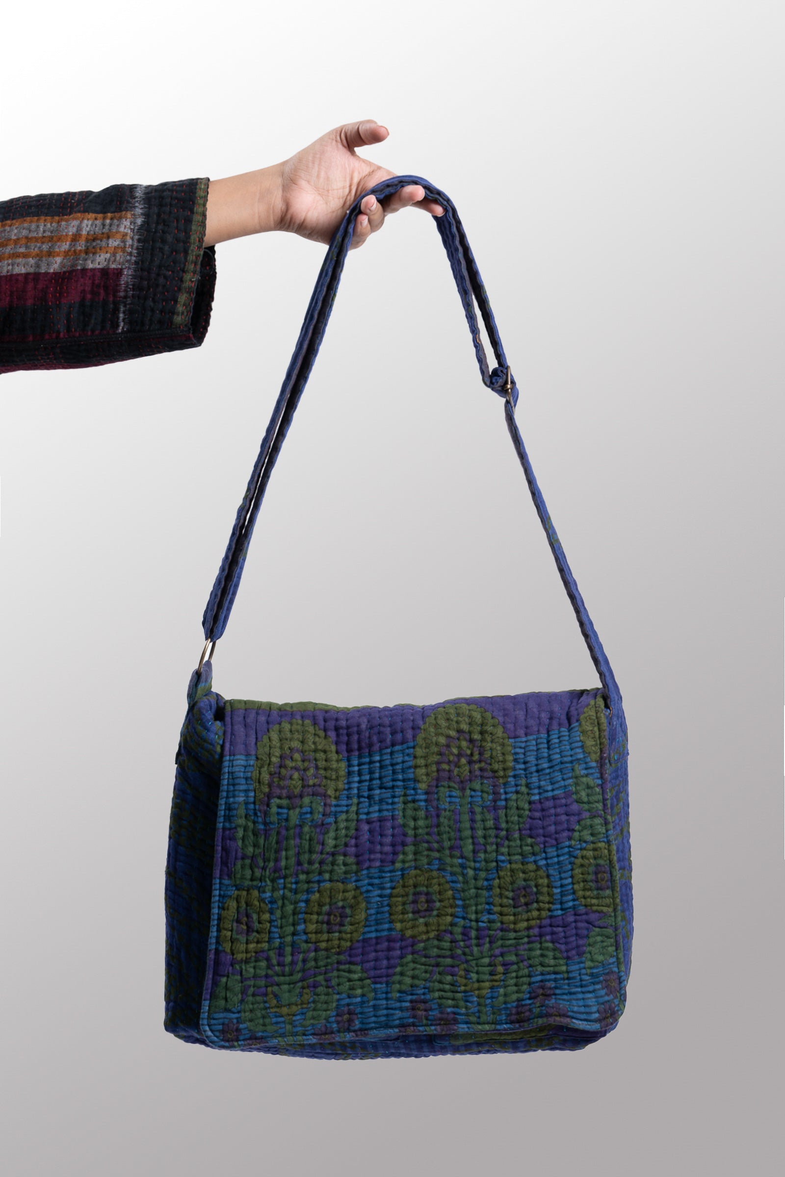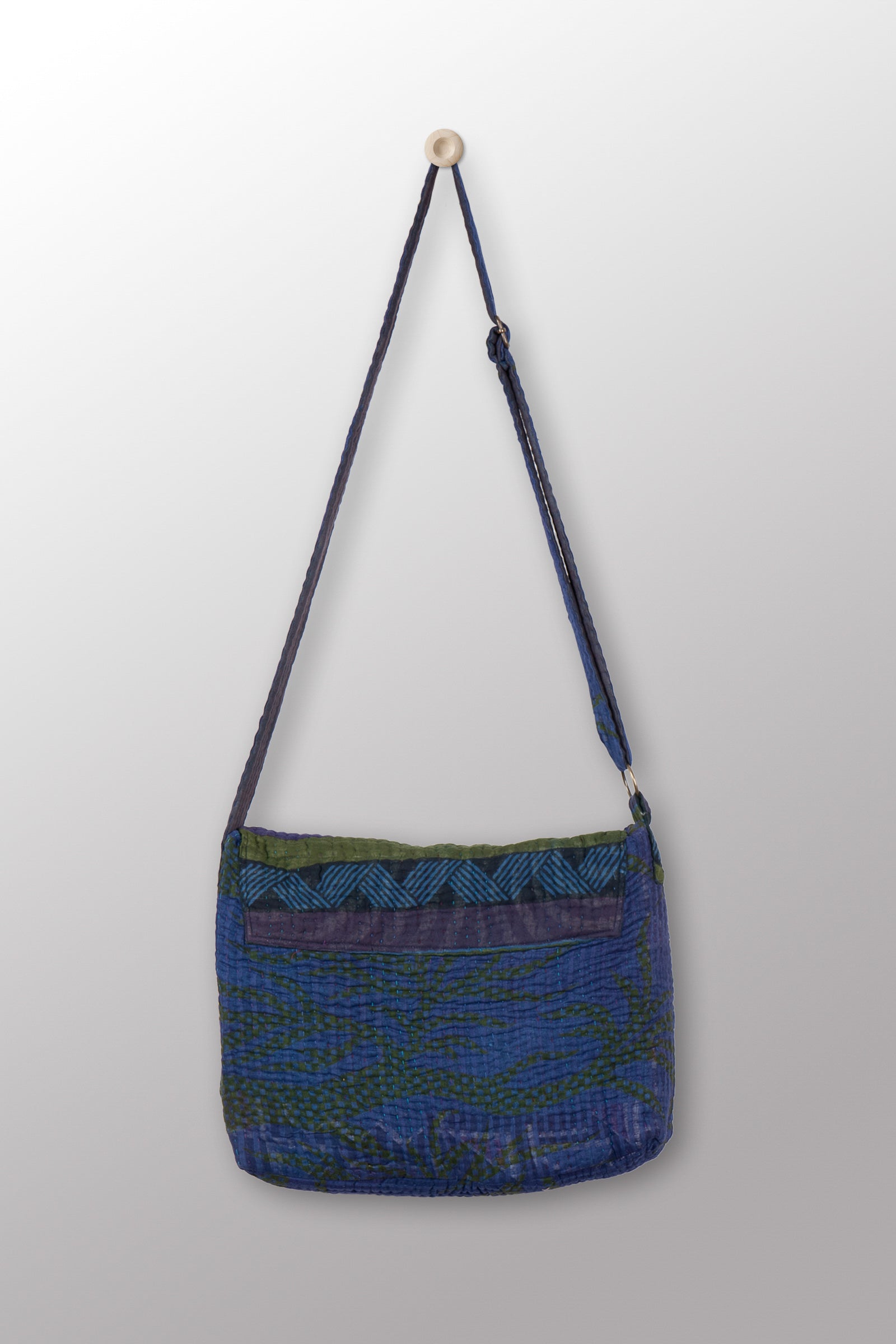 Quilted Over Dye Cotton Kantha Pc Messenger Bag - mm-oq5863-cblu002a -