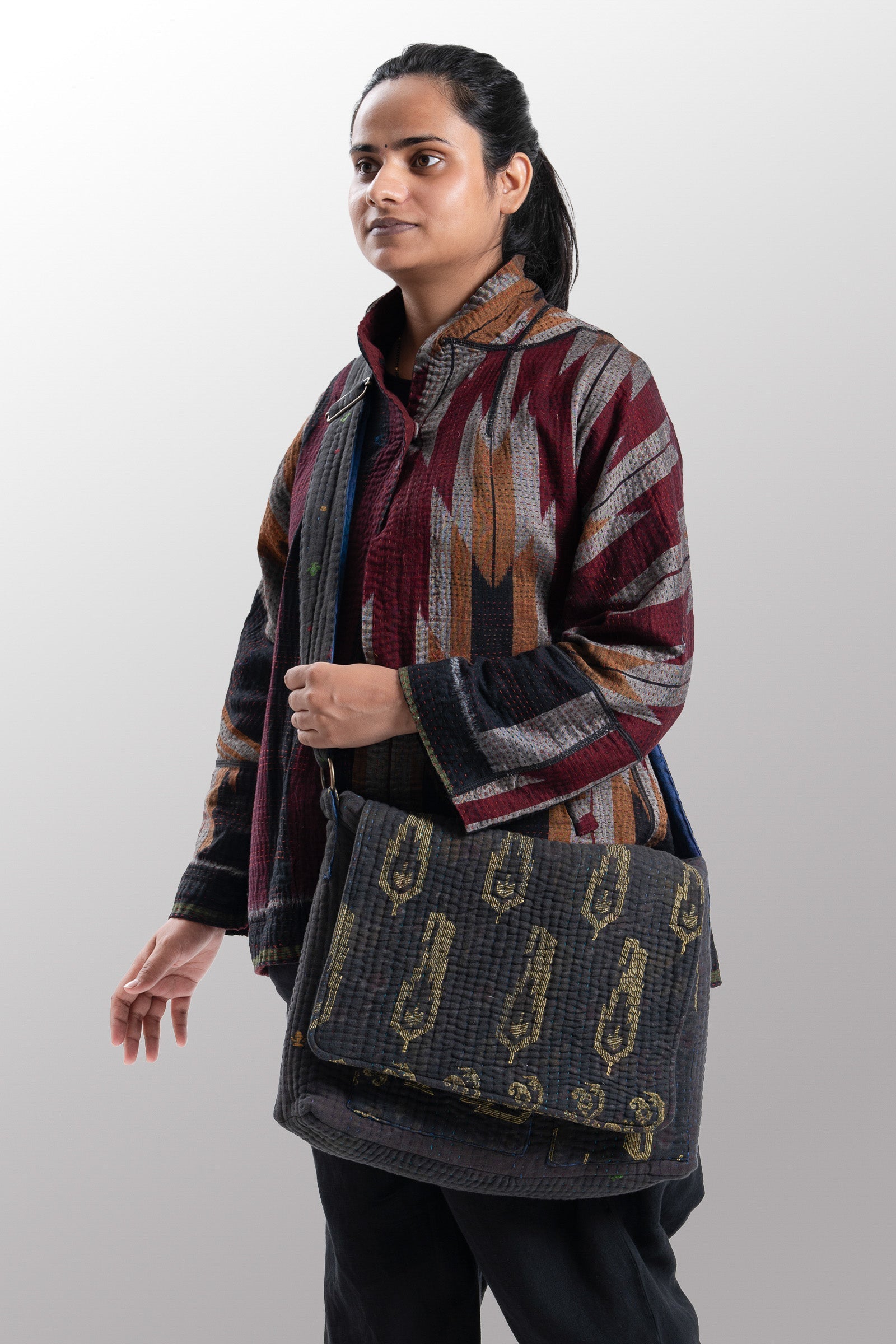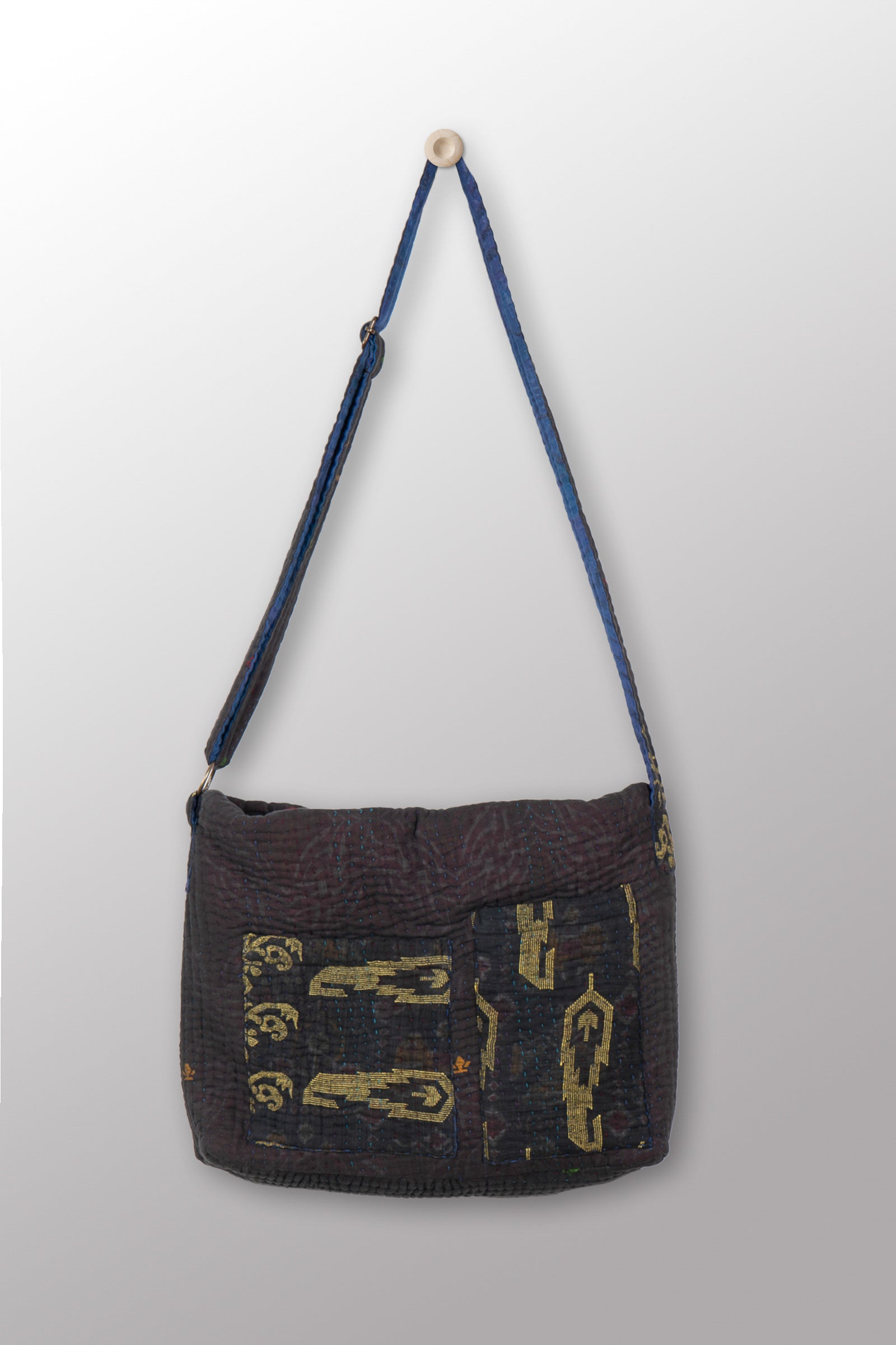 Quilted Over Dye Cotton Kantha Pc Messenger Bag - mm-oq5863-cblu003a -
