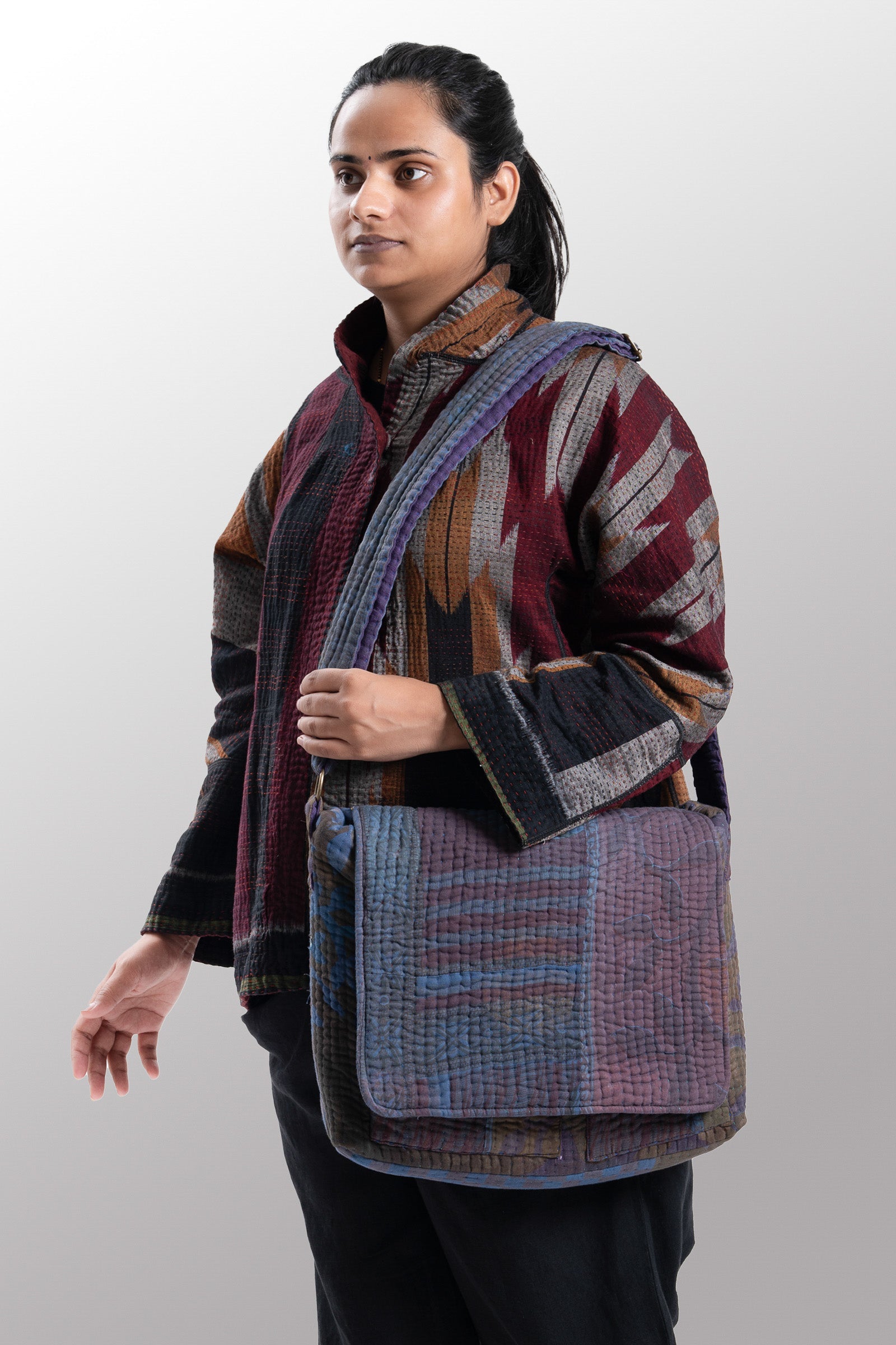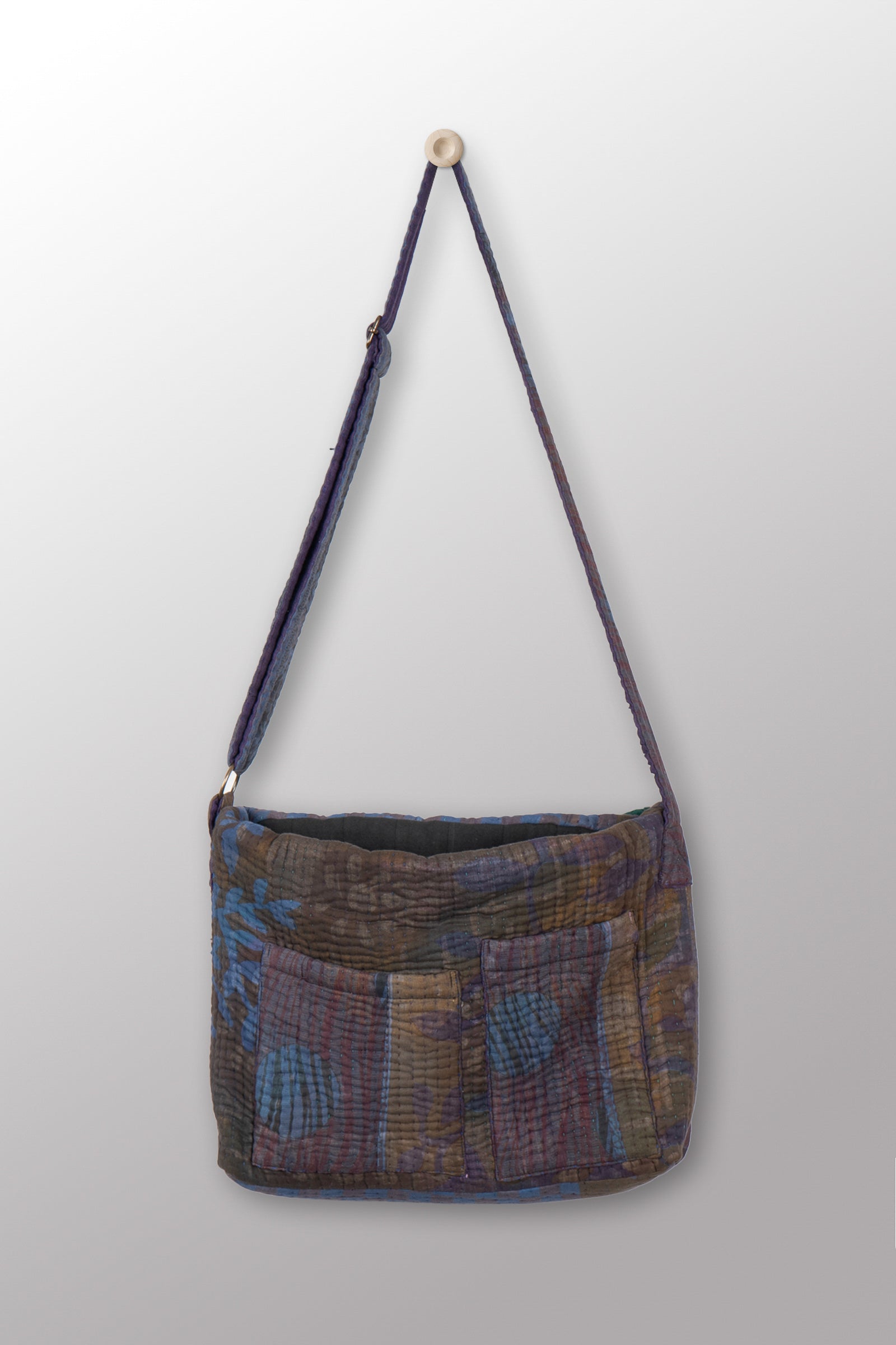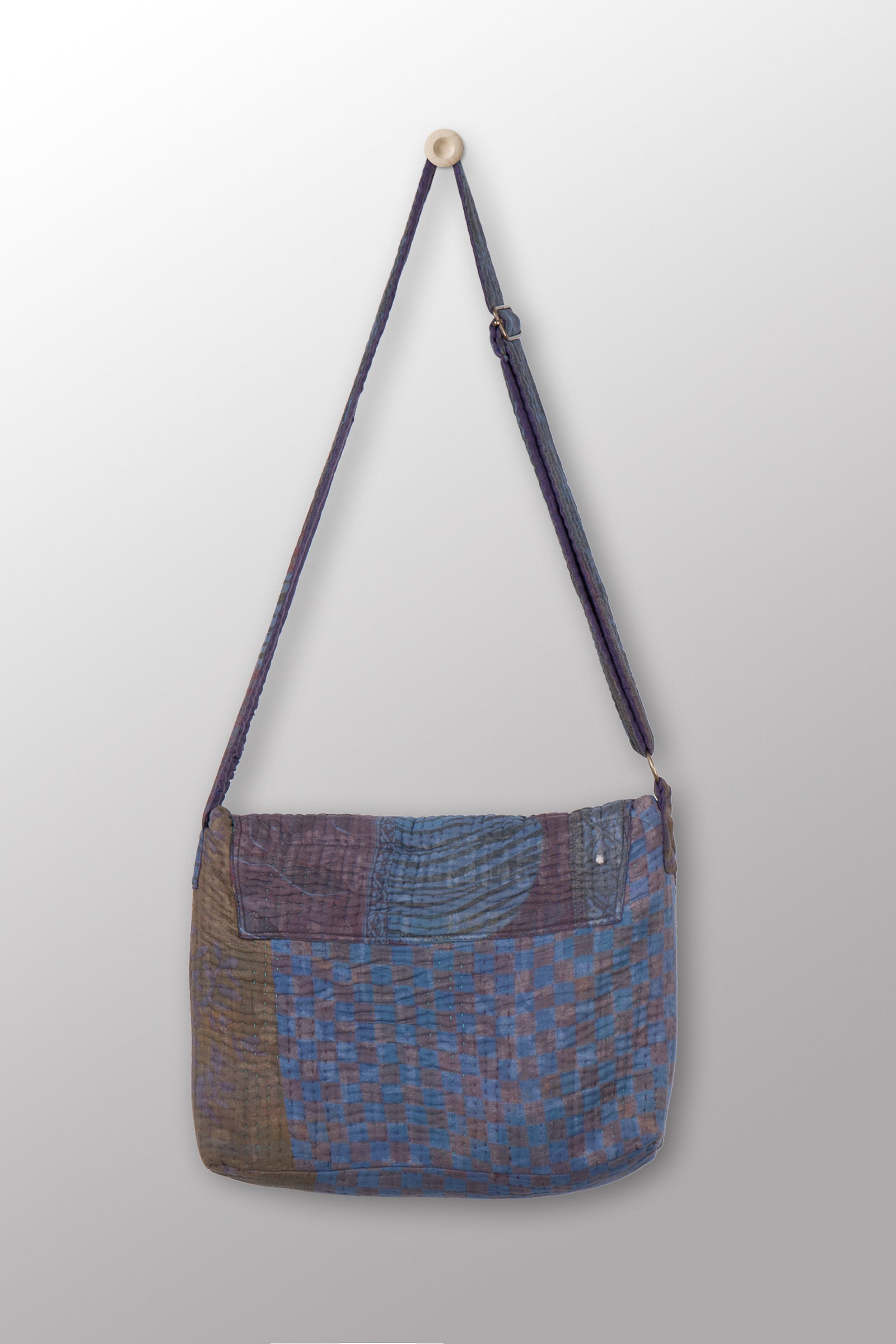 Quilted Over Dye Cotton Kantha Pc Messenger Bag - mm-oq5863-cblu004a -