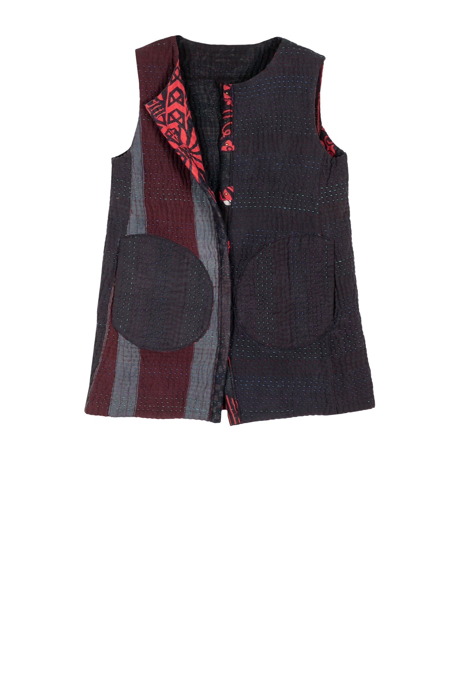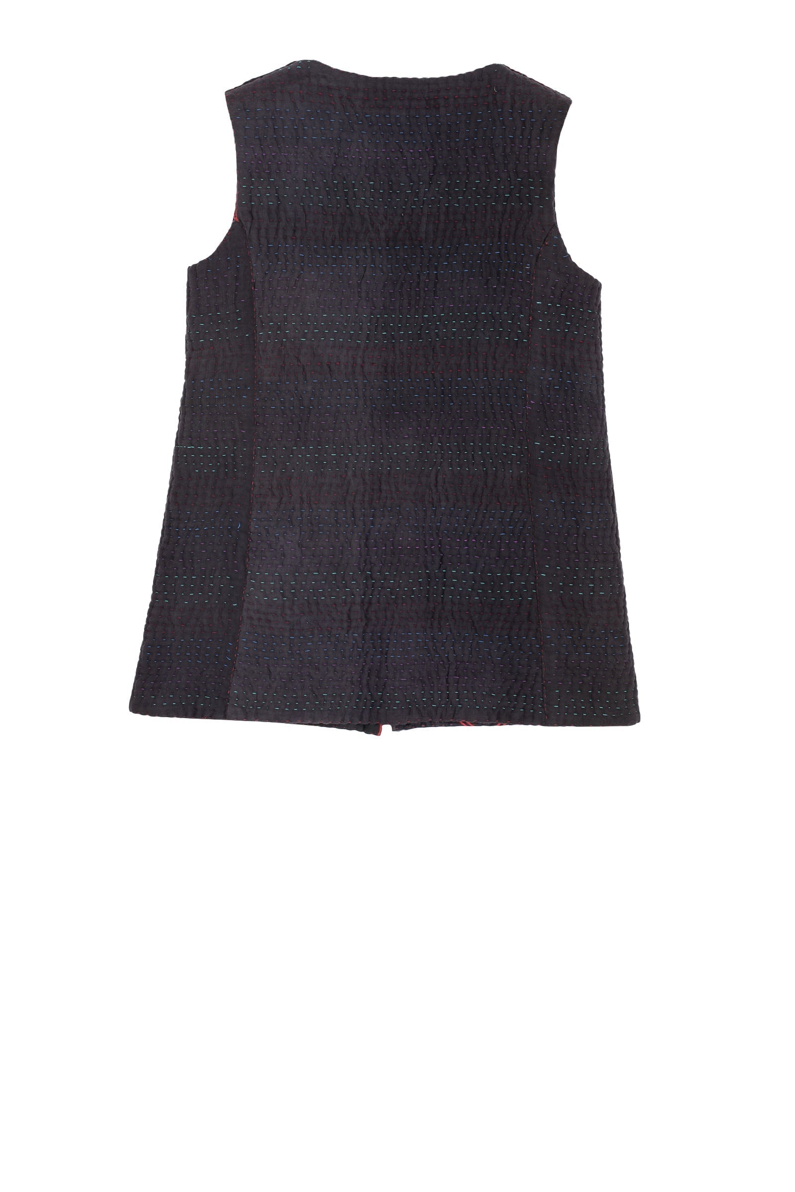 QUILTED VINTAGE COTTON KANTHA CREW NECK FITTED VEST MEDIUM - cq5233-0006m -