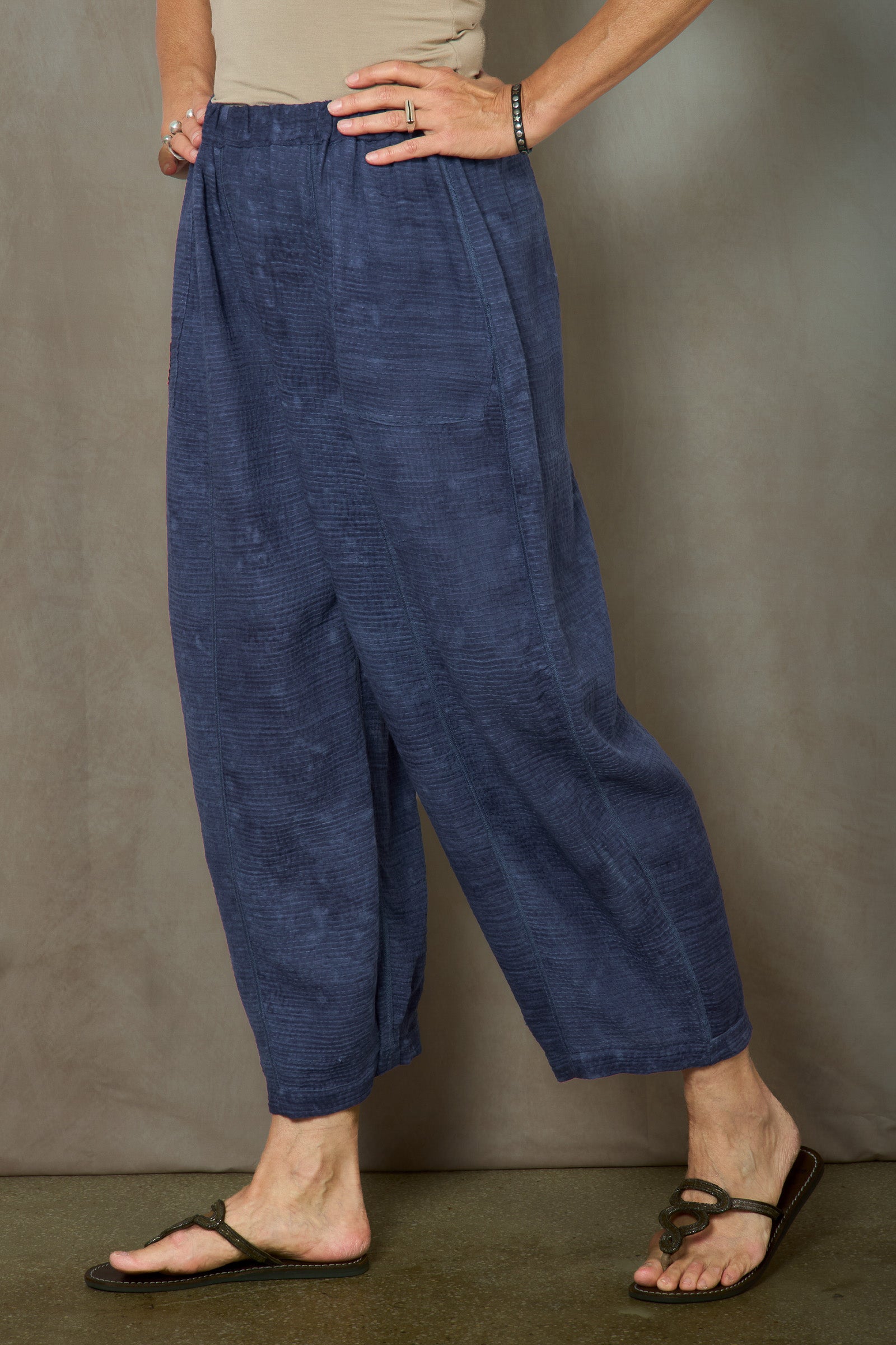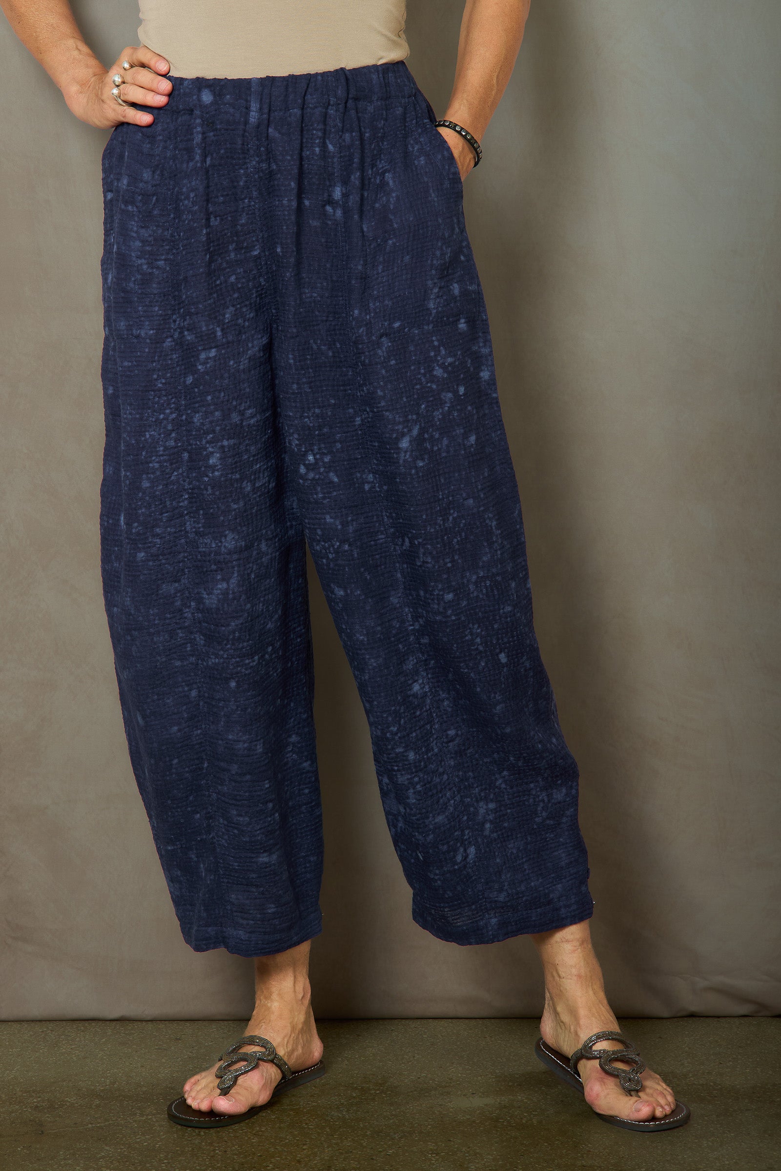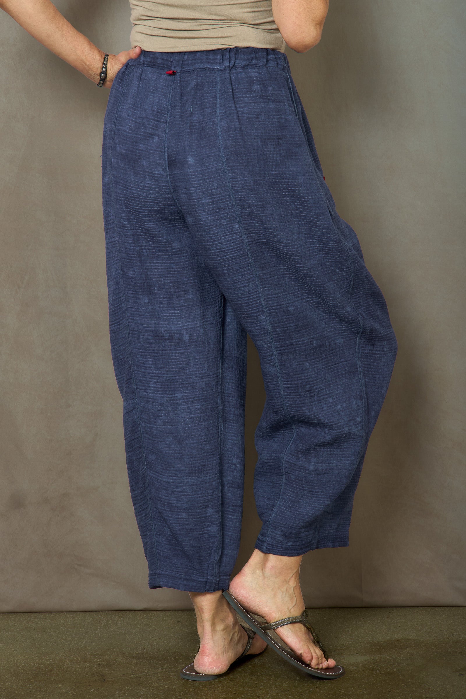 SAND SUN DYE RIPPLE KANTHA BARREL PANTS - rs2641-nvy -