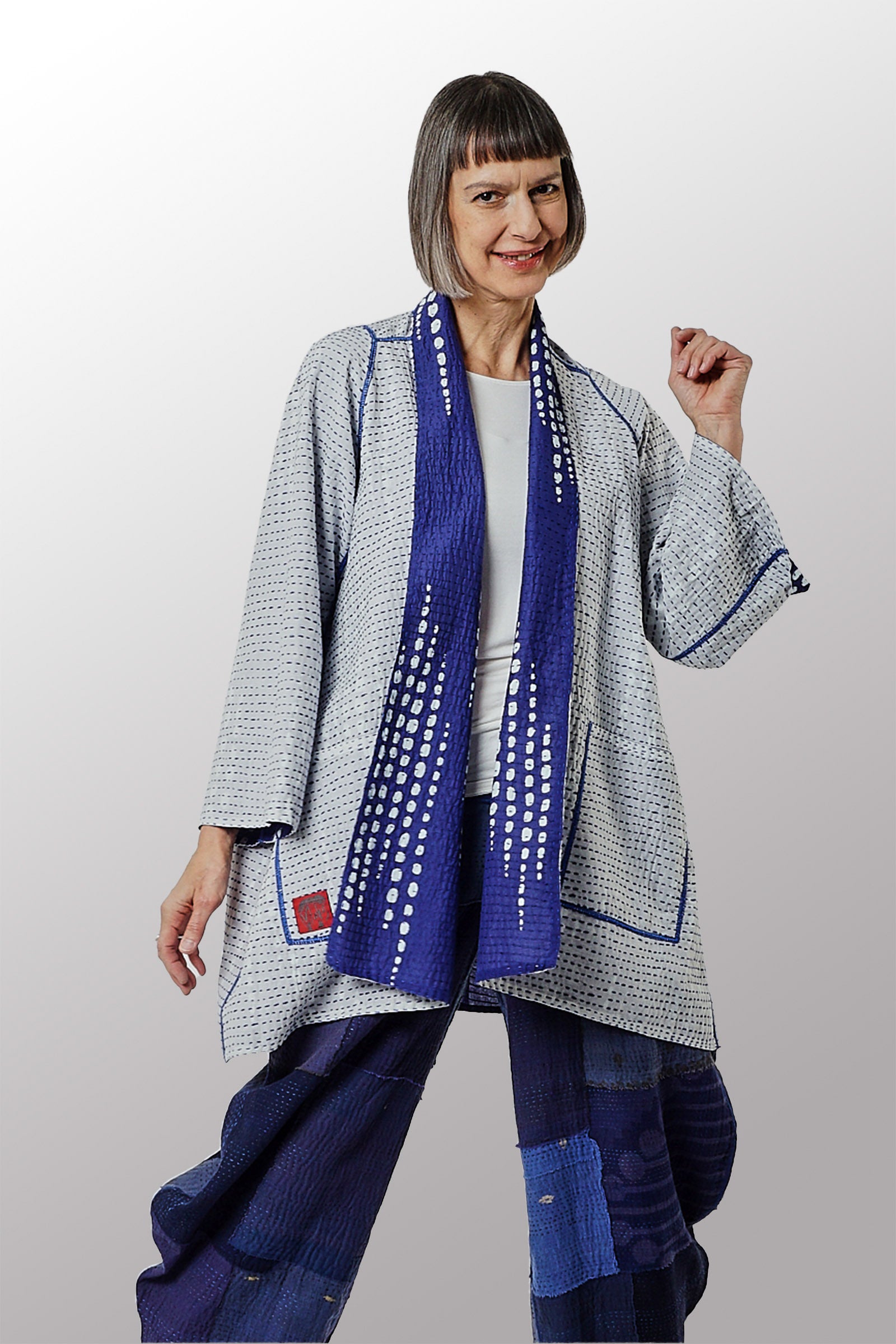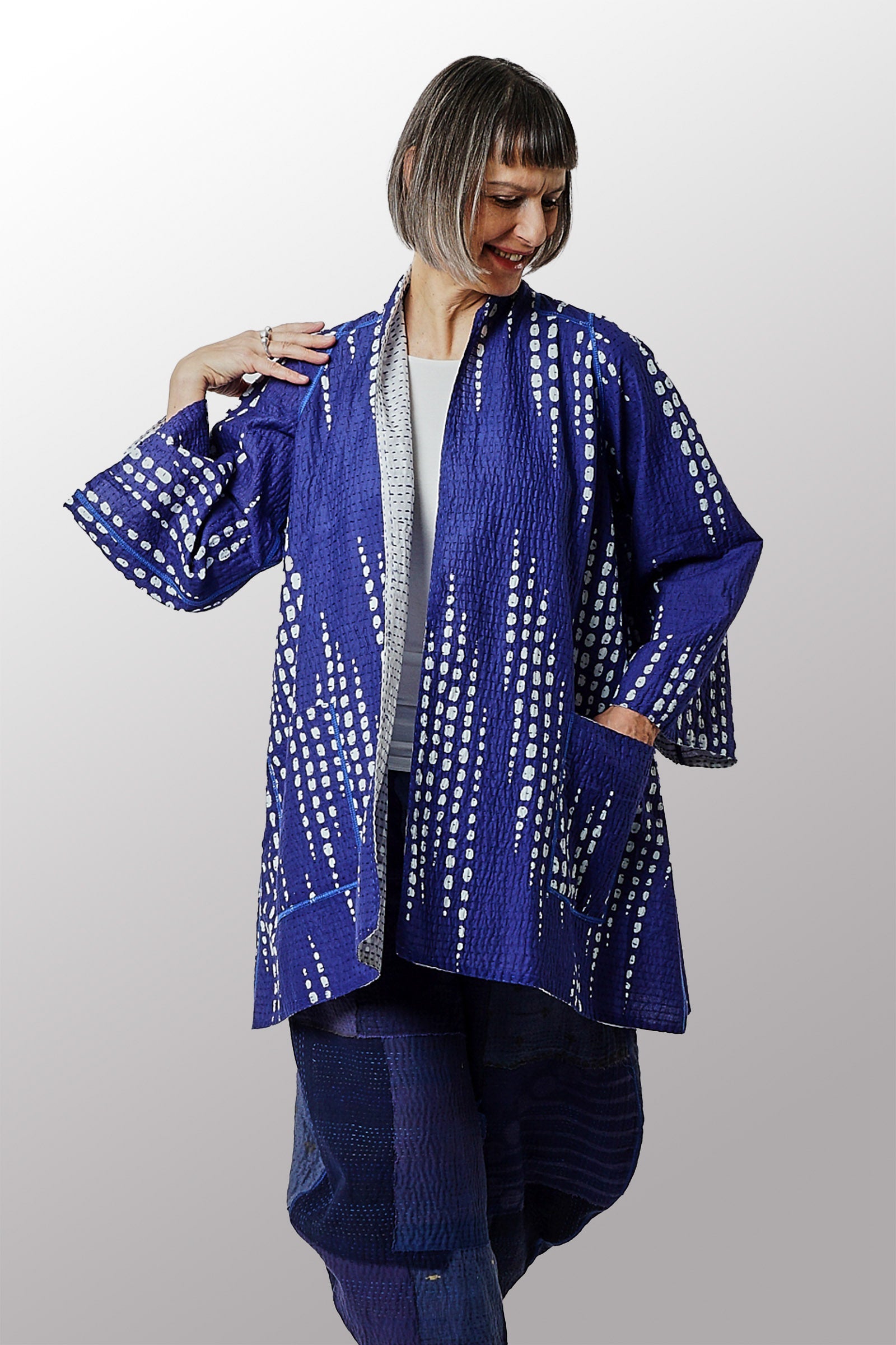 SHIBORI DROP BBK KANTHA A-LINE JKT - sd2003-blu -