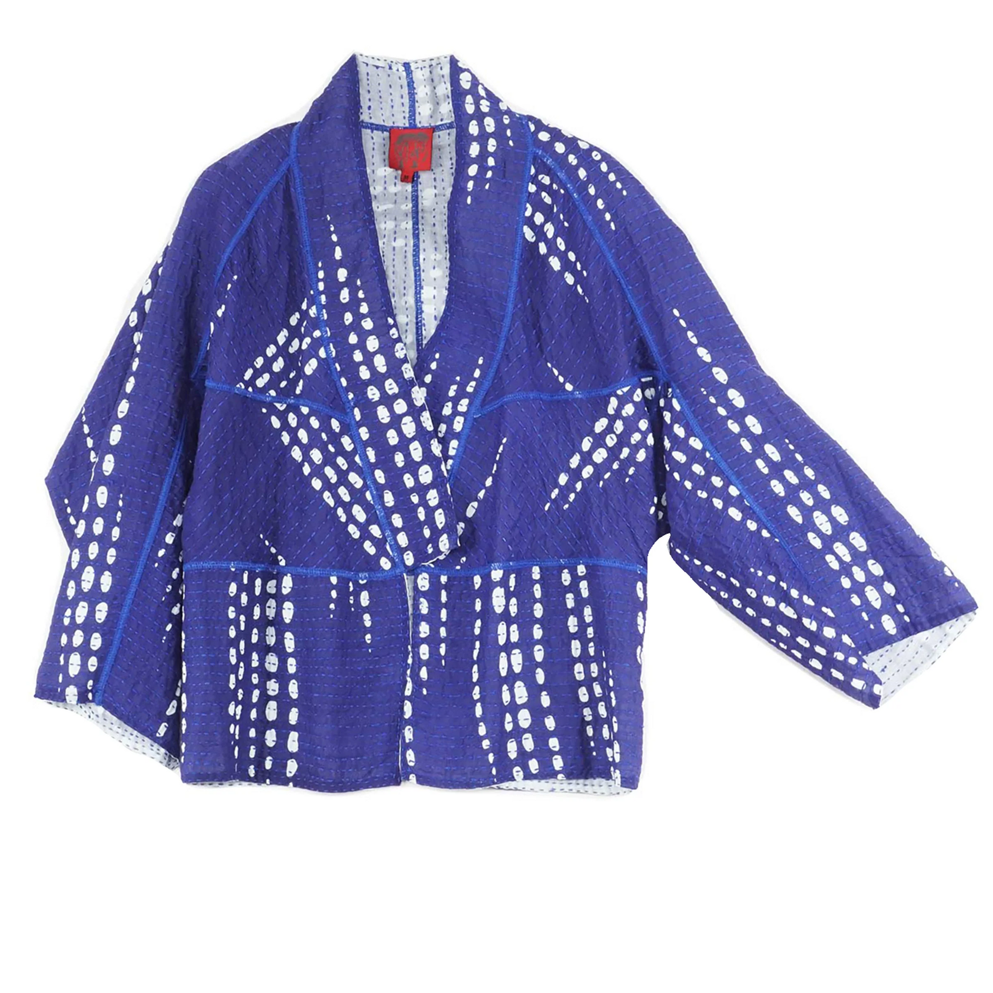 SHIBORI DROP BBK KANTHA DOLMAN SHORT JKT - sd2015-blu -