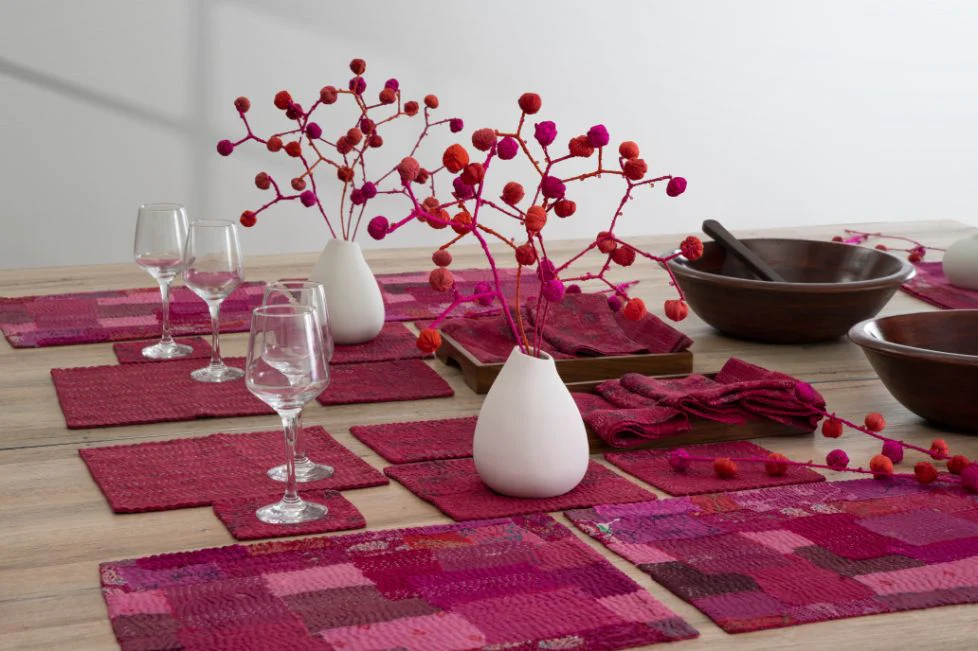 Silk & Cotton Kantha Stem Twigs -Pink -