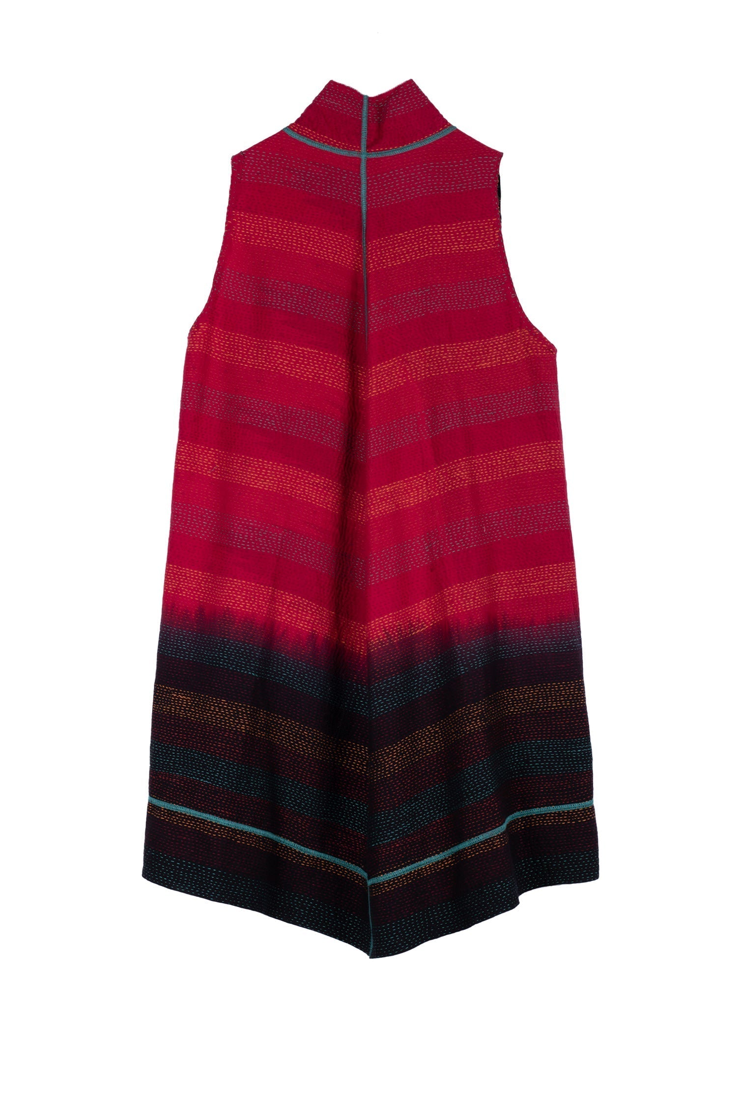 SILK COTTON OMBRE PRINT KANTHA A-LINE VEST - os2203-red -