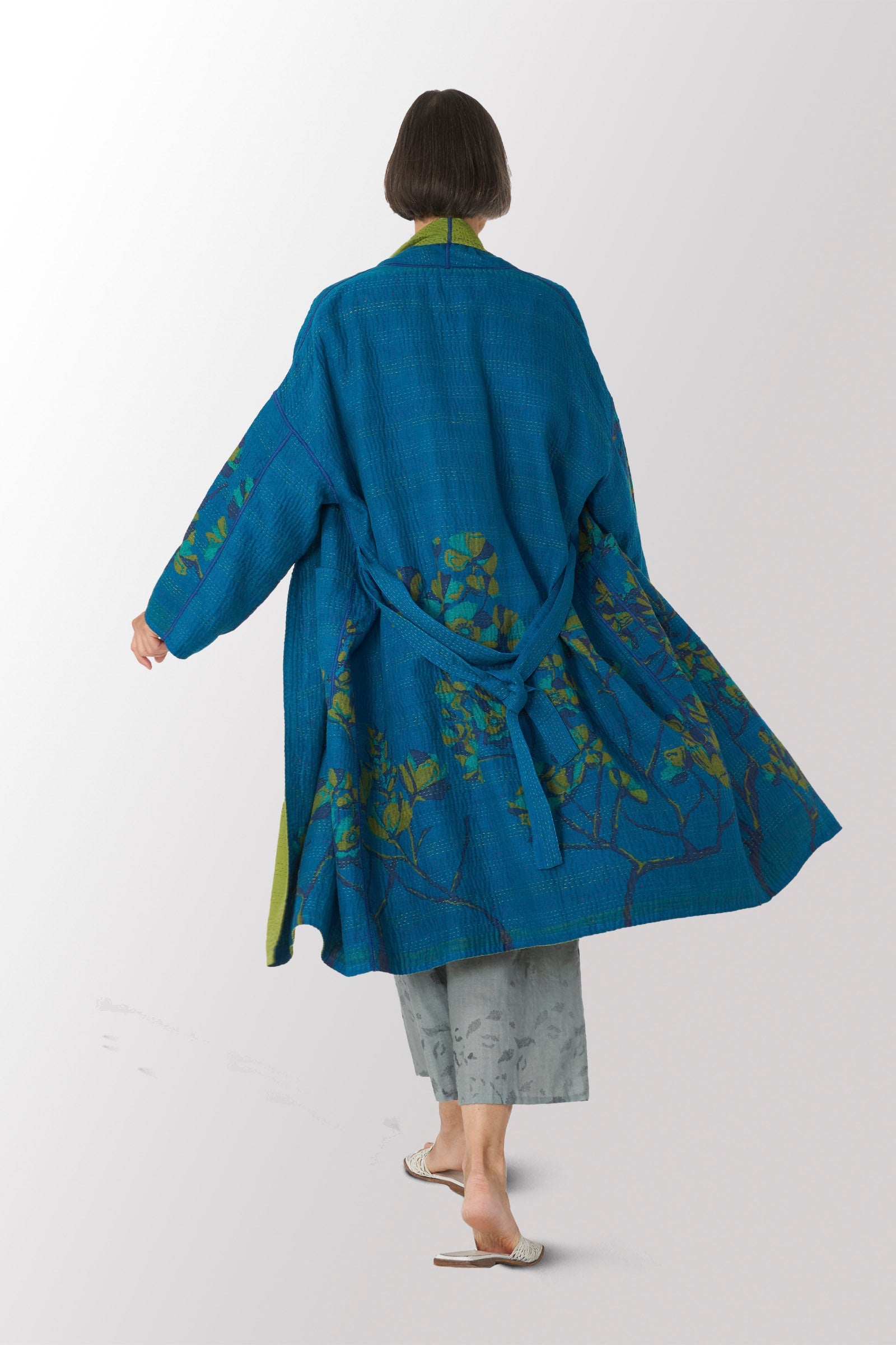 4 Layer Vintage Saris with Hand Stitches on Entire Garment - Reversible