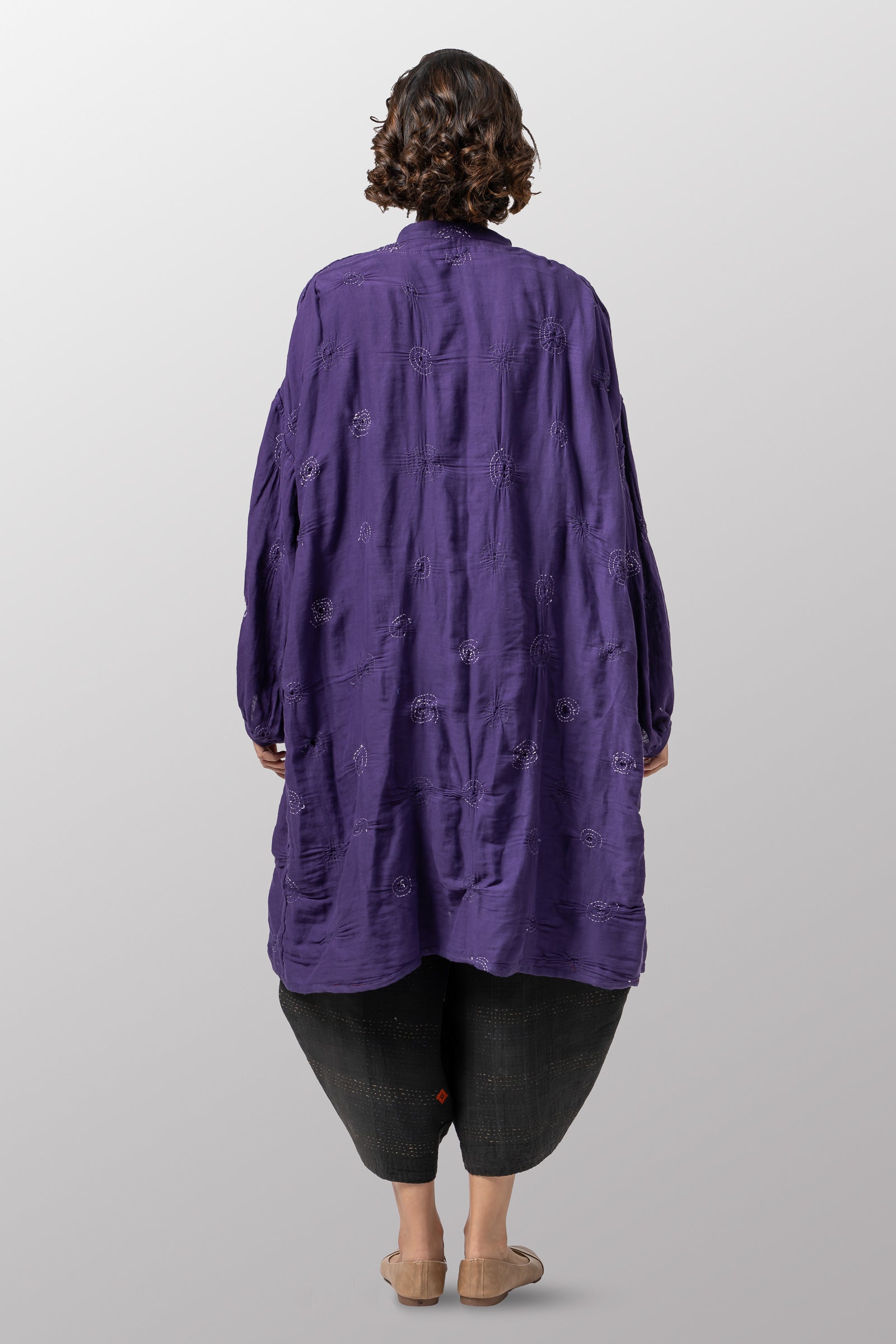 SPIRAL KANTHA BAND COLLAR OVERSIZED SHIRT - sl2599-prp -