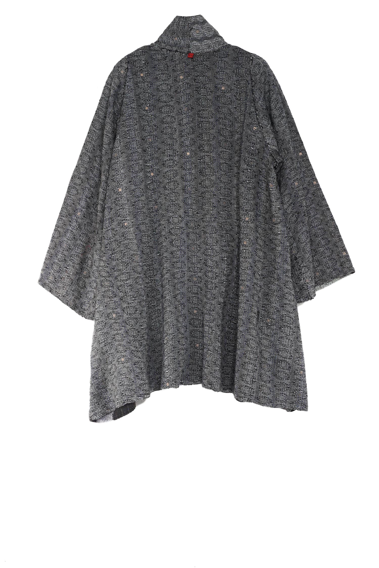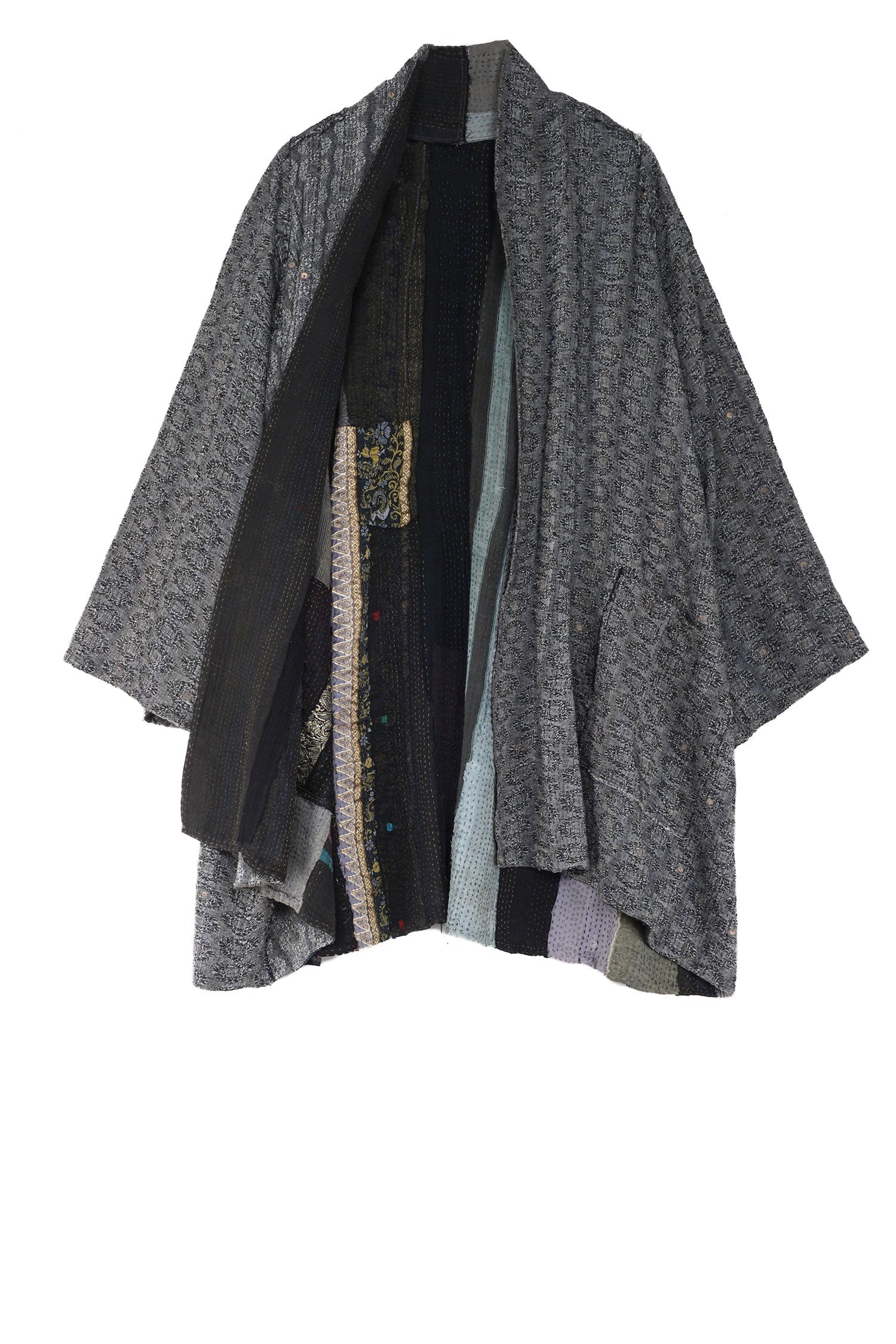 STRIPE FRAYED & HANDWOVEN KANTHA A-LINE JKT - ft2003-blk -