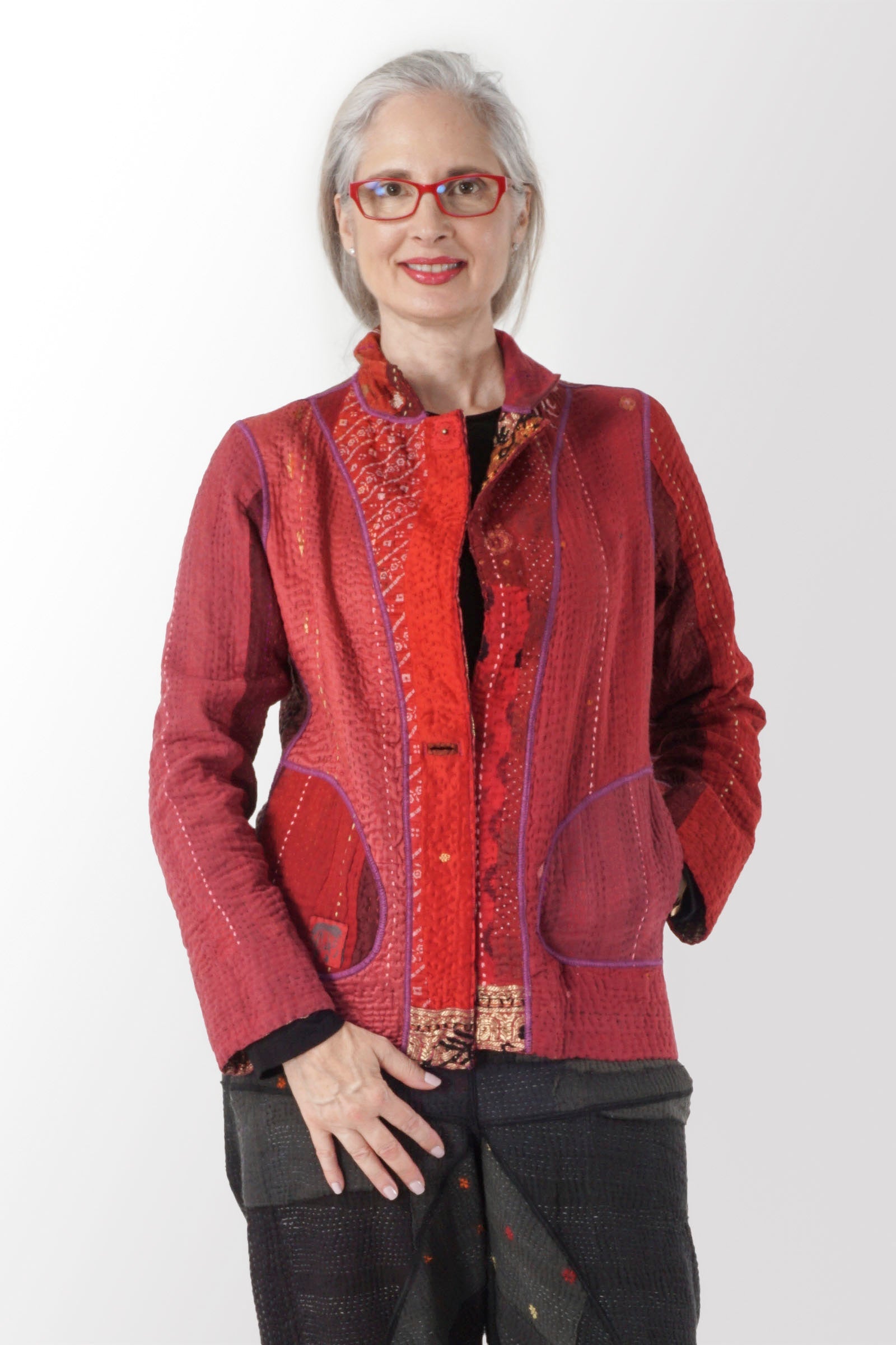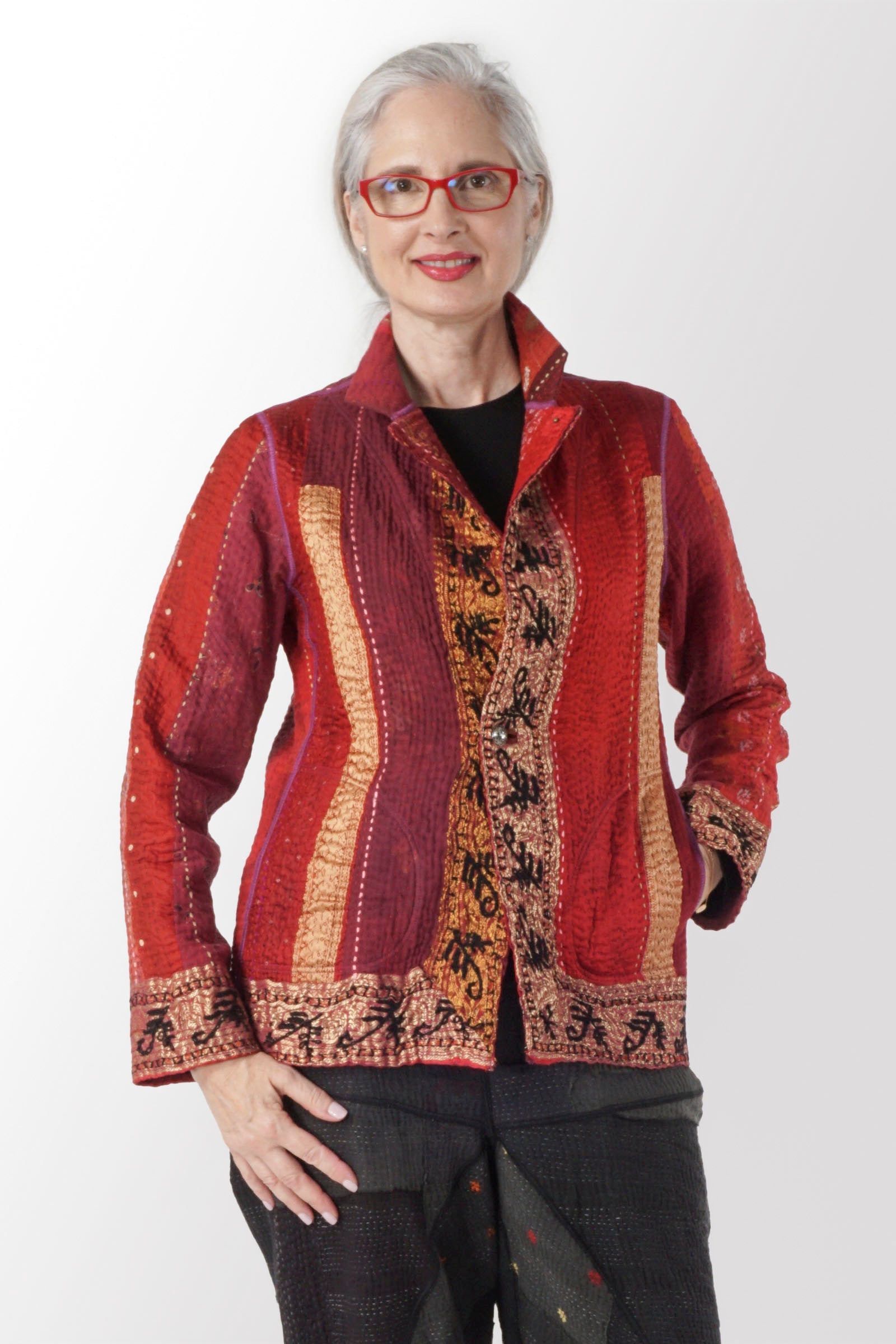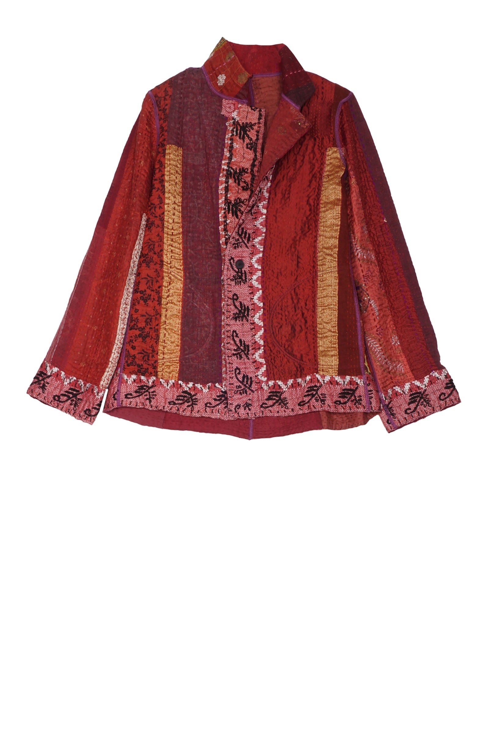 STRIPE RALLIS KANTHA SIMPLE JKT - pr4022-red -