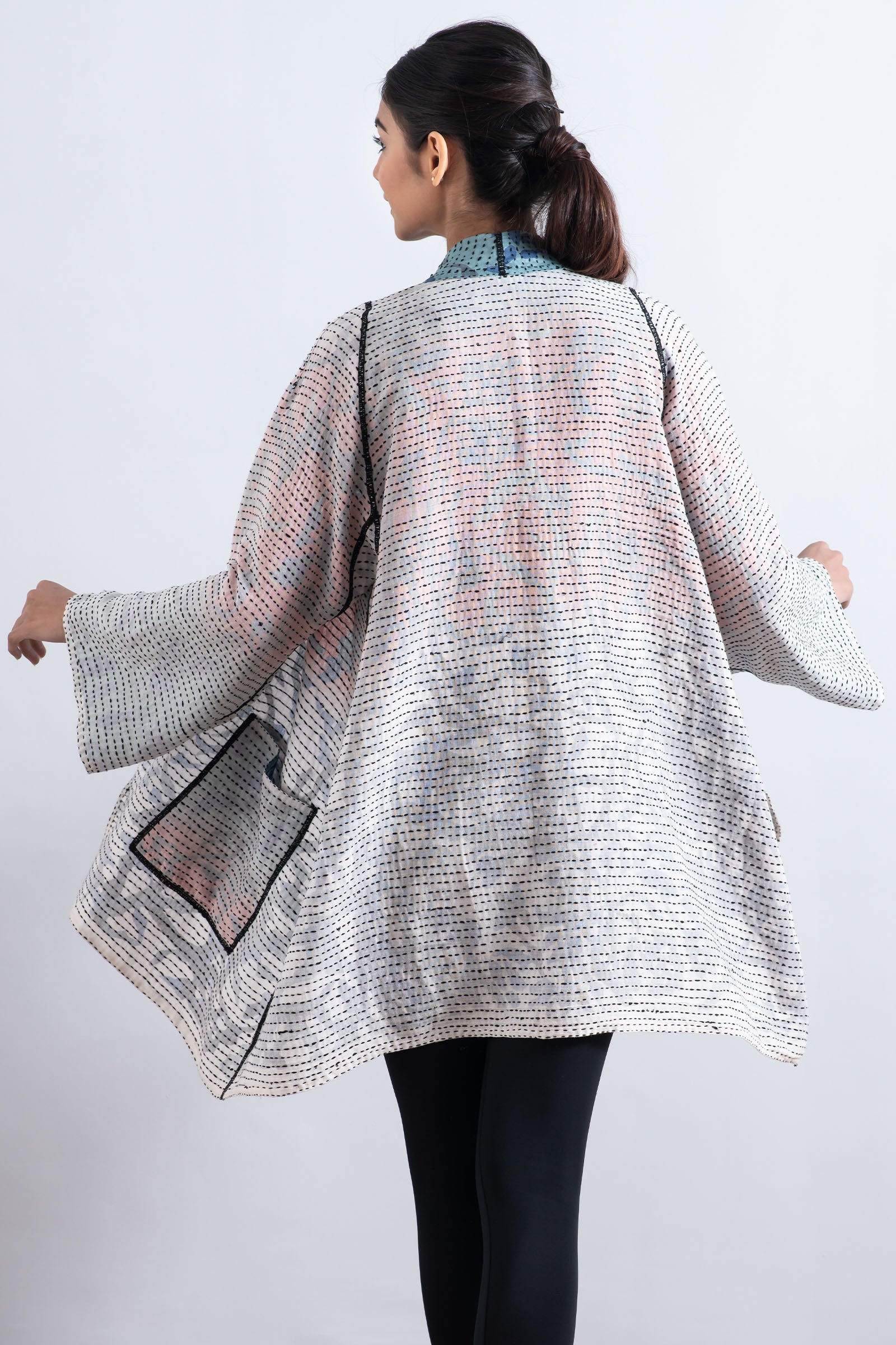 SUMMER BREEZE PRINT KANTHA A-LINE JKT - sz2003-blu -