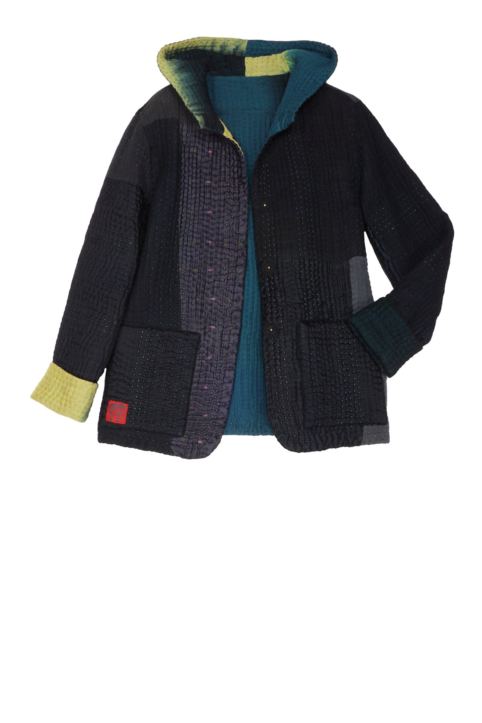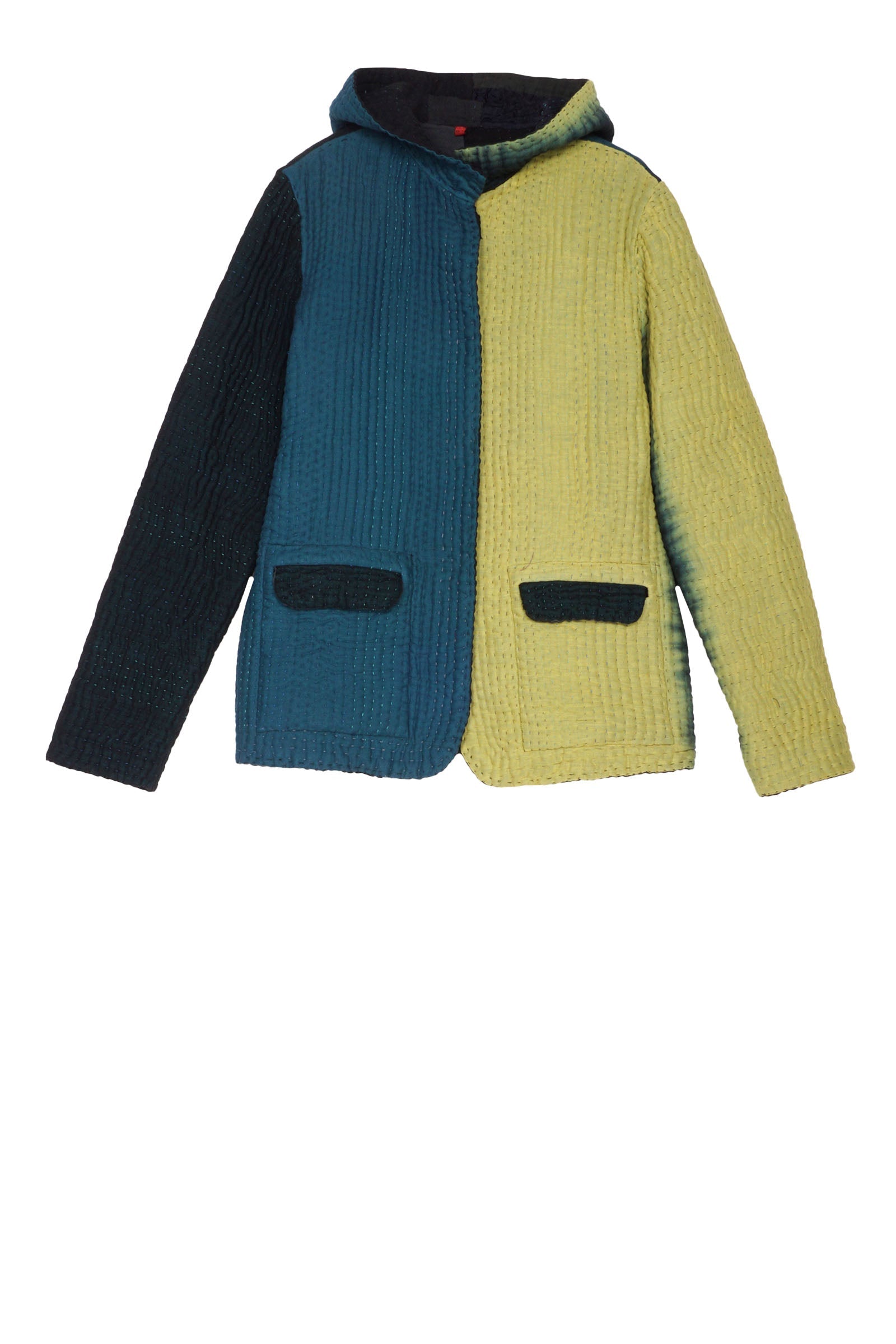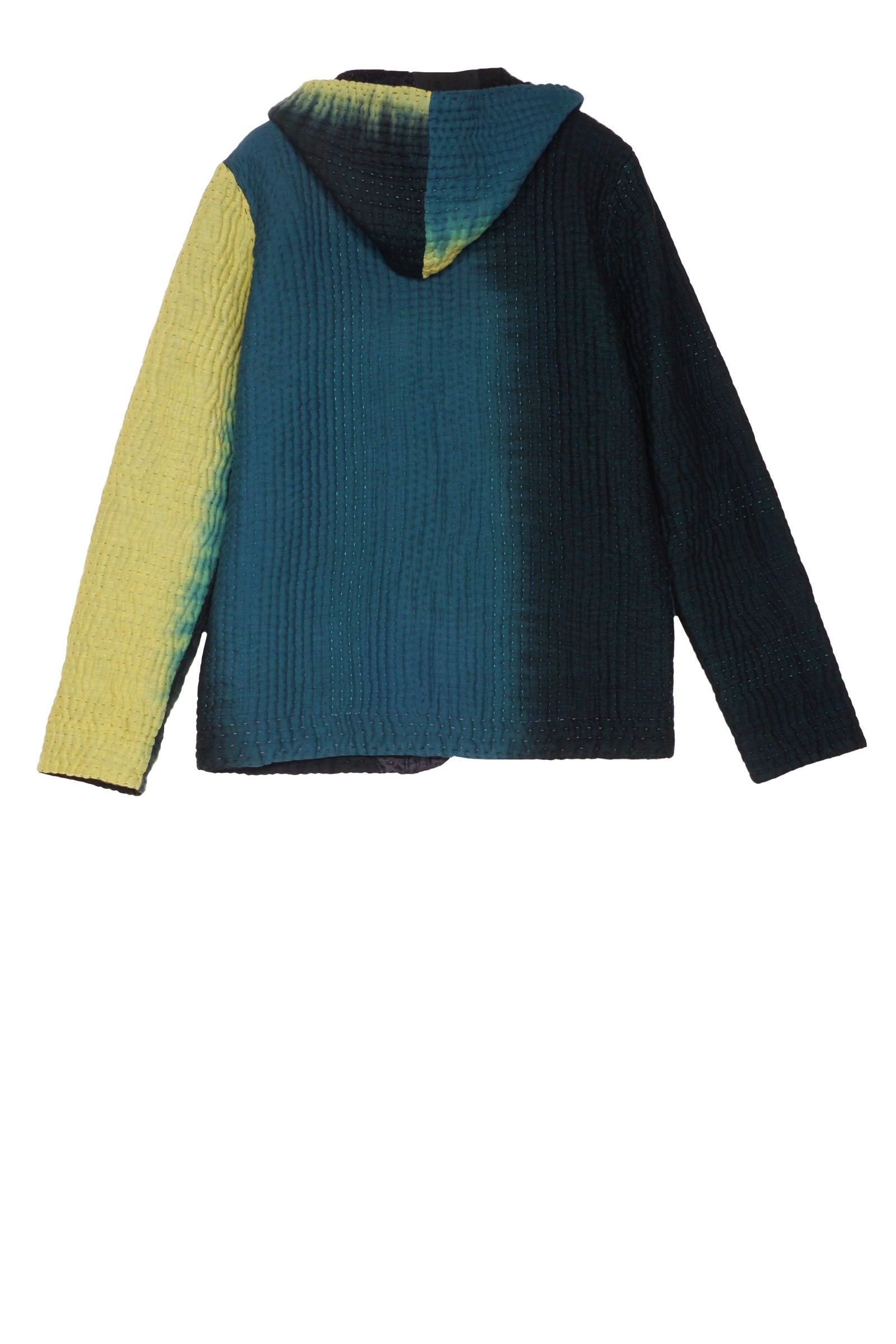 TEAL OMBRE AND PATCH KANTHA MENS HOODIE - up6074-blk -