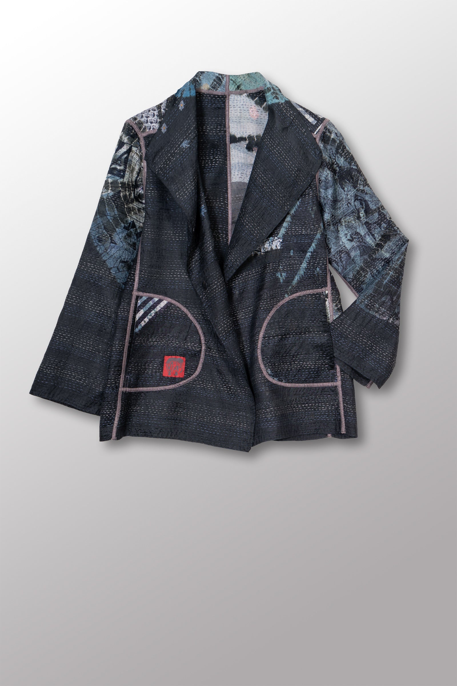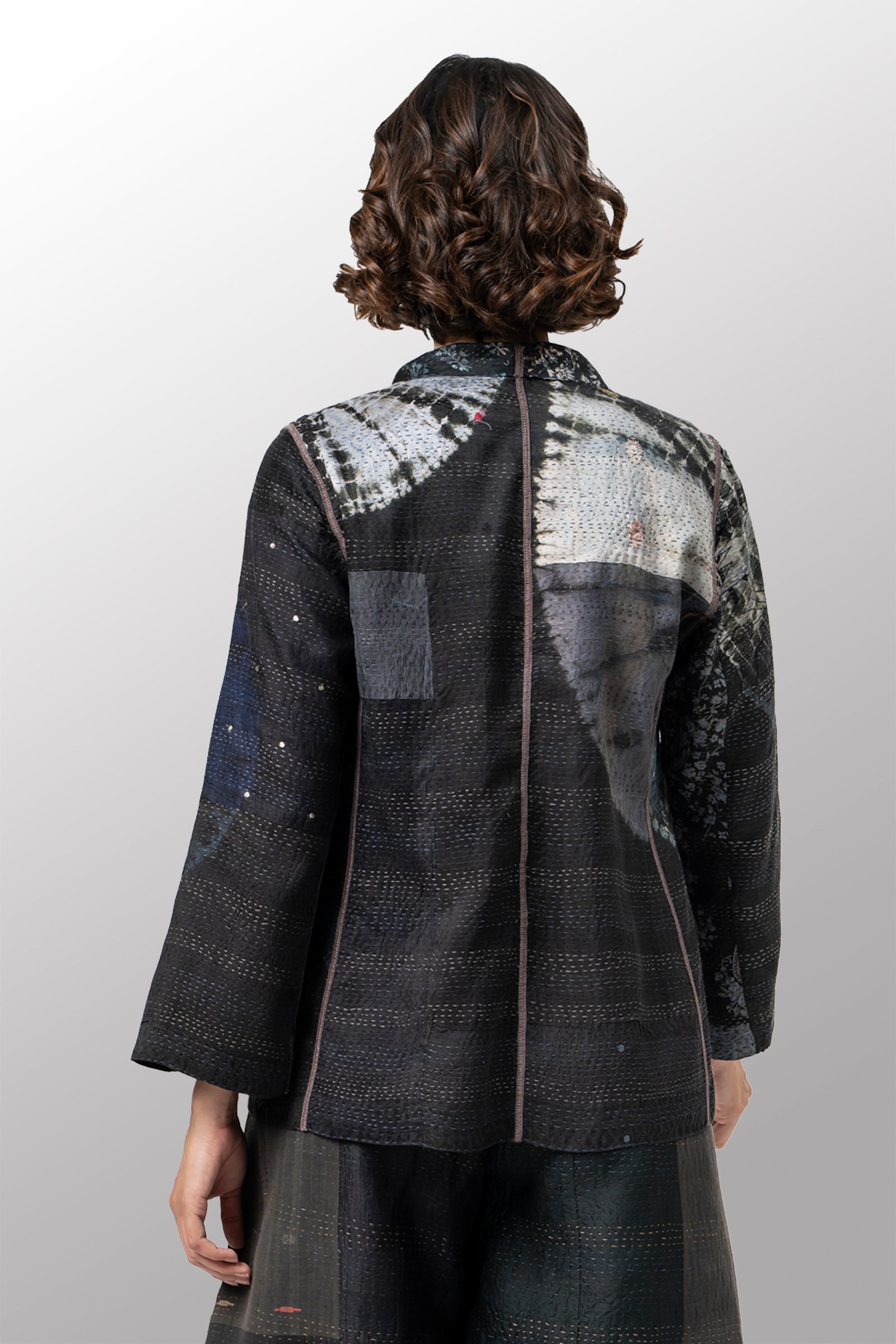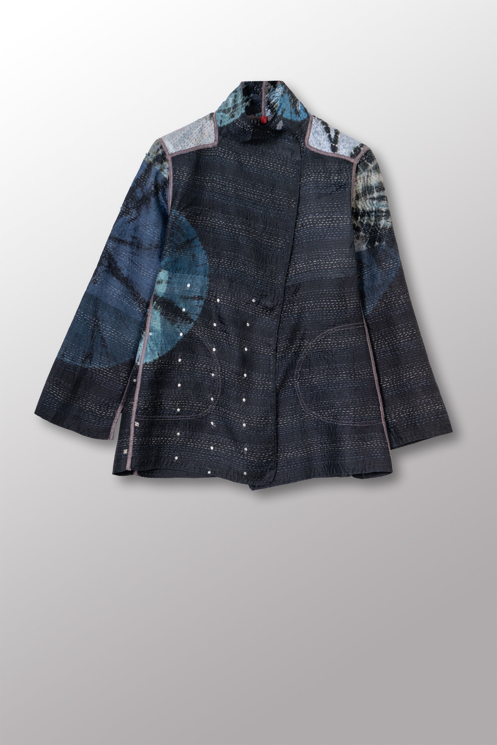TIE DYE CIRCLE SHIBORI KANTHA SHORT JACKET - td2007-blk -
