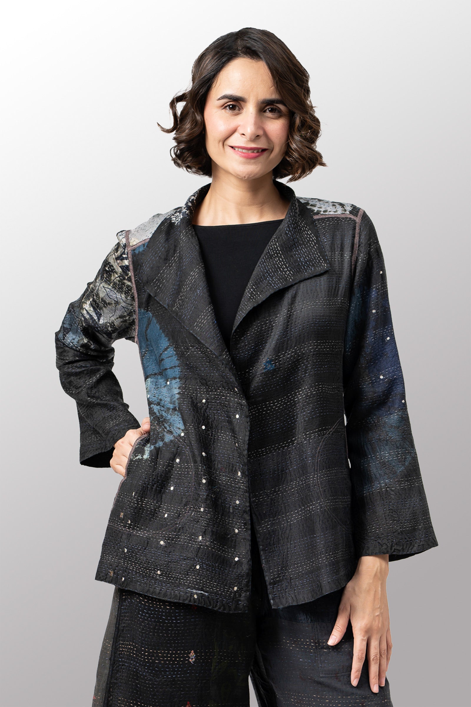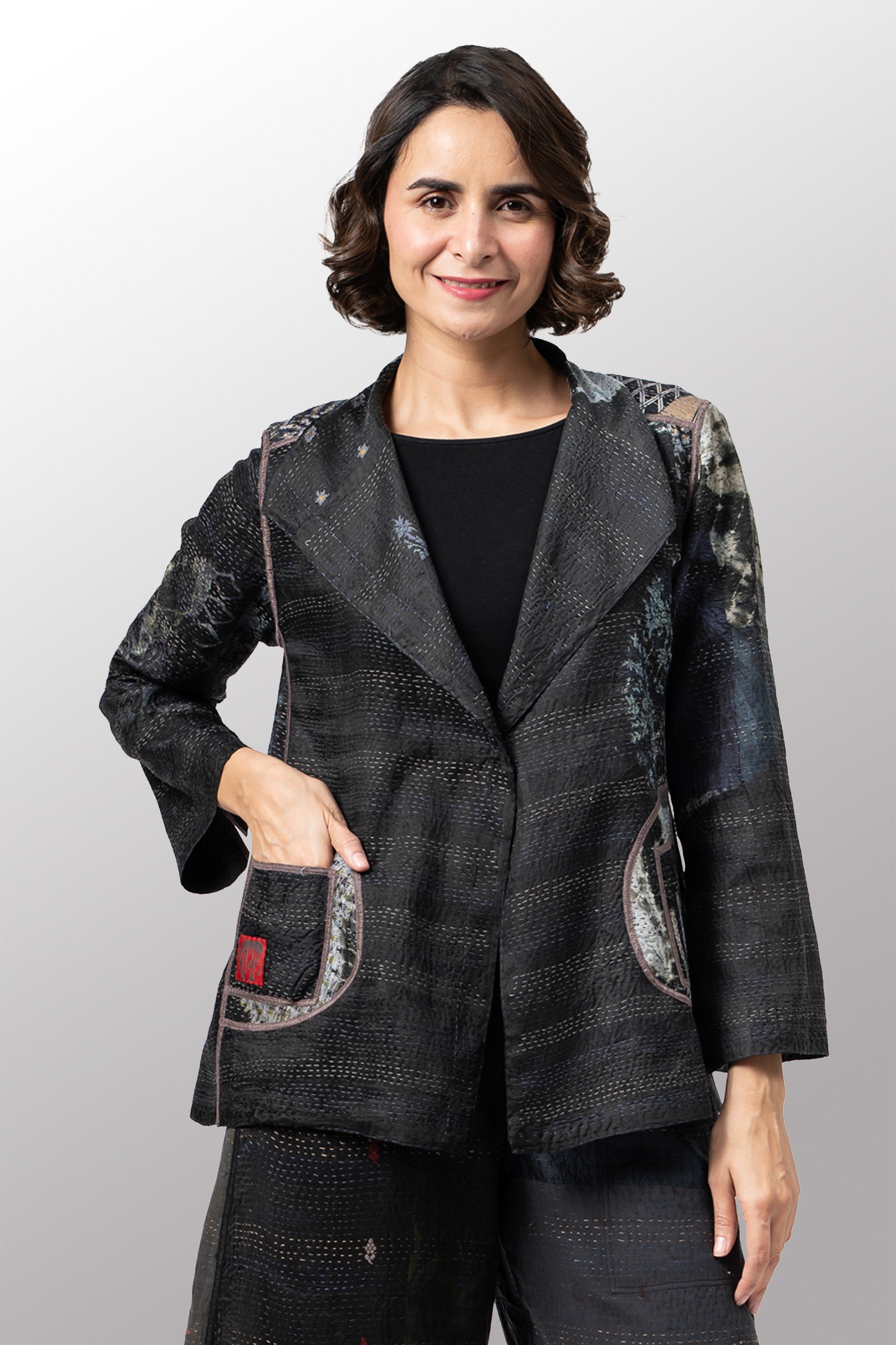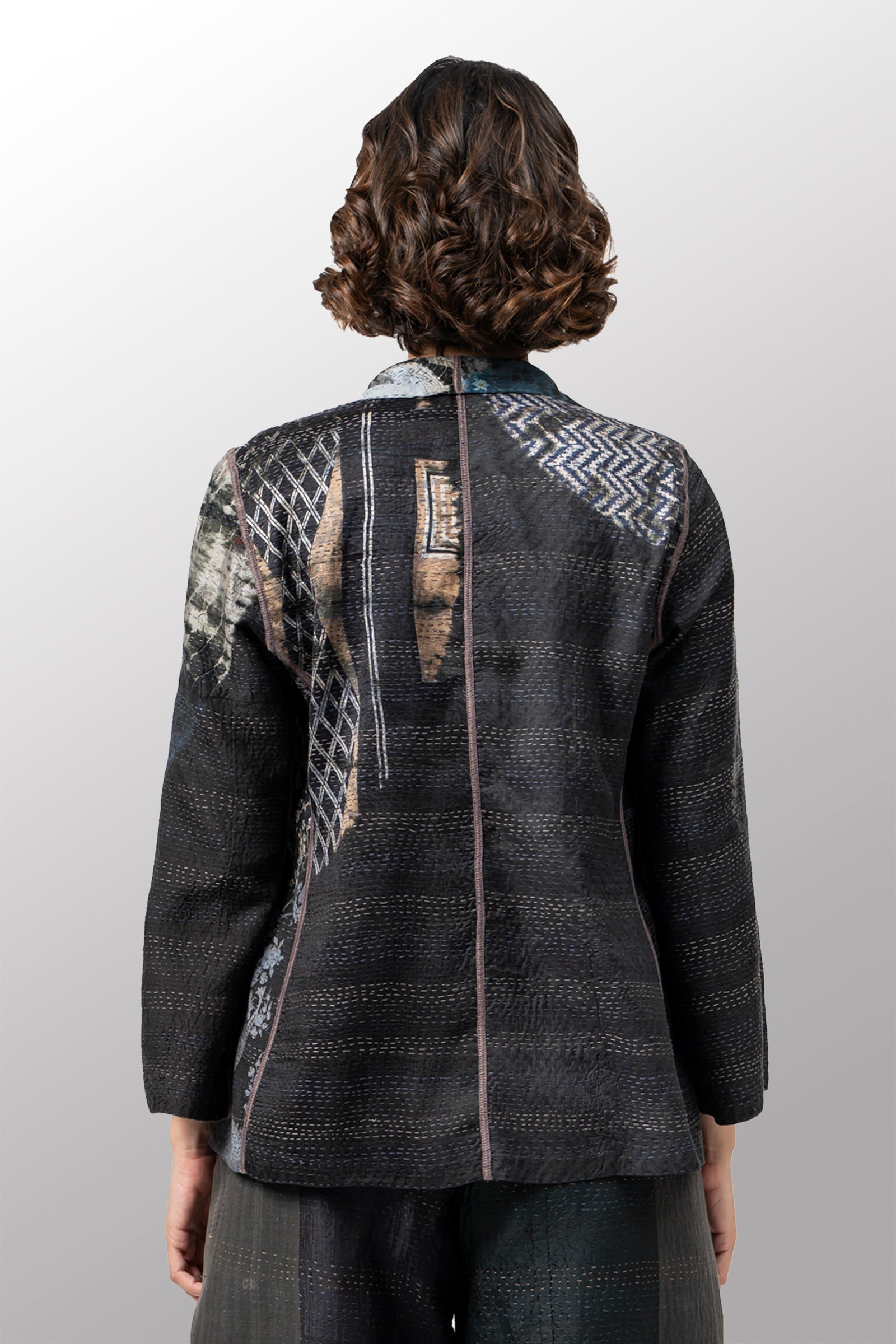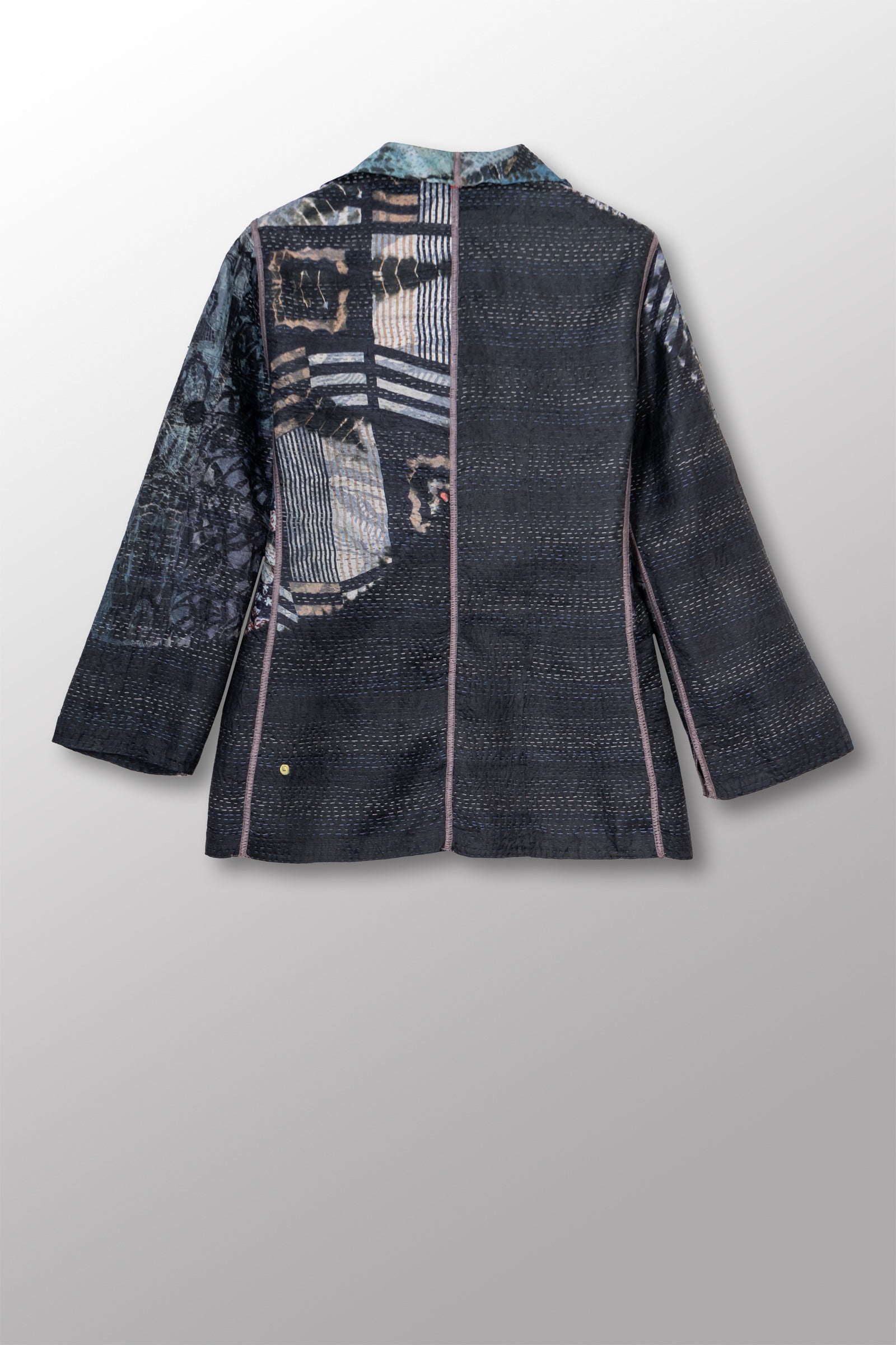 TIE DYE CIRCLE SHIBORI KANTHA SHORT JACKET - td2007-blk -