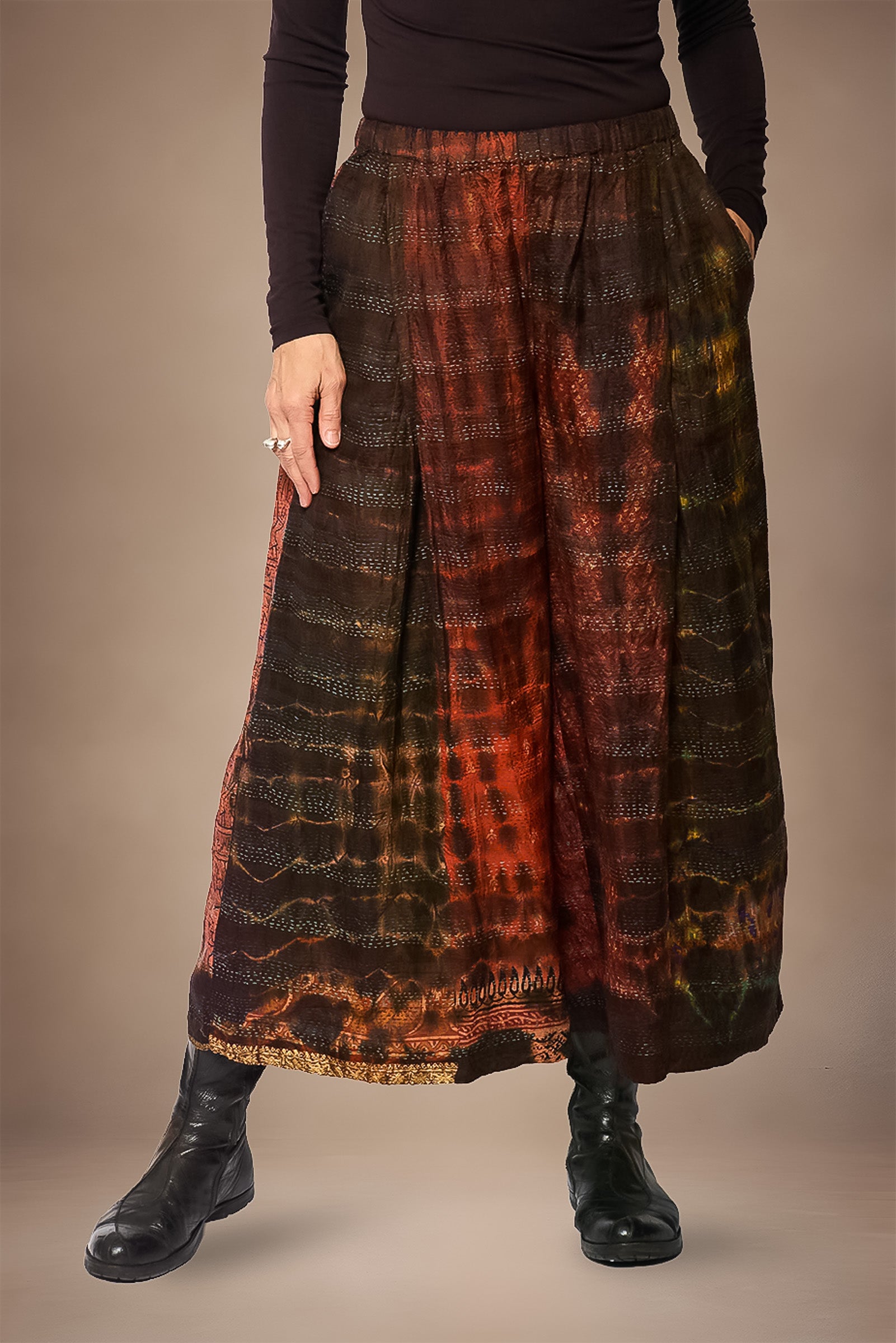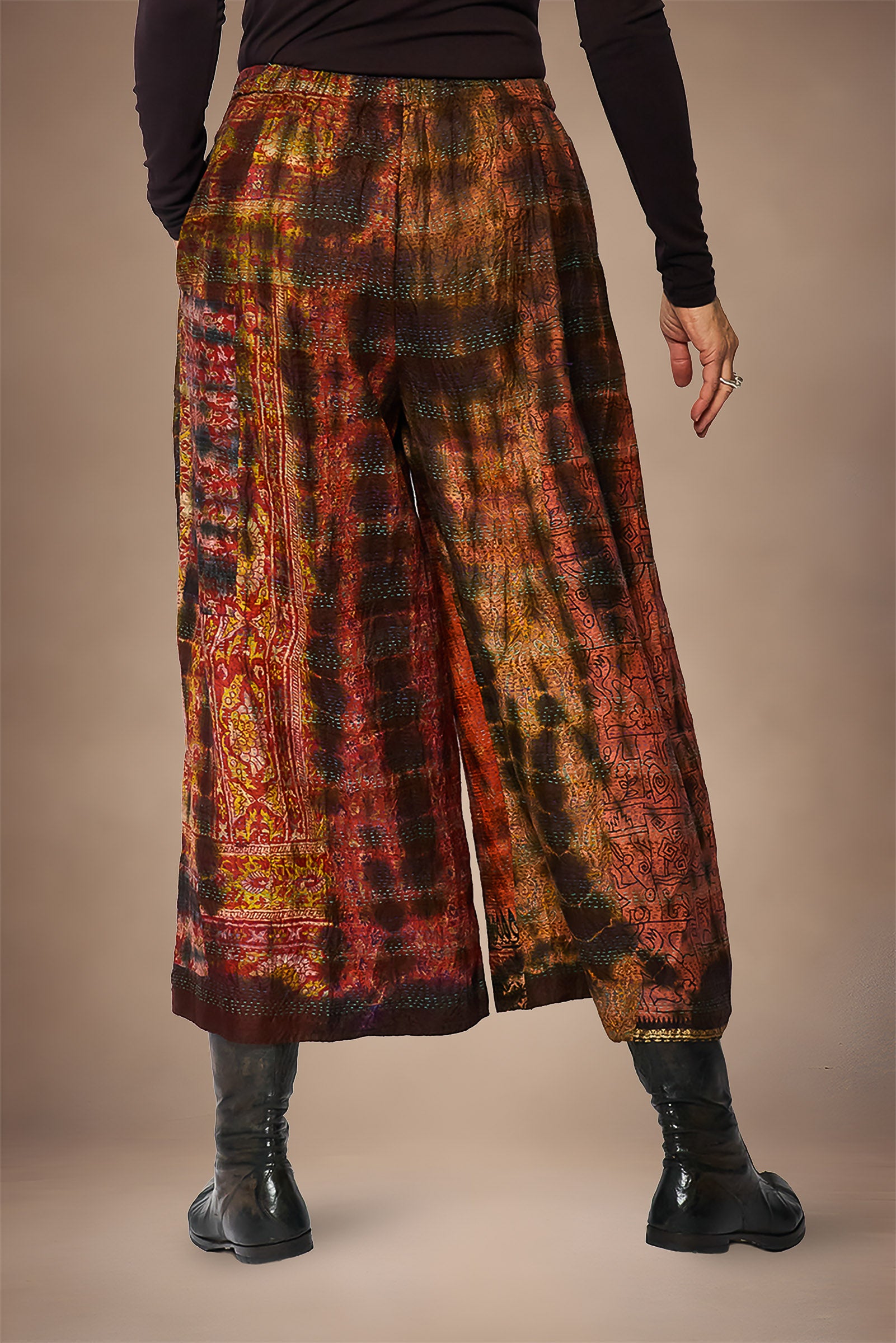 TIE DYE VINTAGE SILK KANTHA WIDE LEG LANTERN PANTS - st-sv2646-brn -
