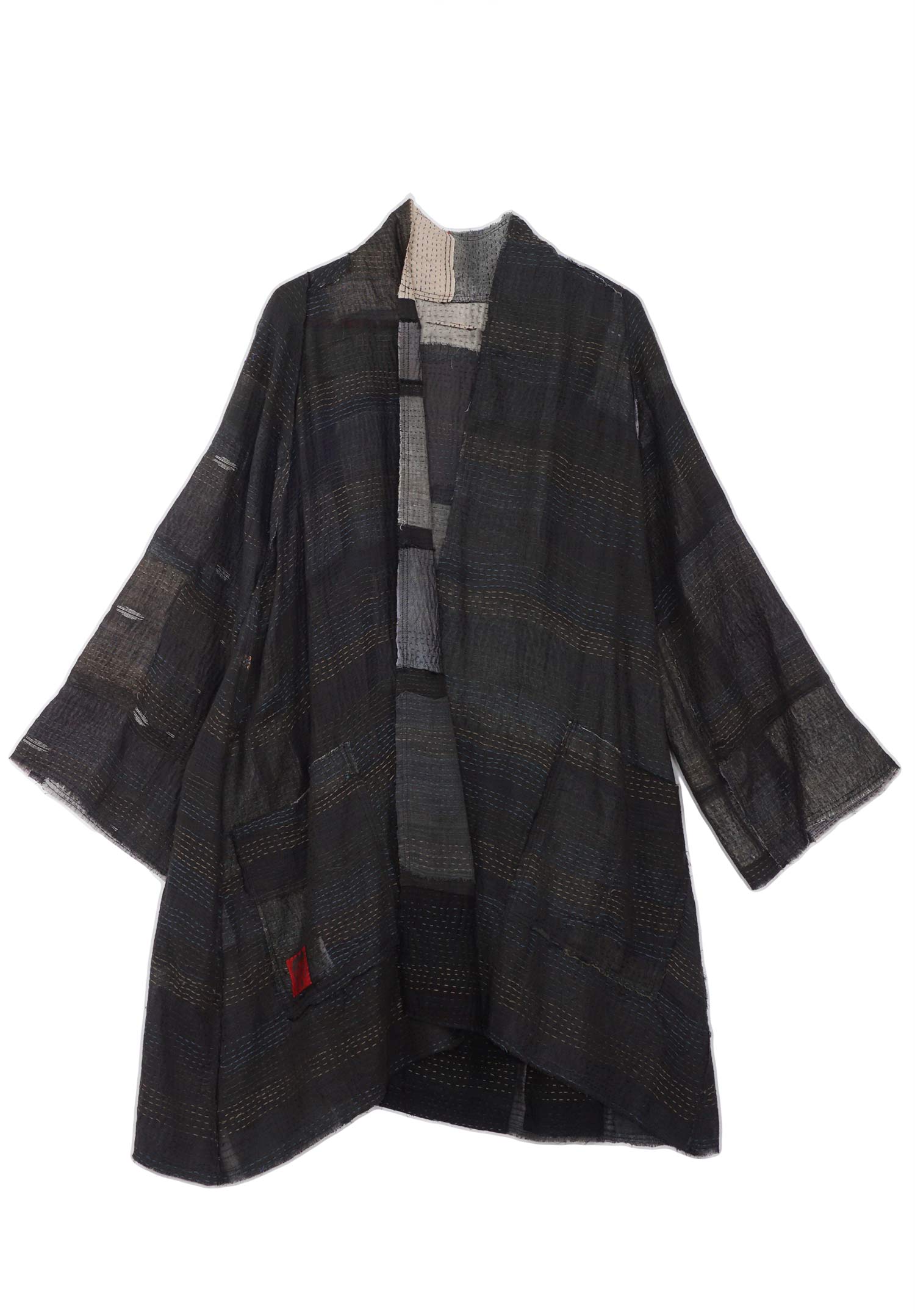TONAL TILE PATCH KANTHA A-LINE JKT - tt2003-gry -