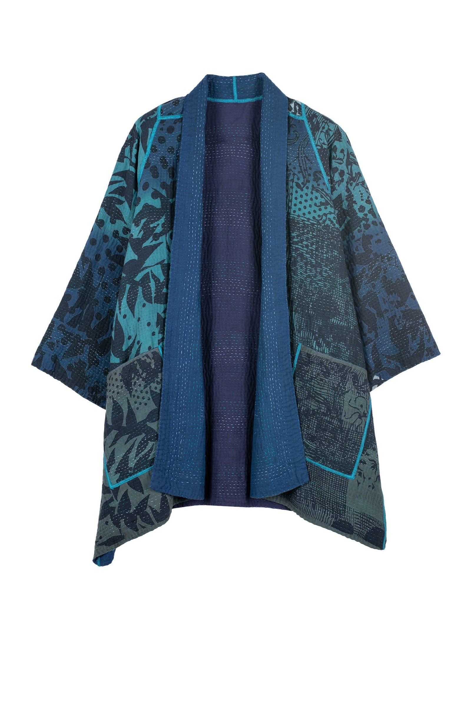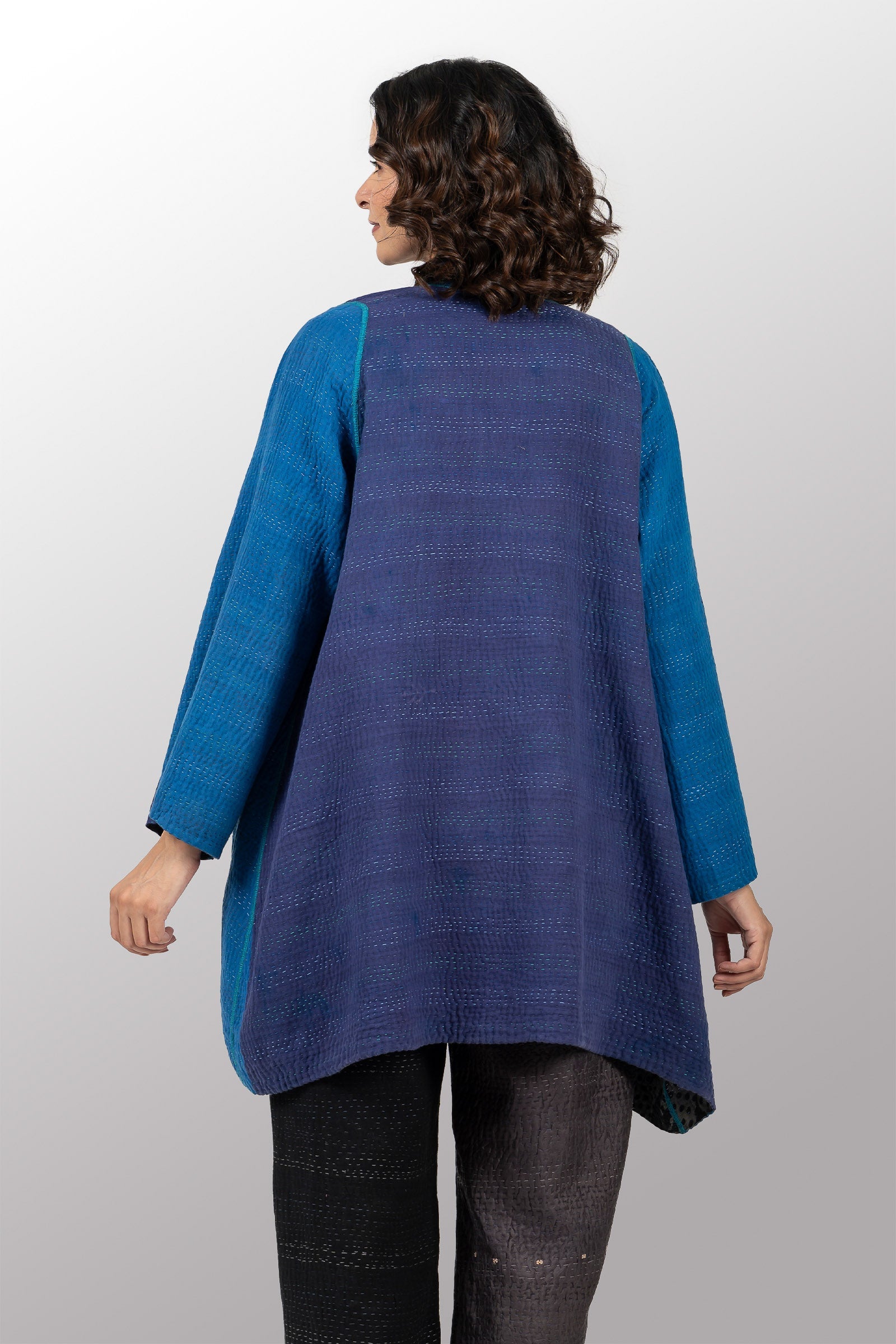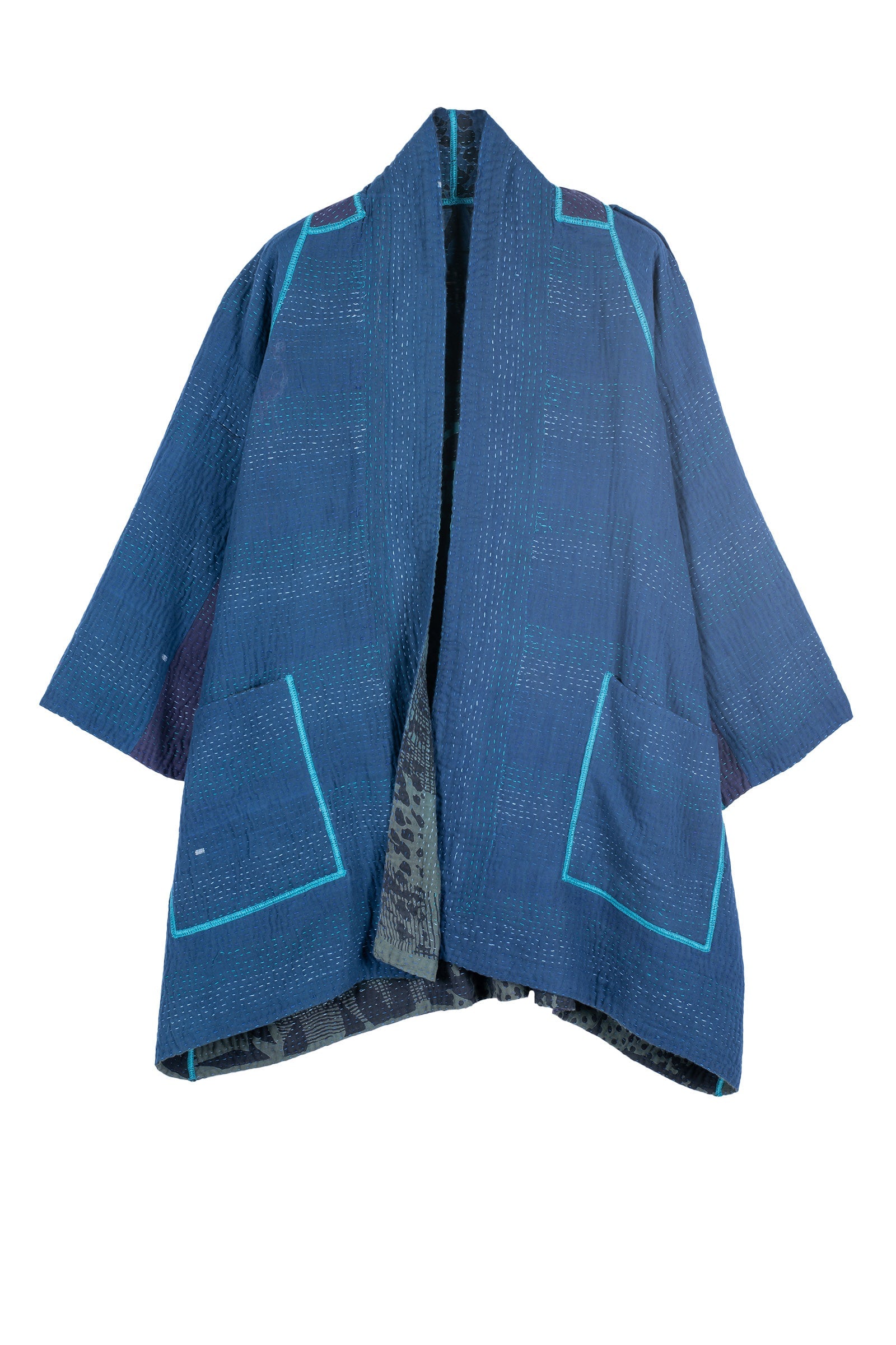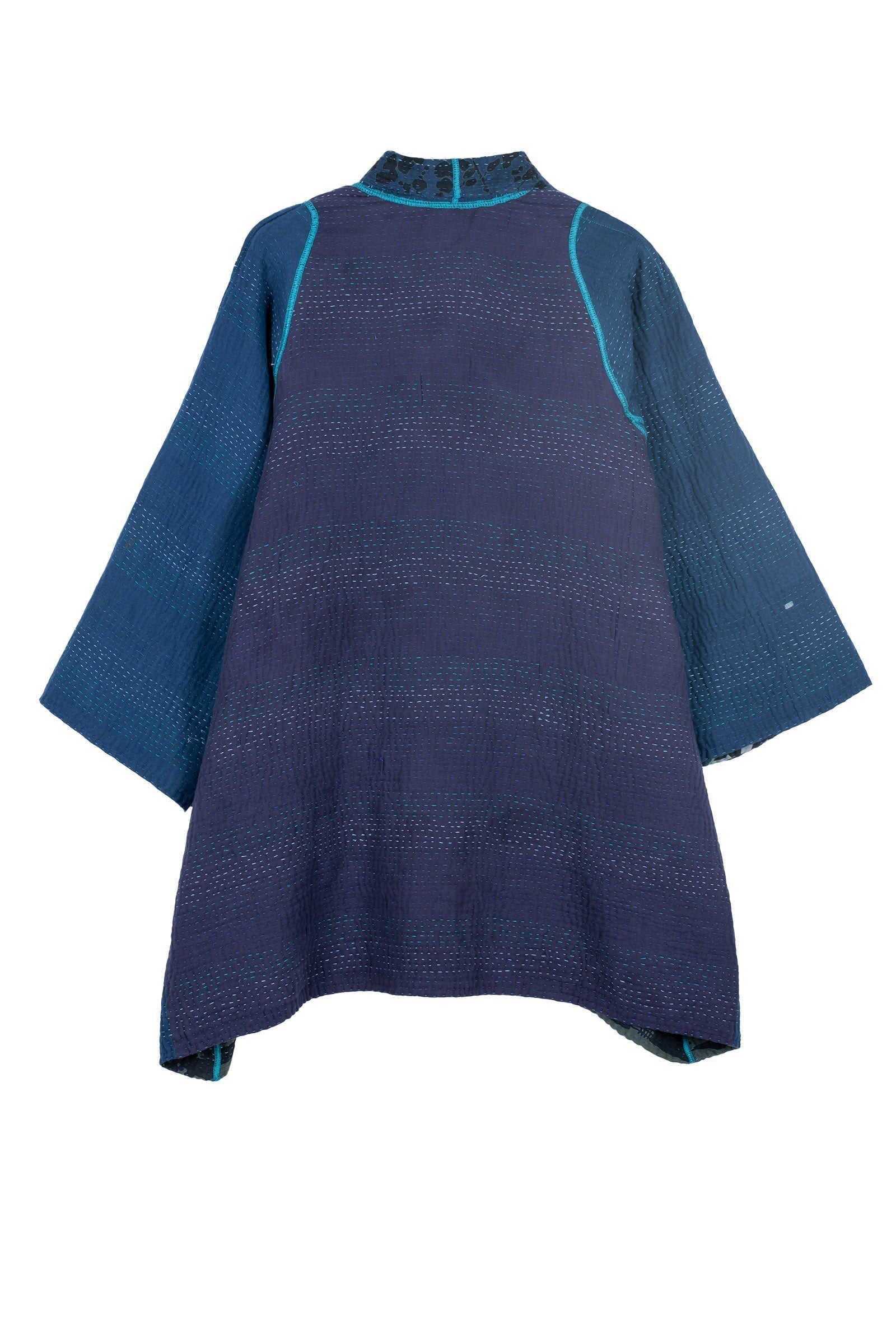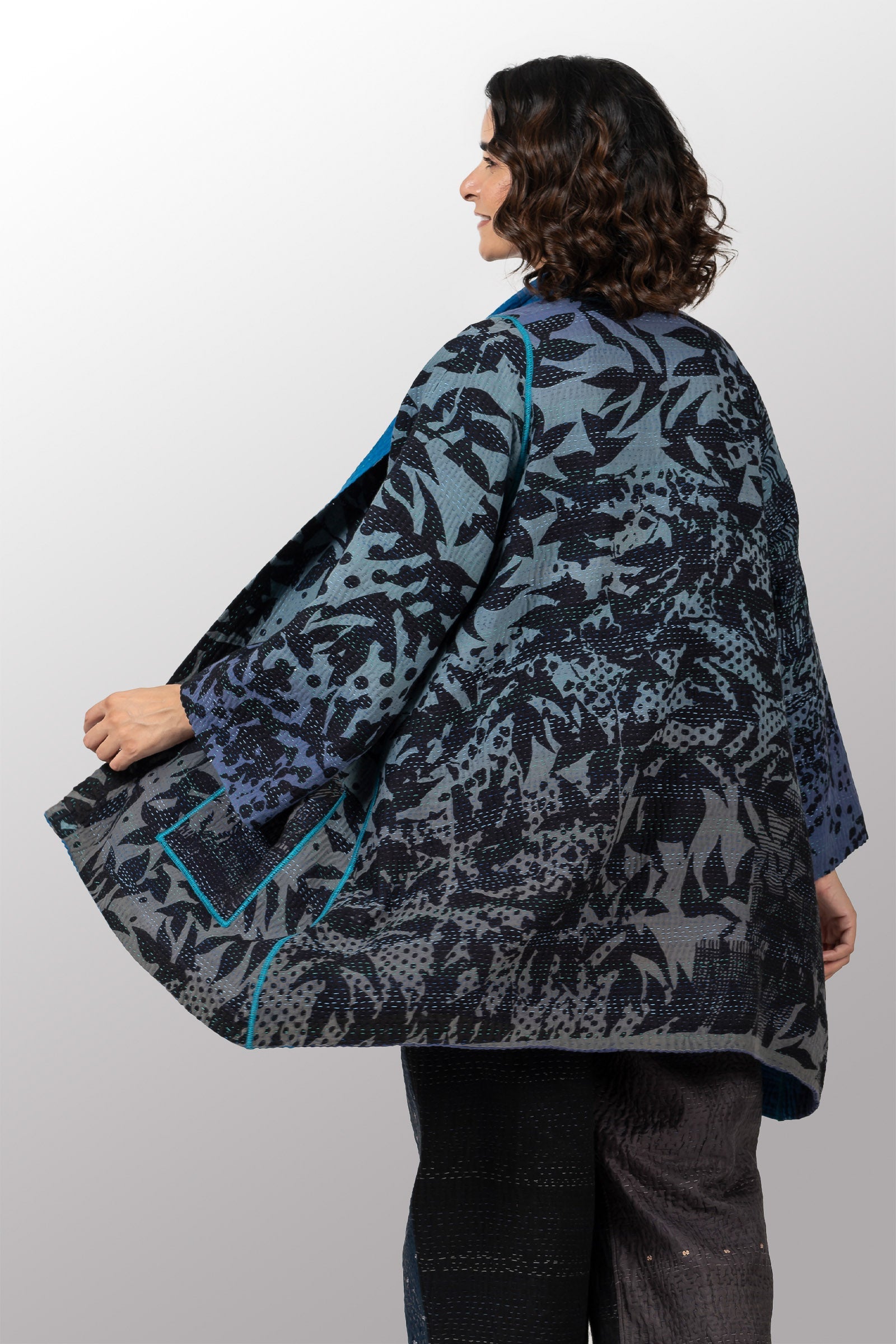 MONOTONE TWILIGHT PRINT KANTHA A-LINE JKT - tp4003-blu -