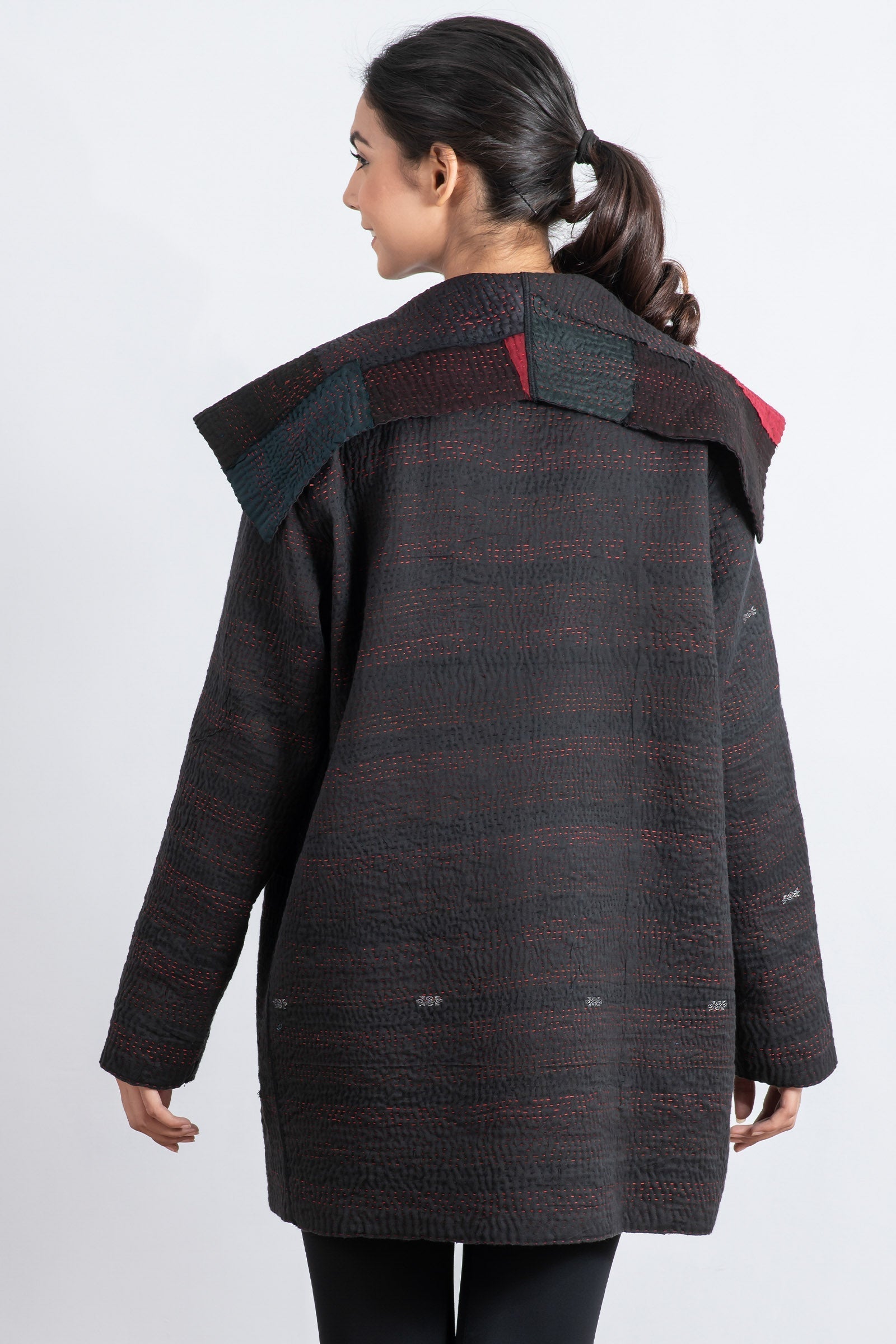 TWO TONE PATCH KANTHA POCKET JKT - tn4002-red -