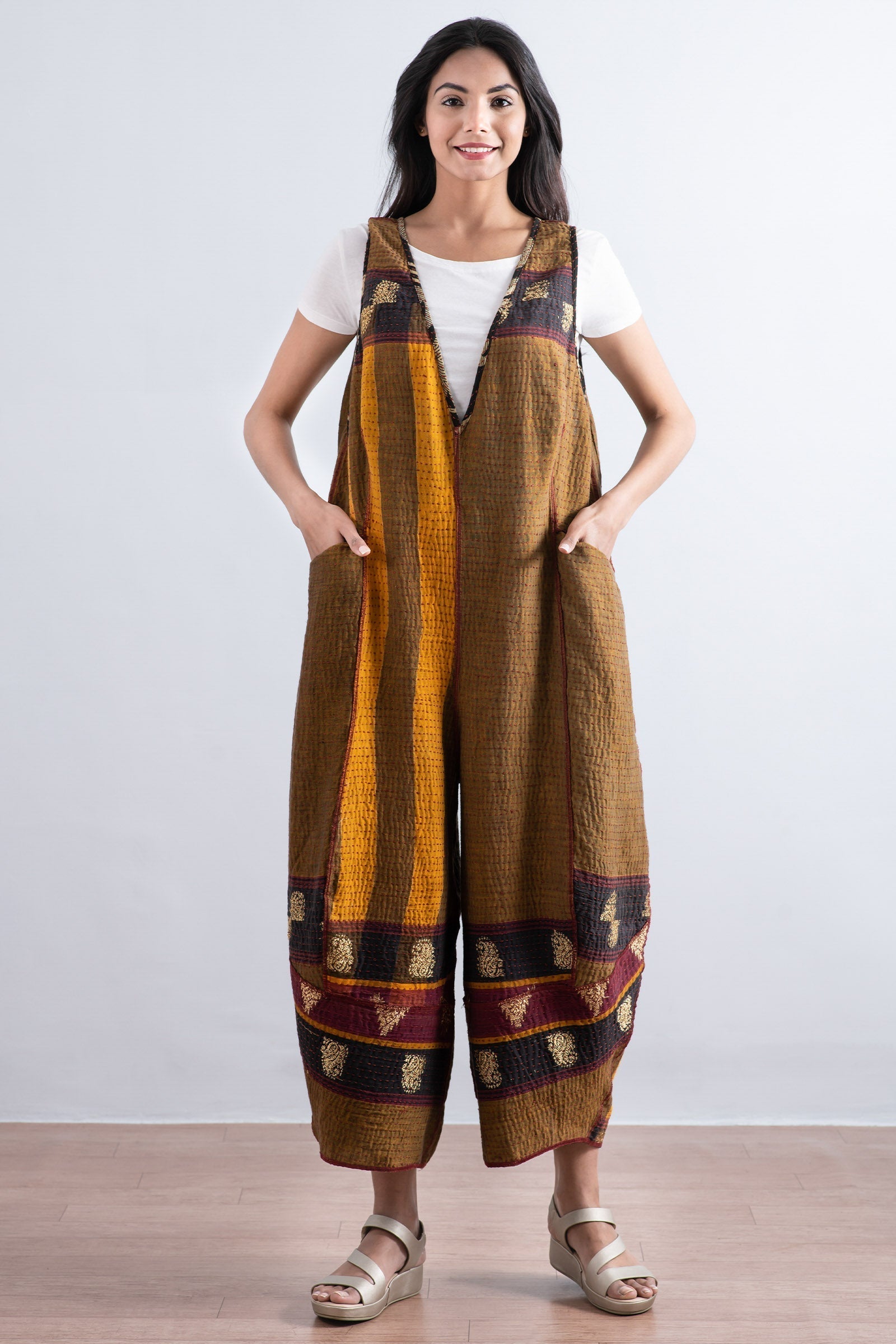 2 Layer Vintage Saris with Hand Stitches on Entire Garment - Reversible