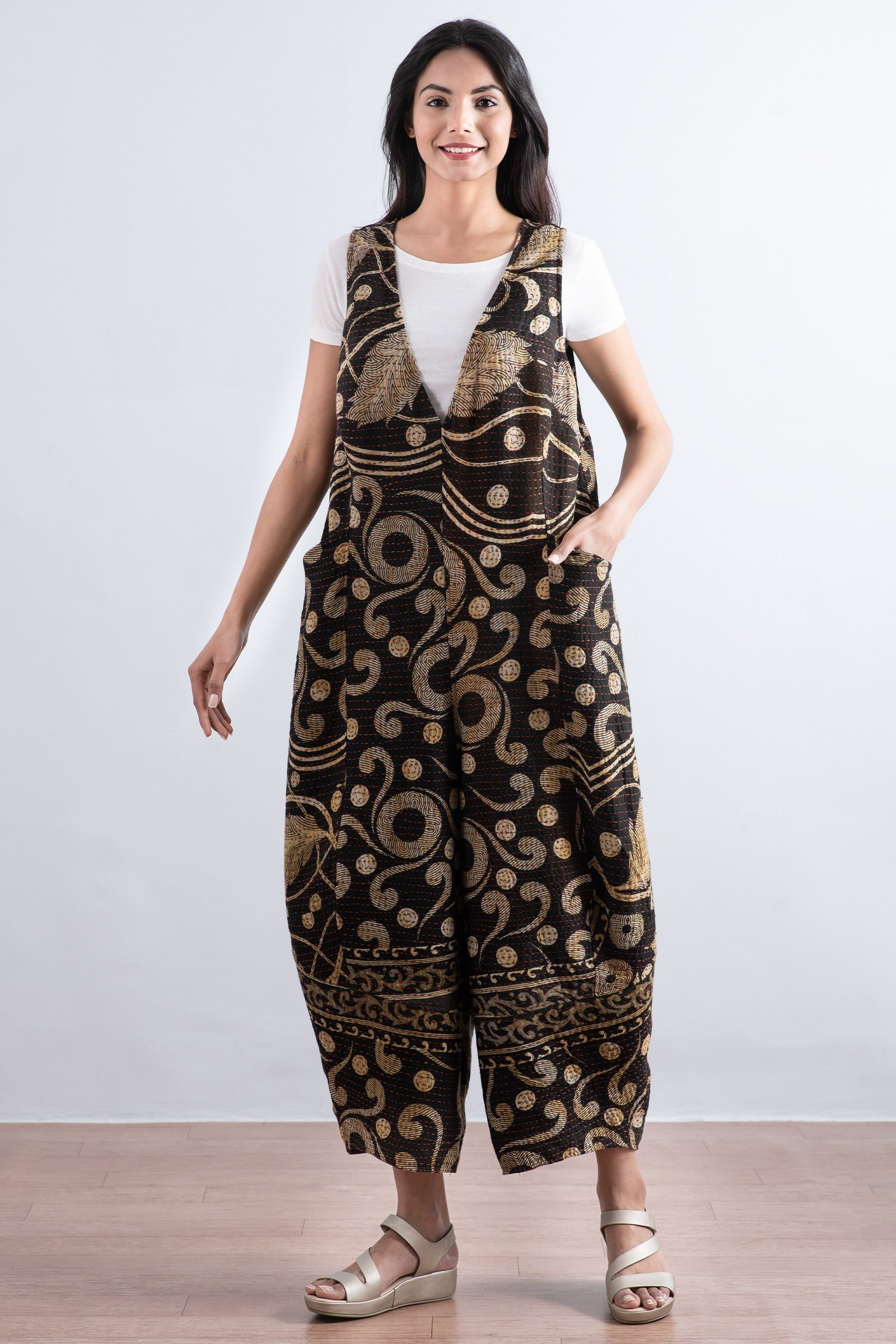 VINTAGE COTTON BBK KANTHA V-NECK JUMPER - bb2622-0011w -