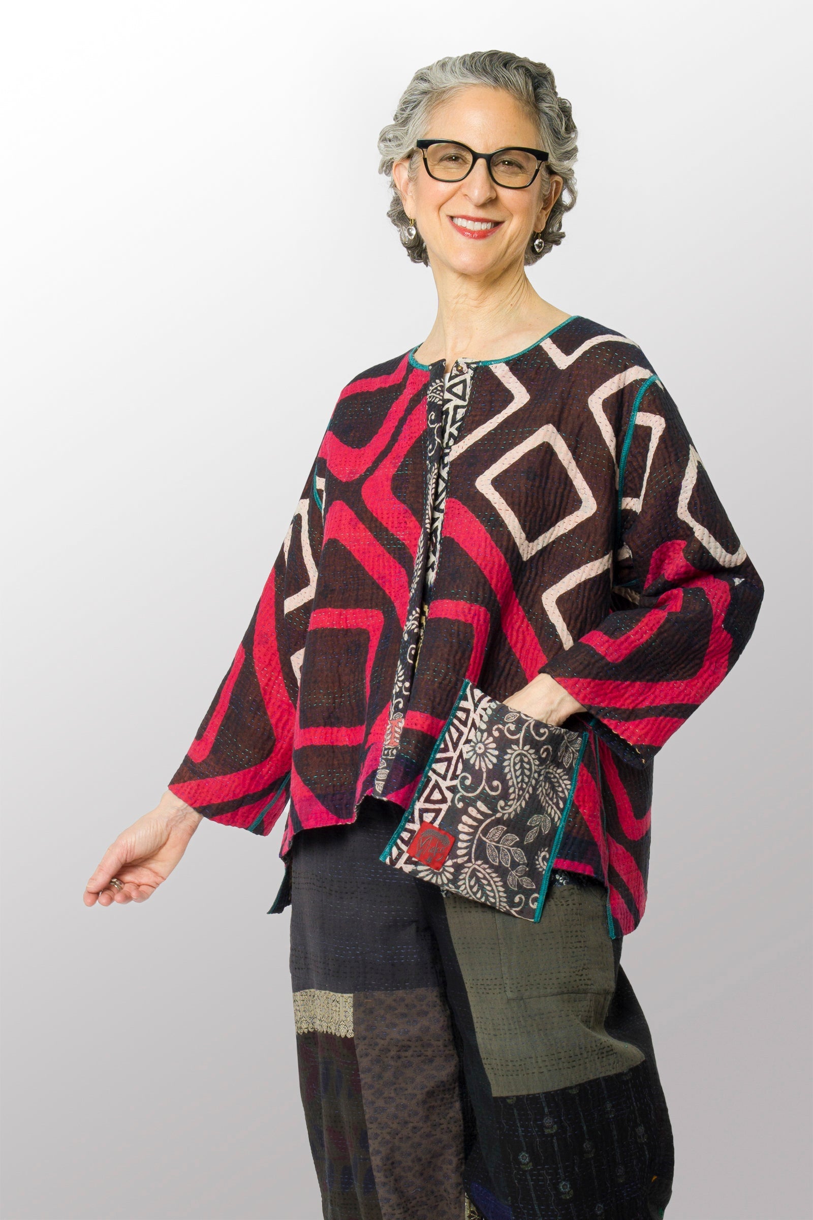 VINTAGE COTTON KANTHA A-LINE SHORT JKT - cv4019-0019a -