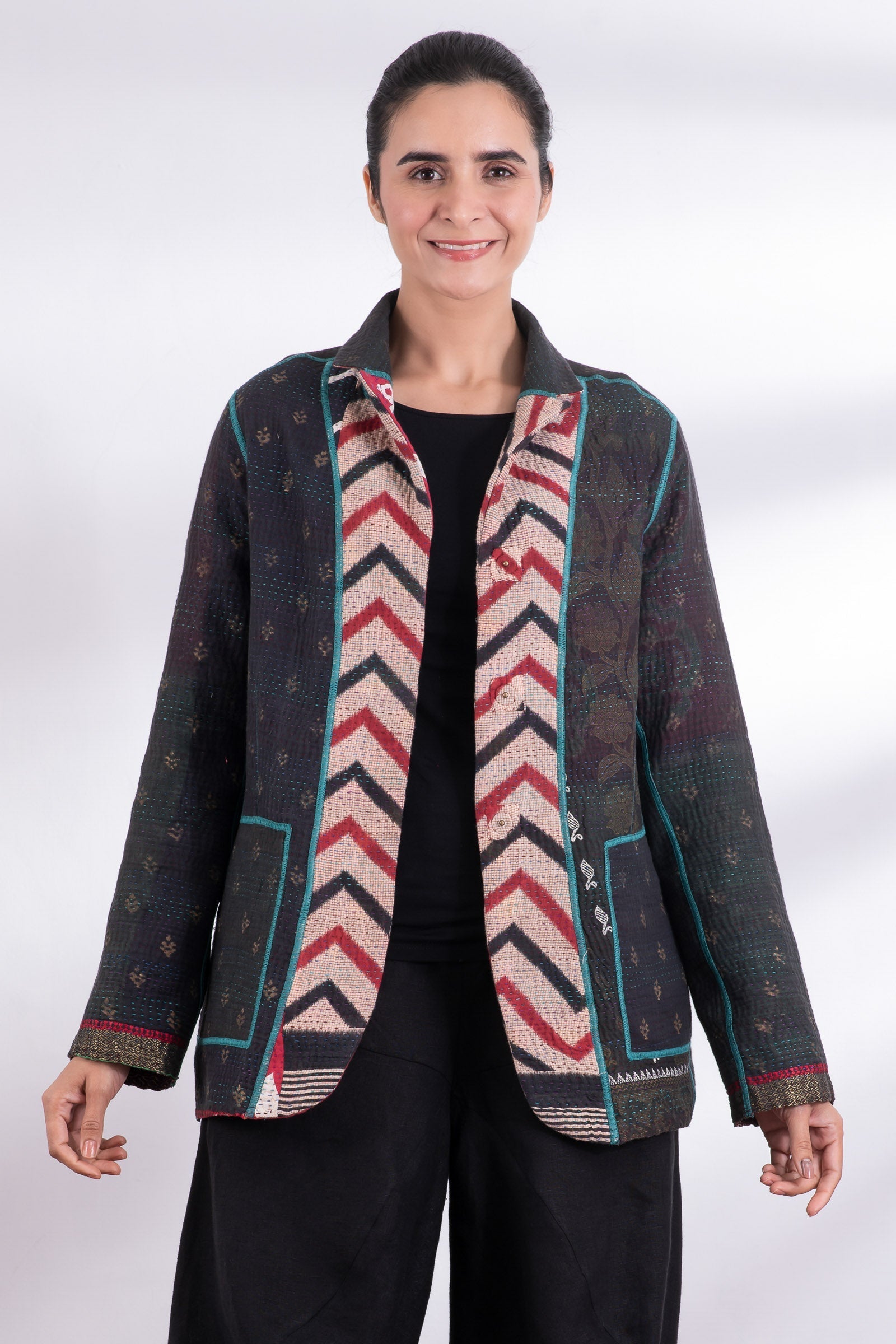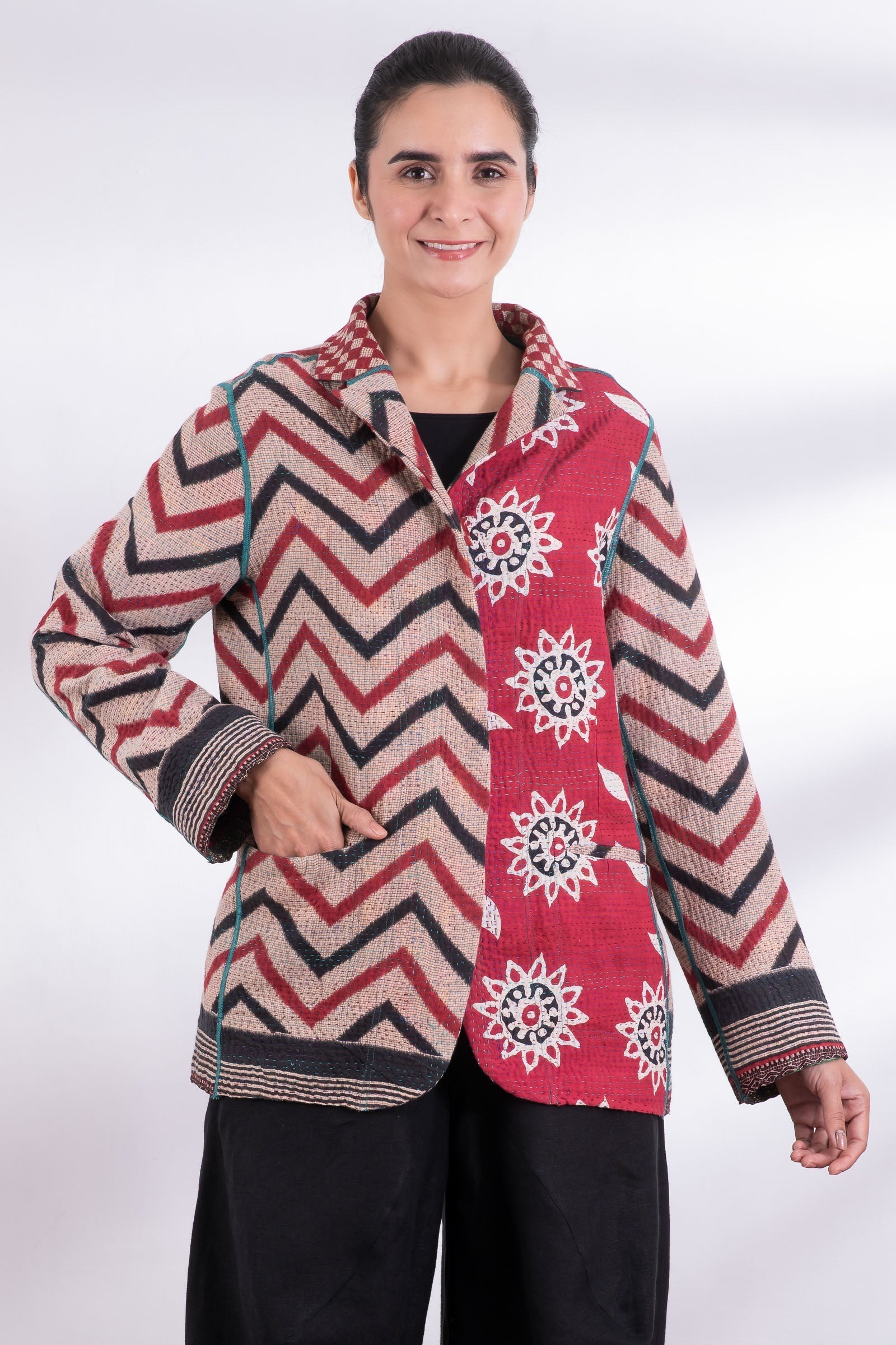VINTAGE COTTON KANTHA BASIC JKT - cv4052-0013m -