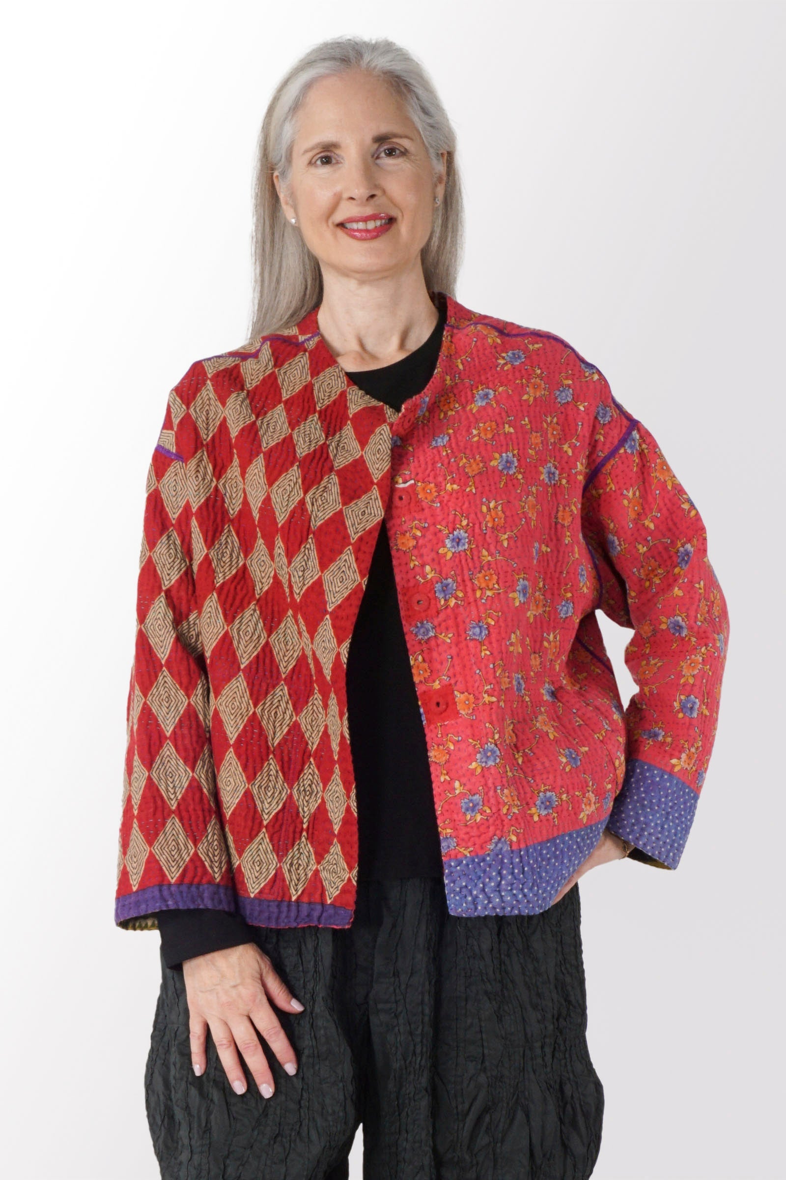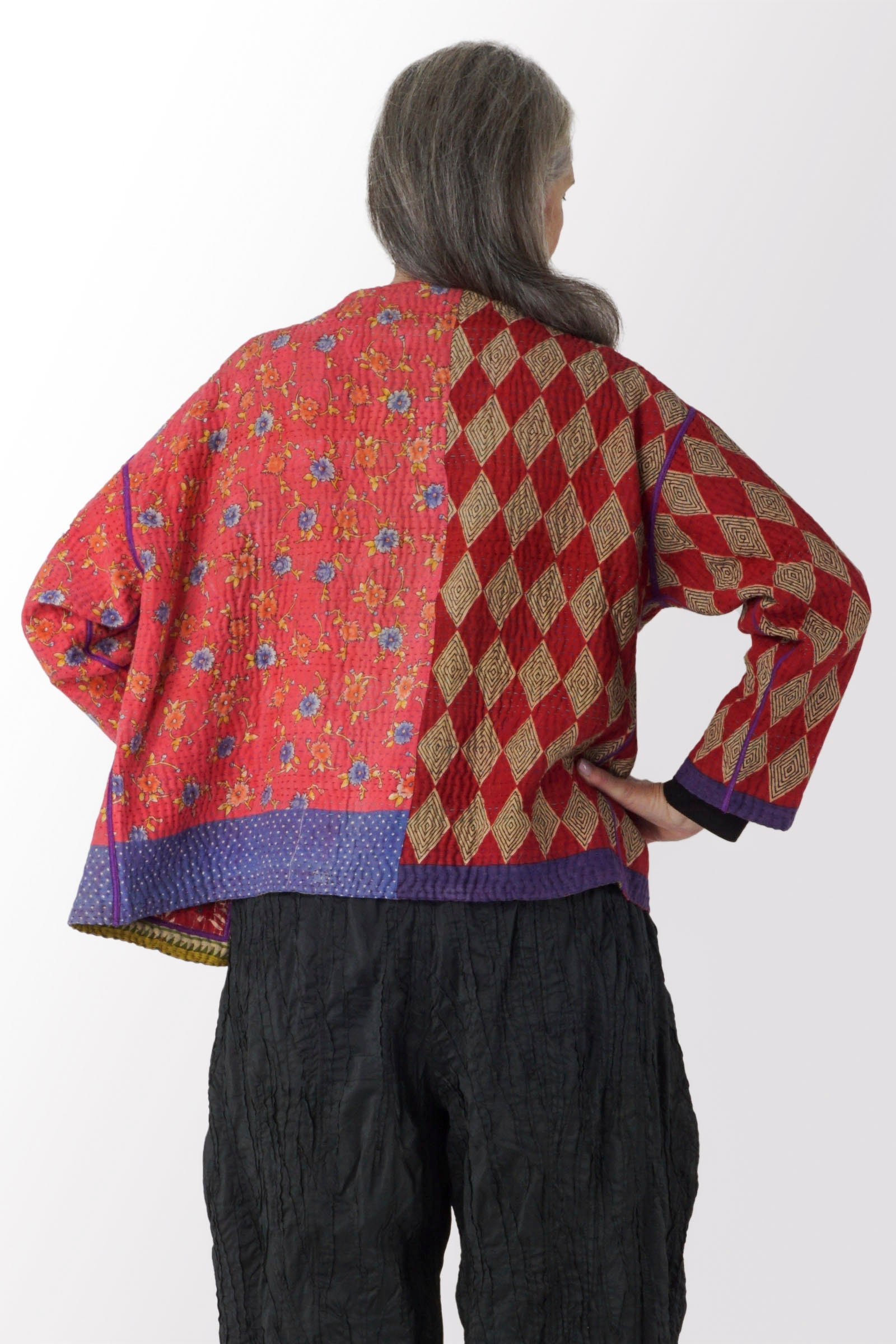 4 Layer Vintage Saris with Hand Stitches on Entire Garment - Reversible