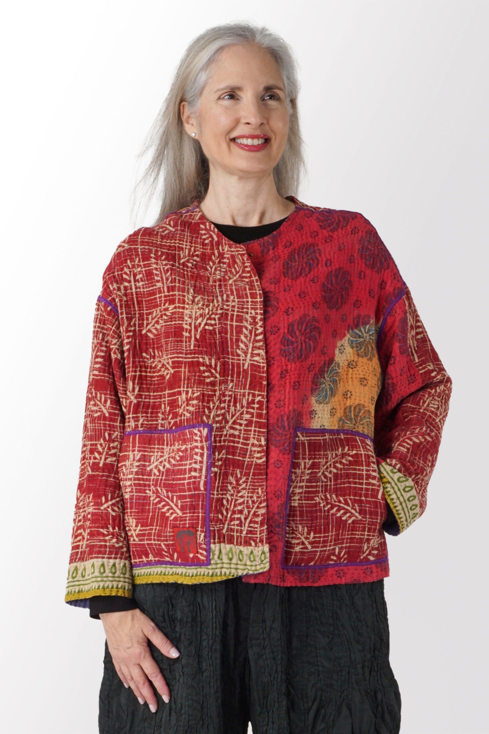 VINTAGE COTTON KANTHA CREW NECK SHORT JKT - cv4053-0052a -