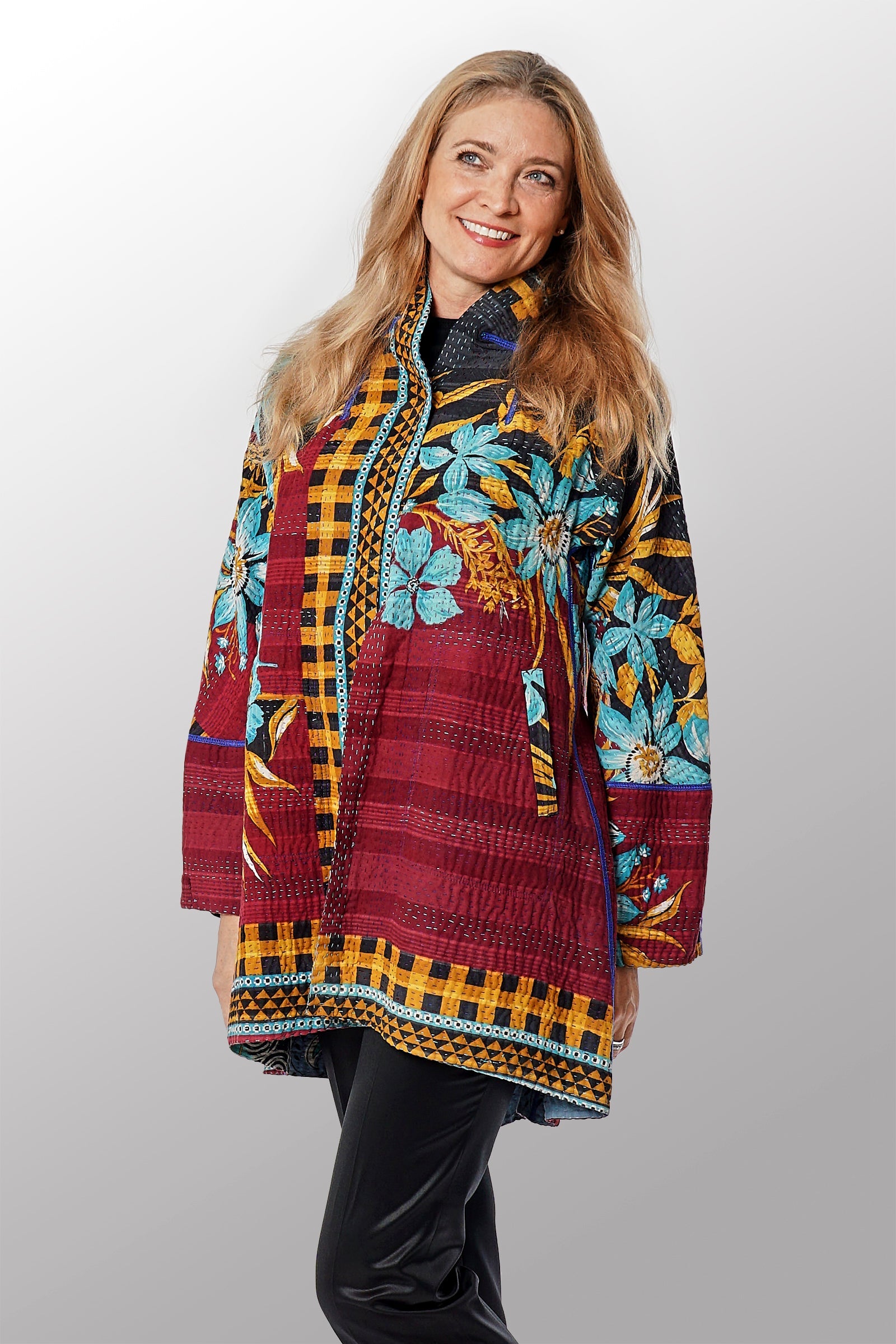 4 Layer Vintage Saris with Hand Stitches on Entire Garment - Reversible