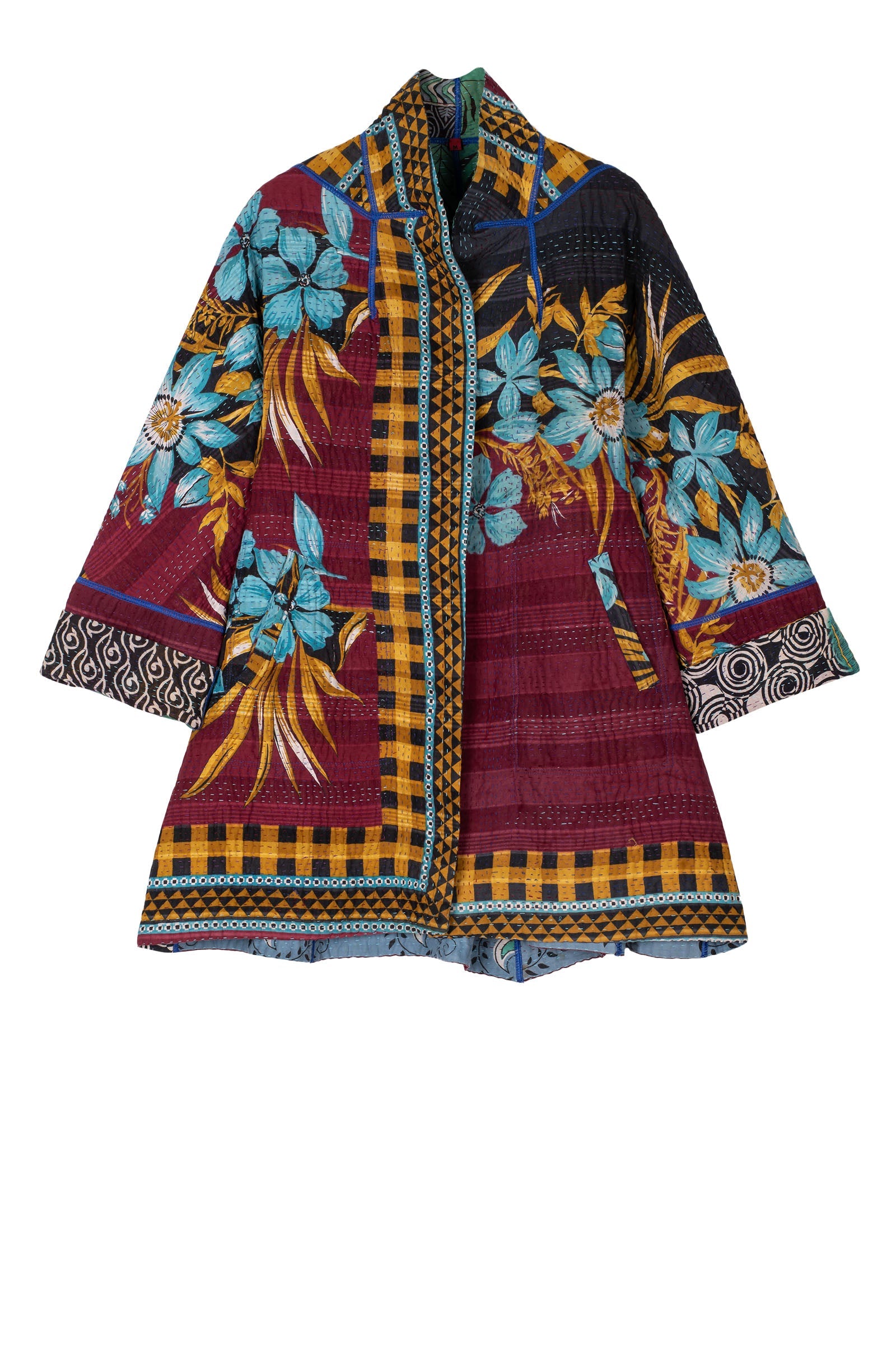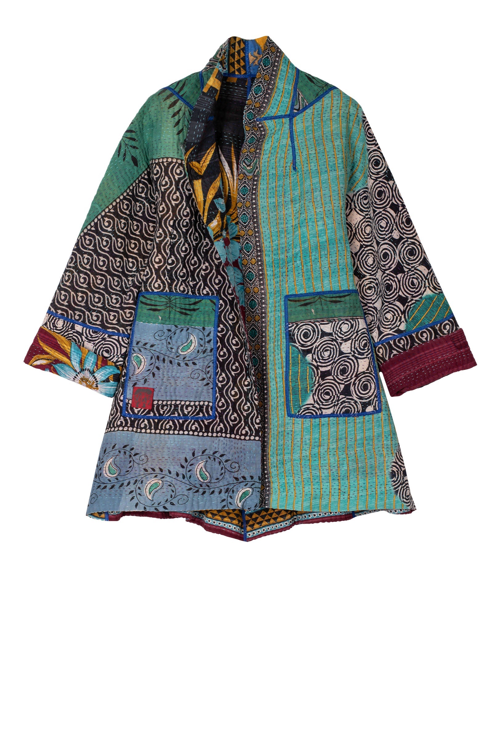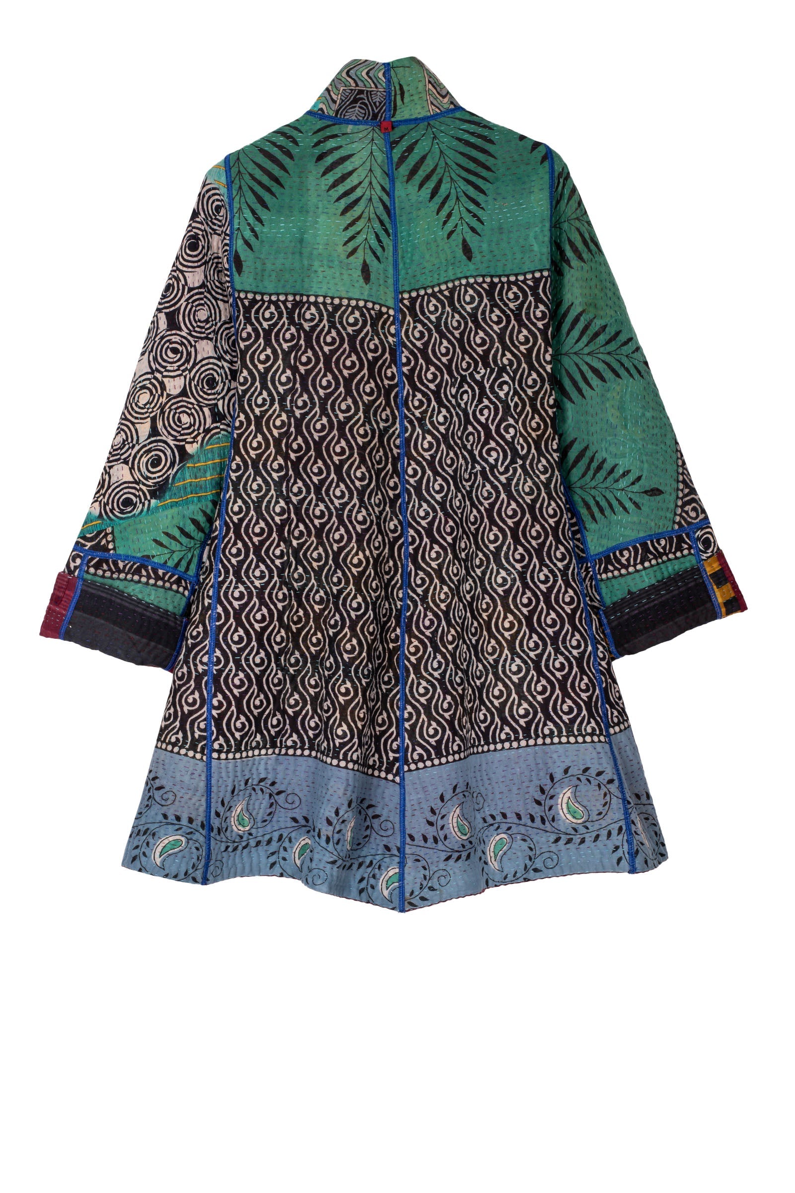 VINTAGE COTTON KANTHA FLARE LONG JACKET - cv4021-0049m -