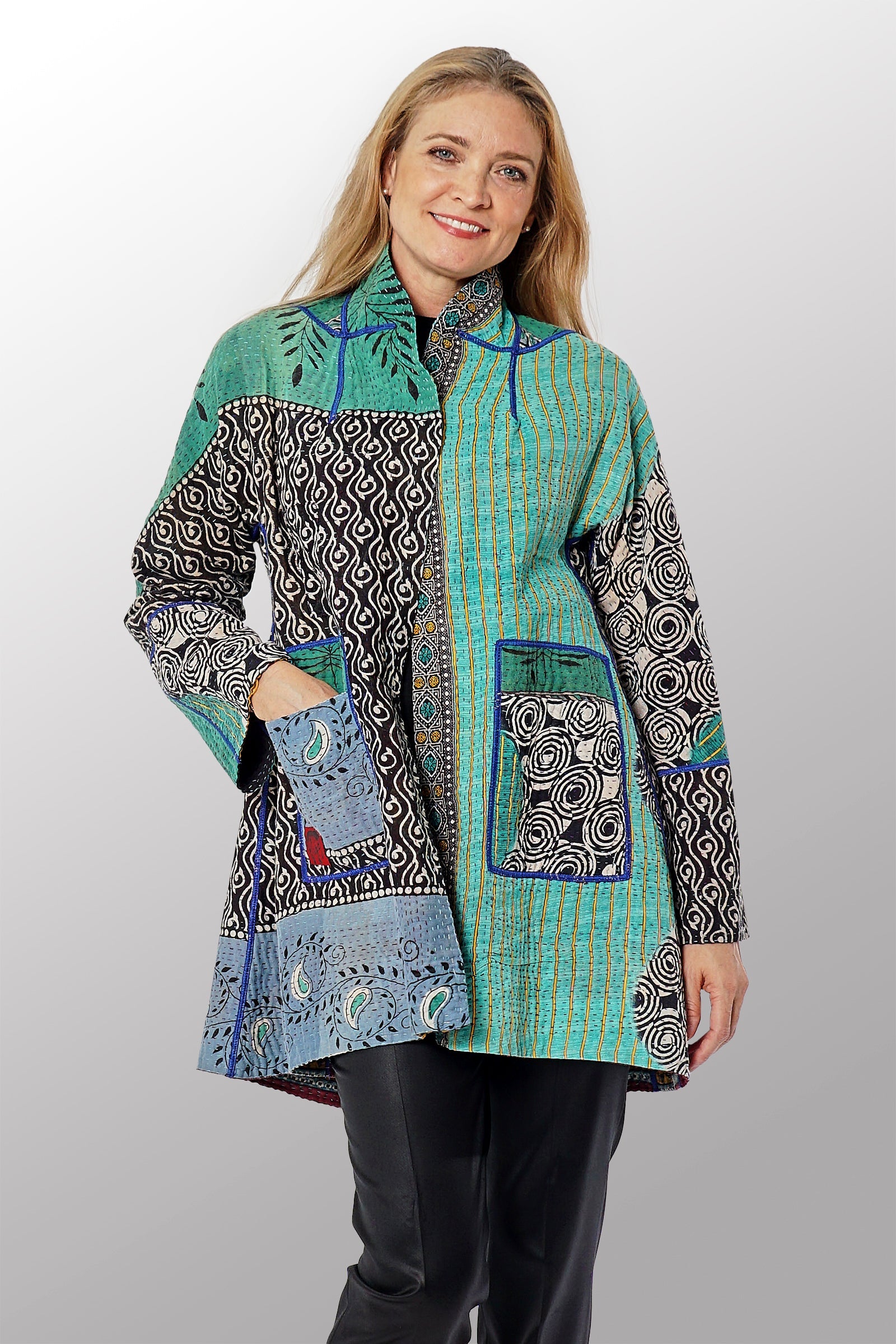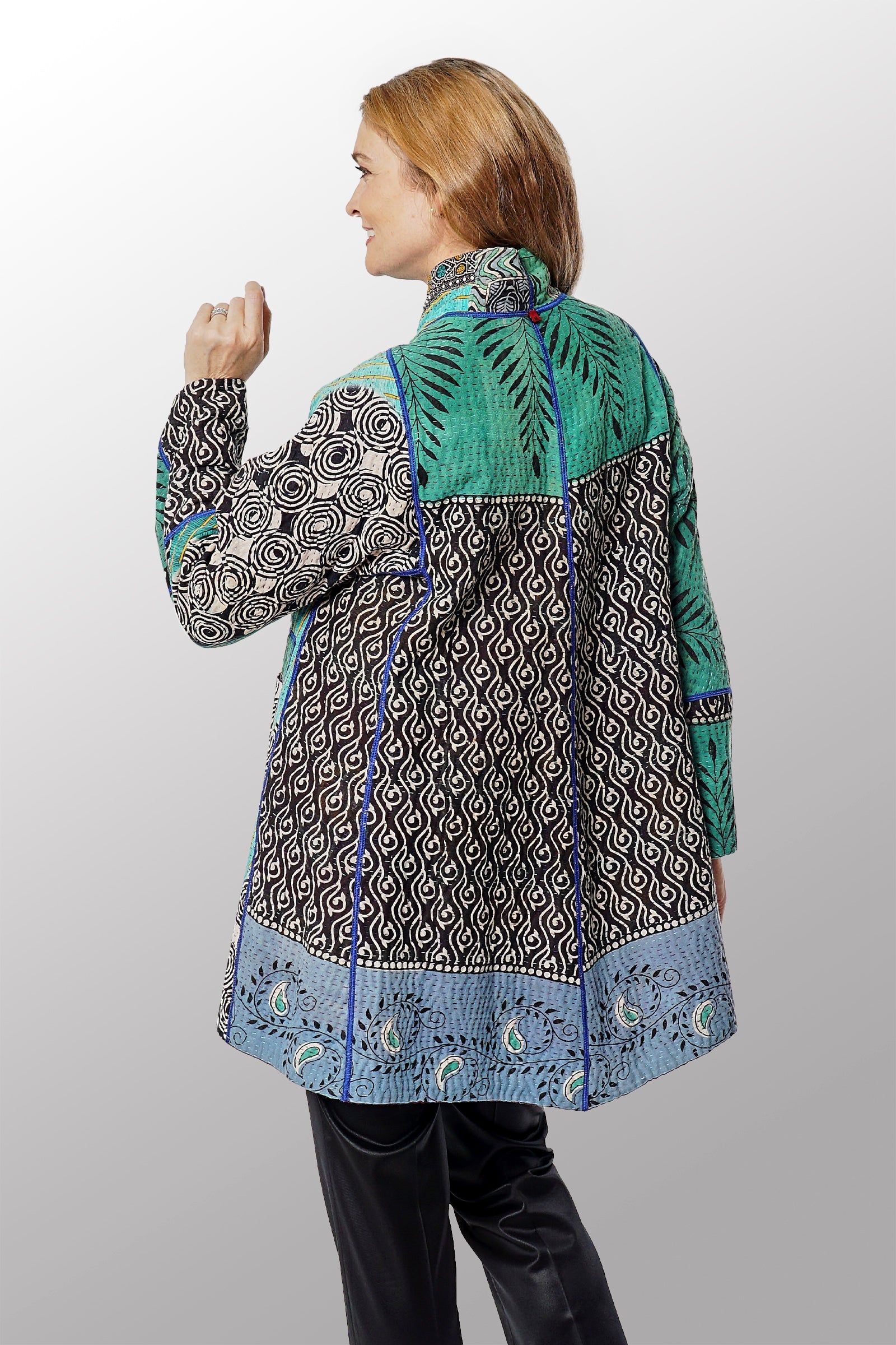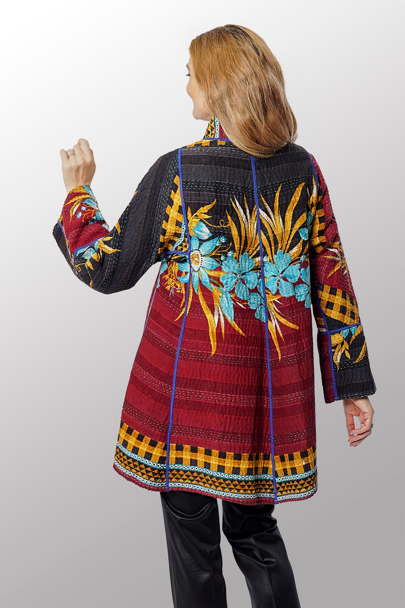 VINTAGE COTTON KANTHA FLARE LONG JACKET - cv4021-0049m -