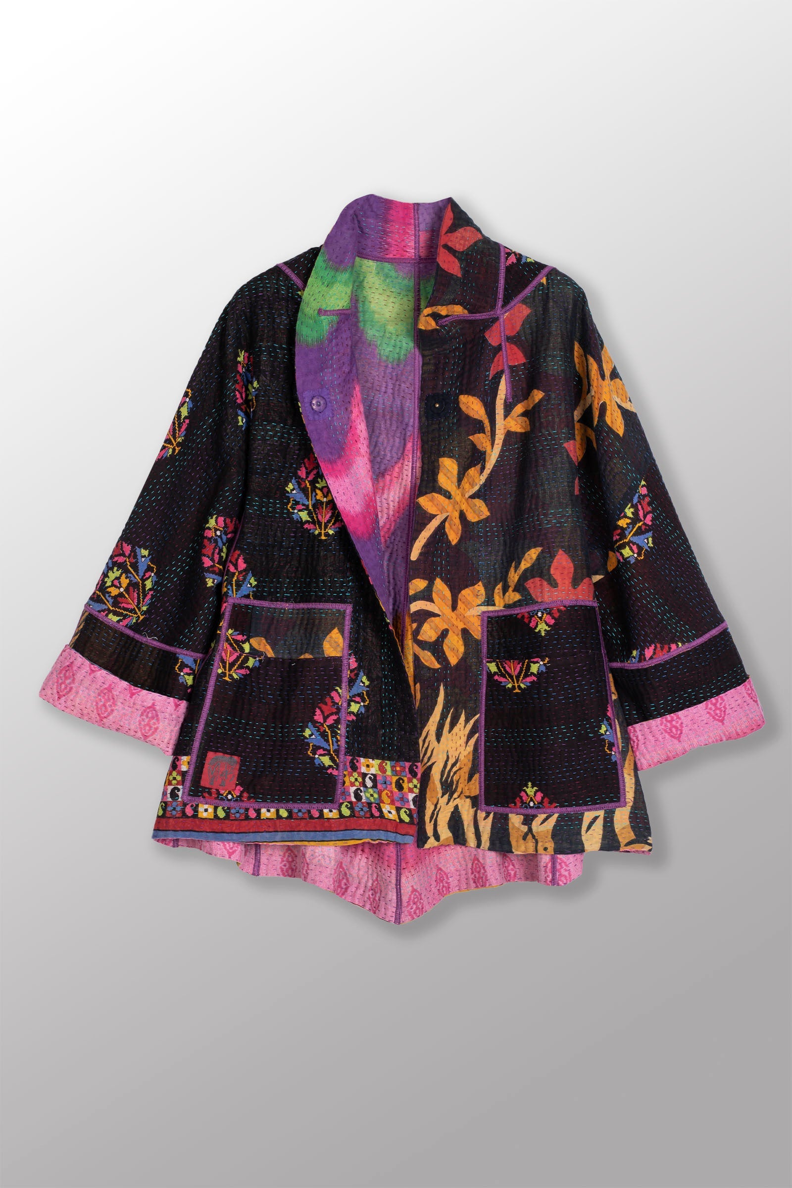 VINTAGE COTTON KANTHA FLARE SHORT JKT - cv4011-0128m -