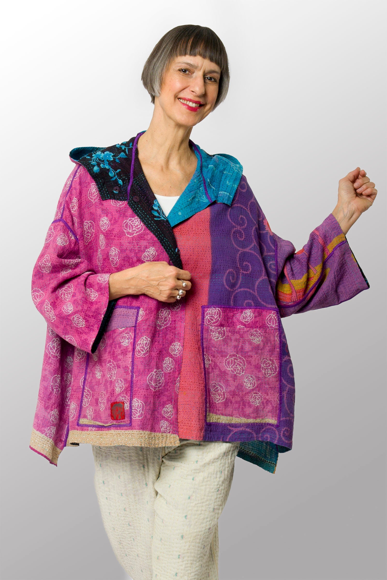 2 Layer Vintage Saris with Hand Stitches on Entire Garment - Reversible