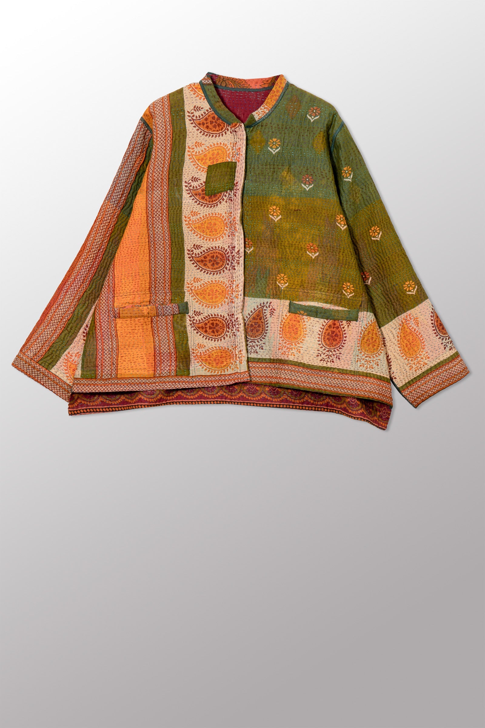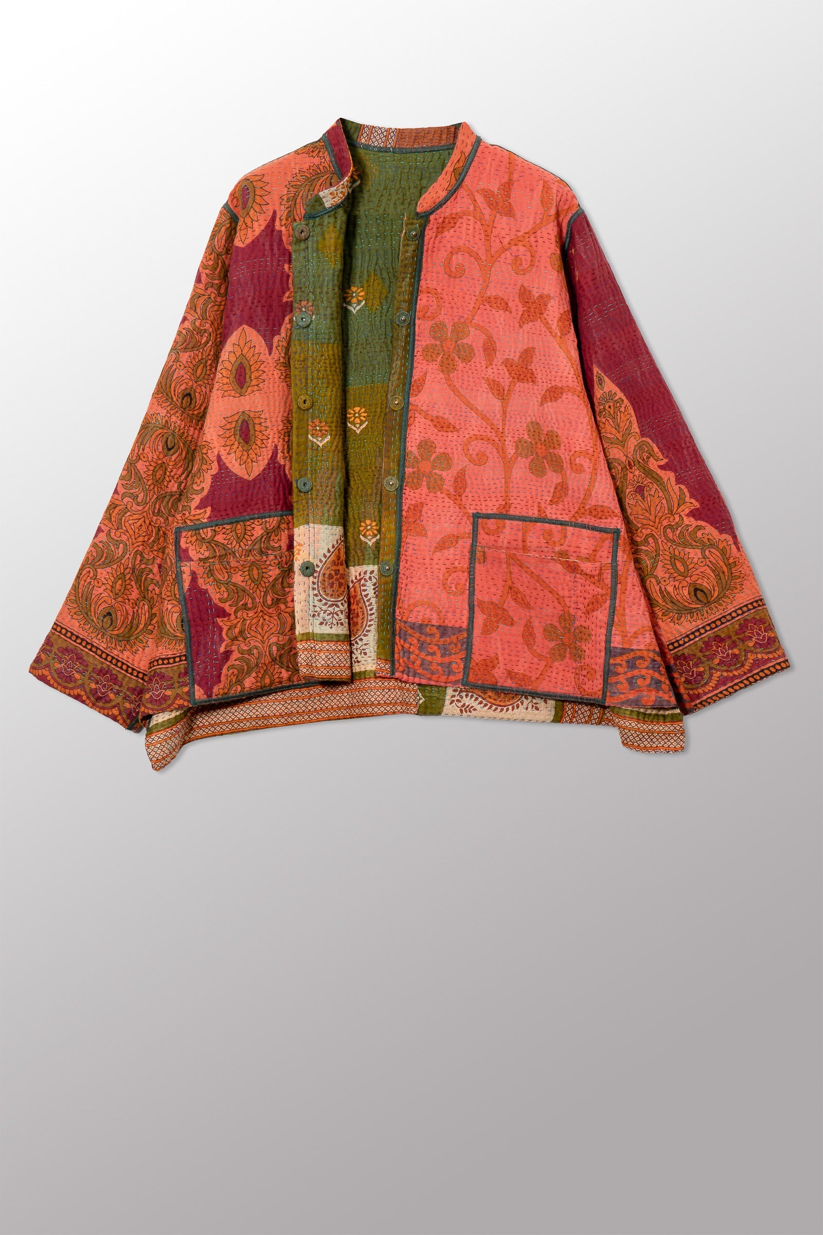 VINTAGE COTTON KANTHA KAFTAN JACKET SHORT - cv4088-0004m -
