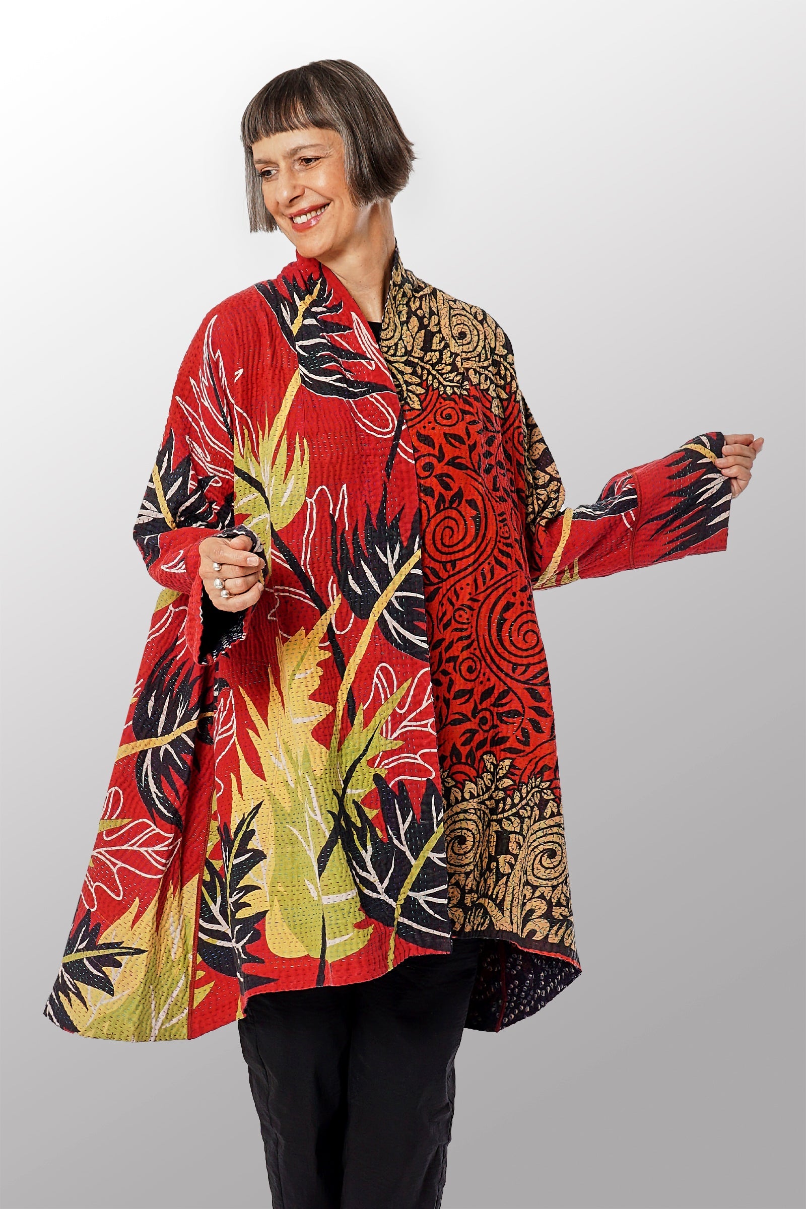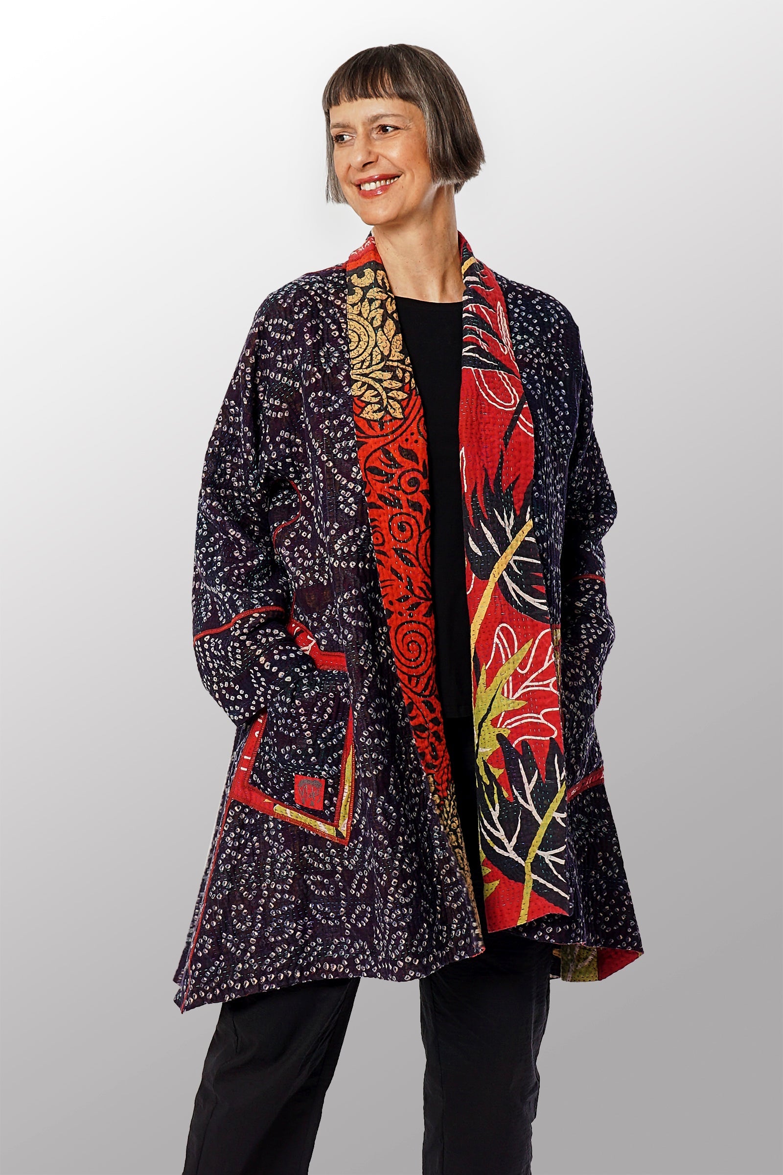 VINTAGE COTTON KANTHA KIMONO LONG JKT - cv4005-0141a -