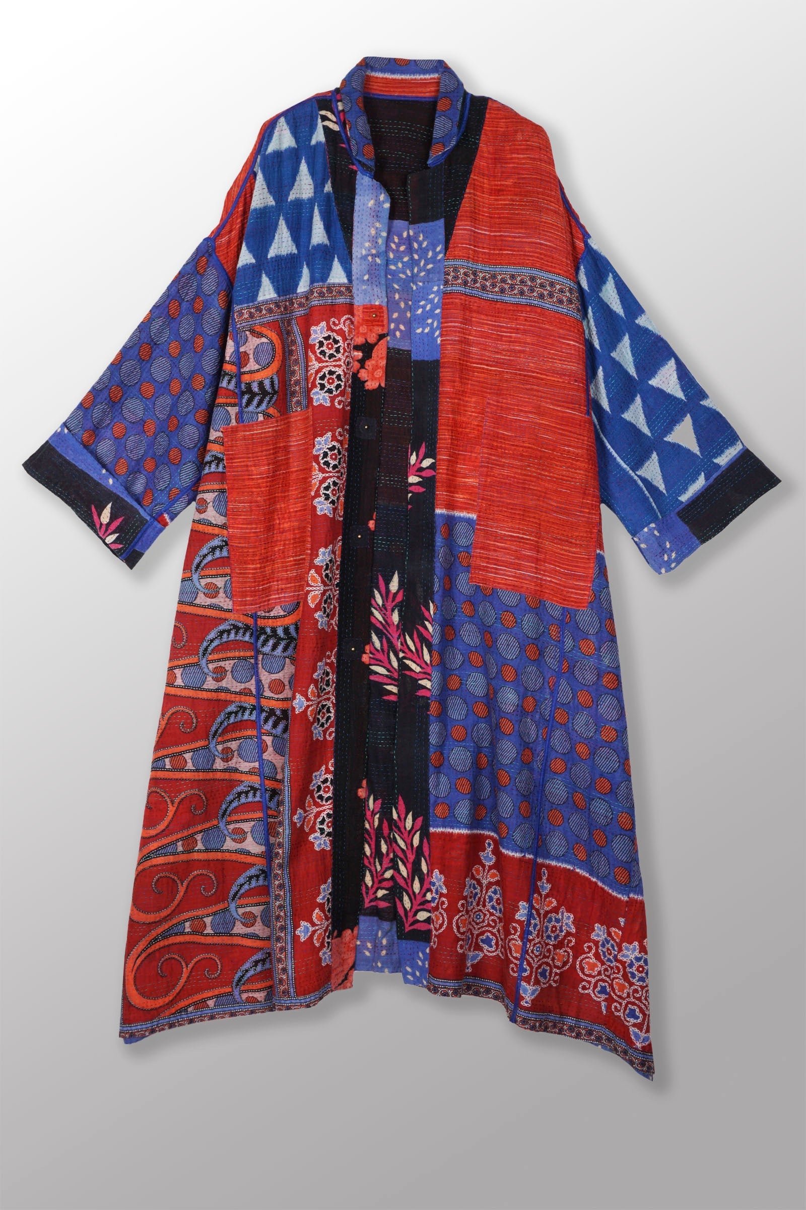 VINTAGE COTTON KANTHA OVERSIZED COAT - cv2326-0004a -