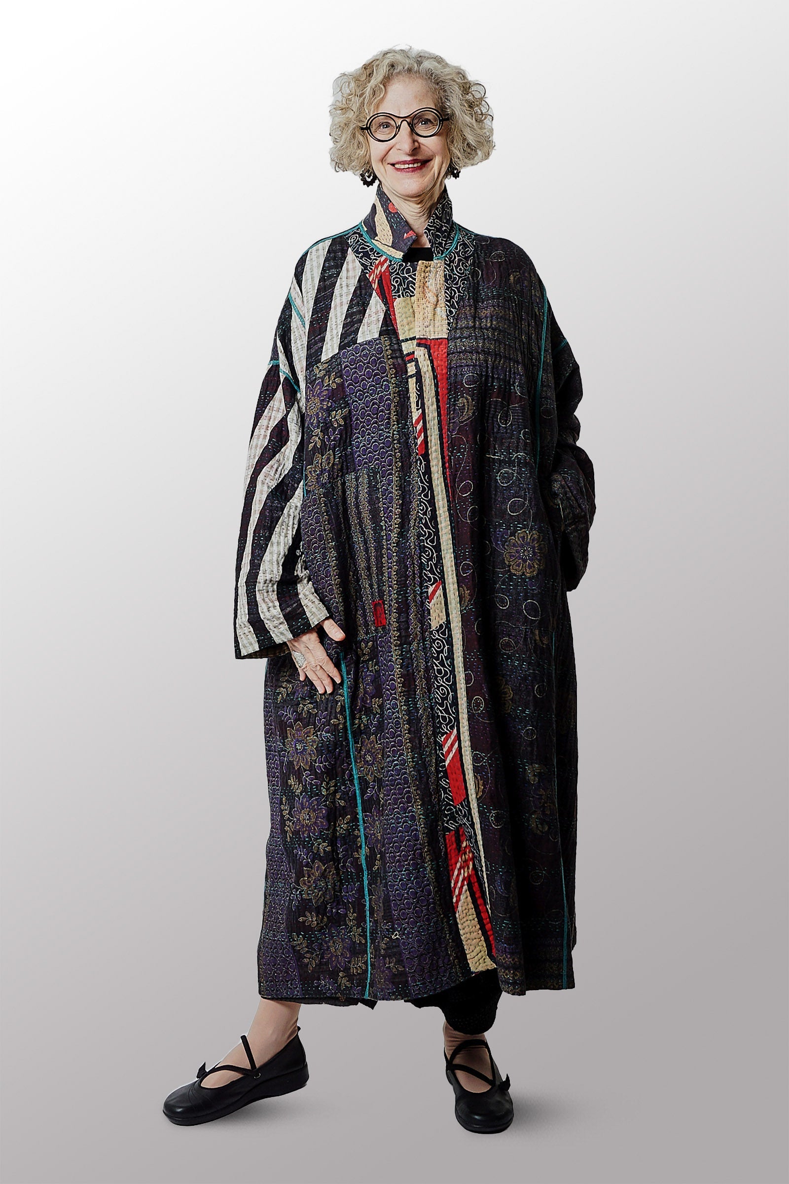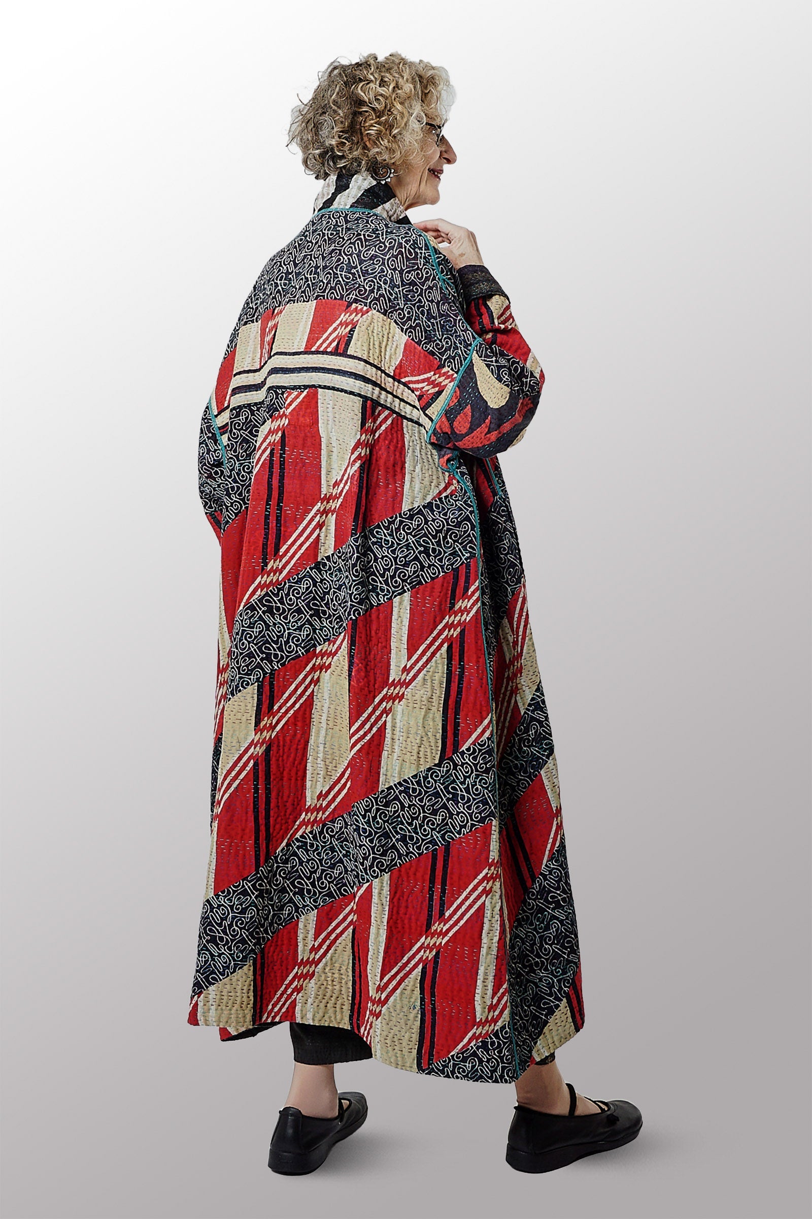 VINTAGE COTTON KANTHA OVERSIZED COAT - cv4326-0038a -