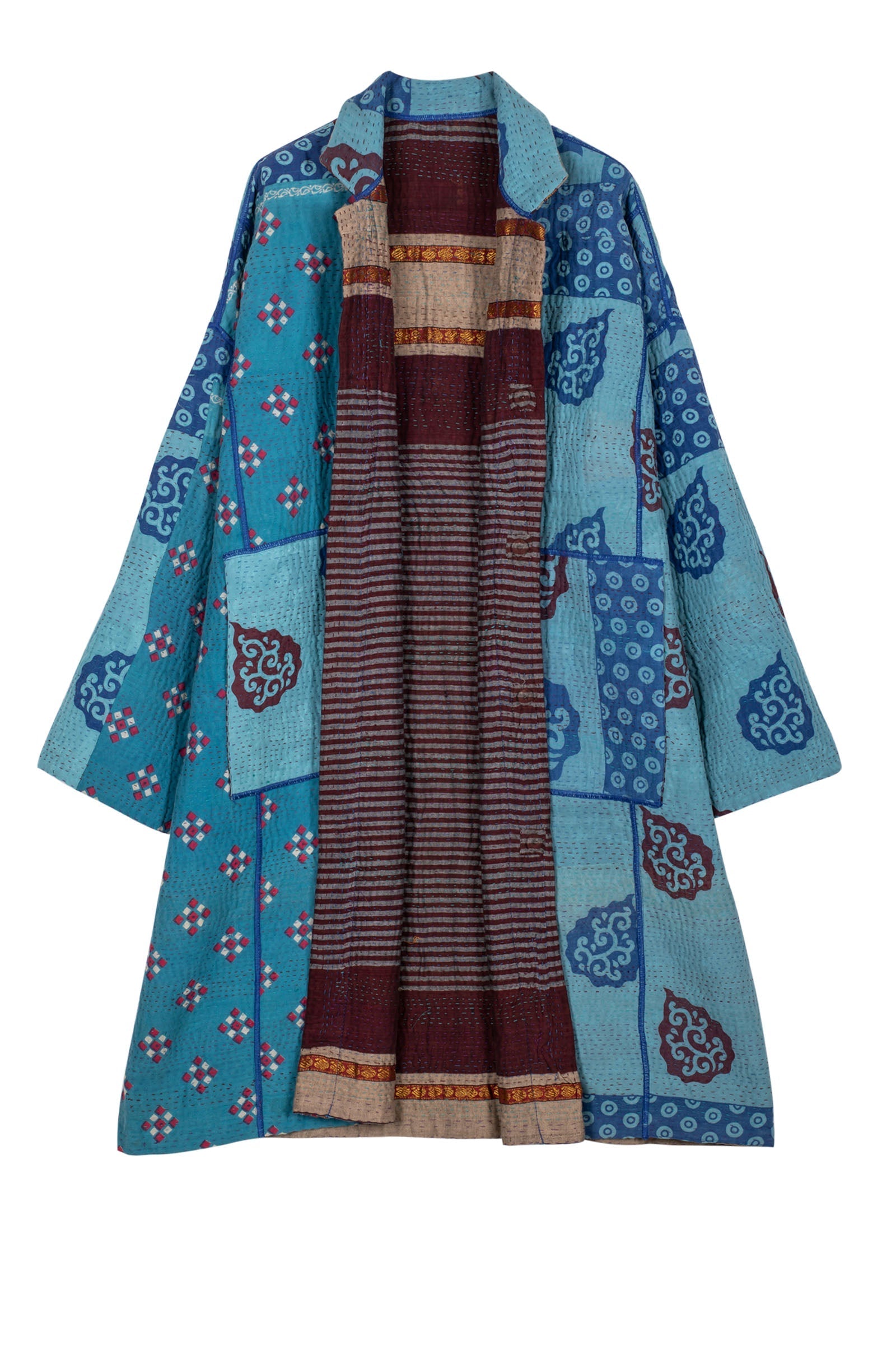 VINTAGE COTTON KANTHA OVERSIZED MEDIUM COAT - cv4331-5001a -