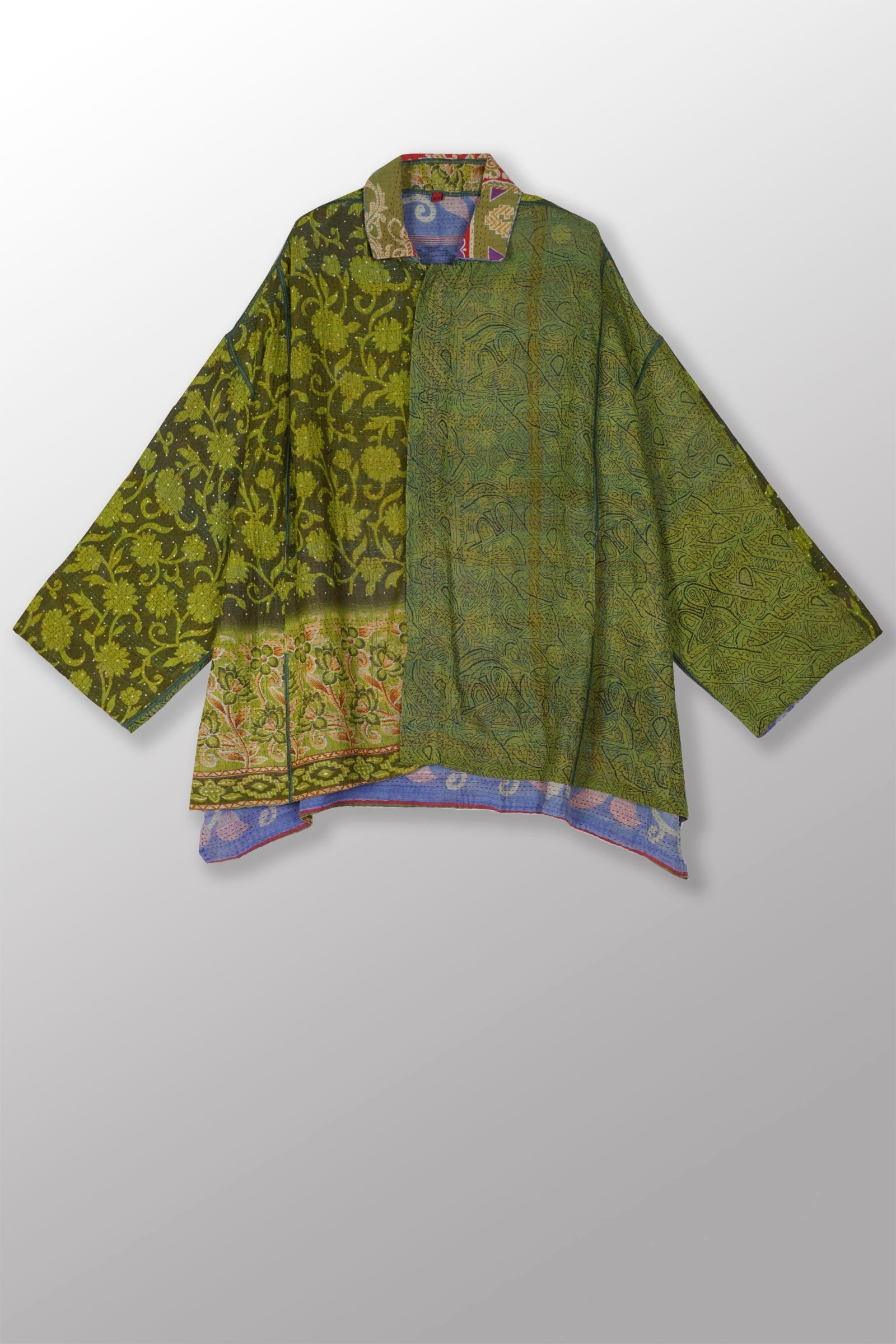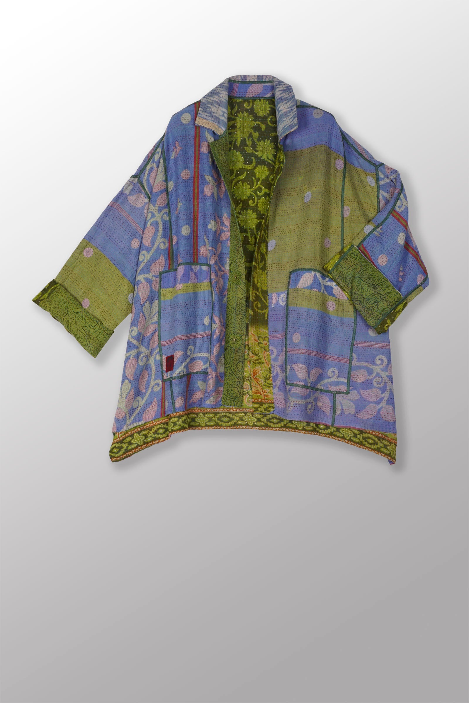 VINTAGE COTTON KANTHA OVERSIZED MINI COAT - cv2332-0006a -