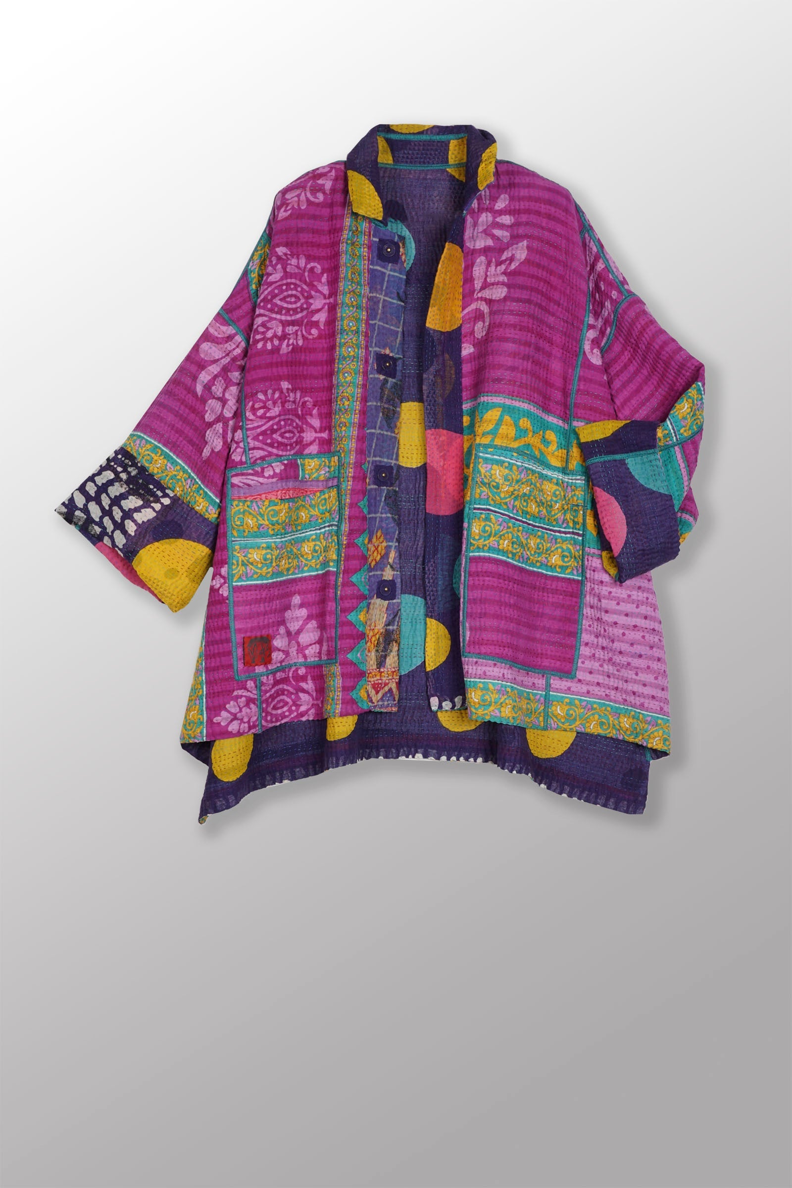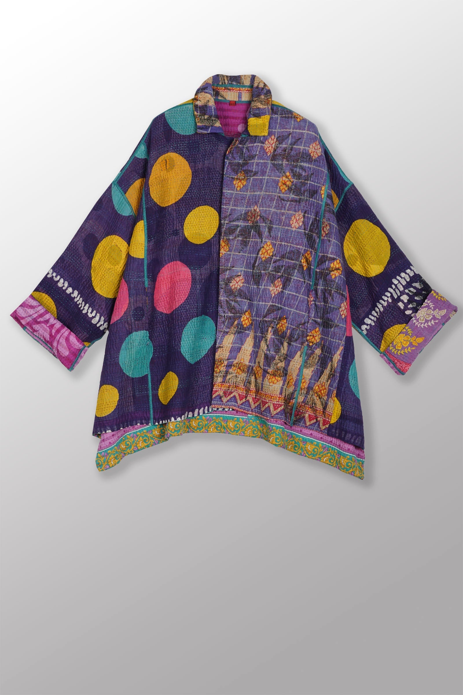 VINTAGE COTTON KANTHA OVERSIZED MINI COAT - cv4332-0037a -